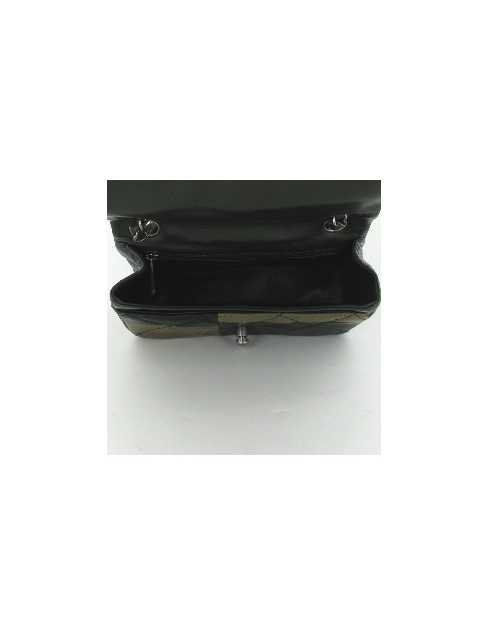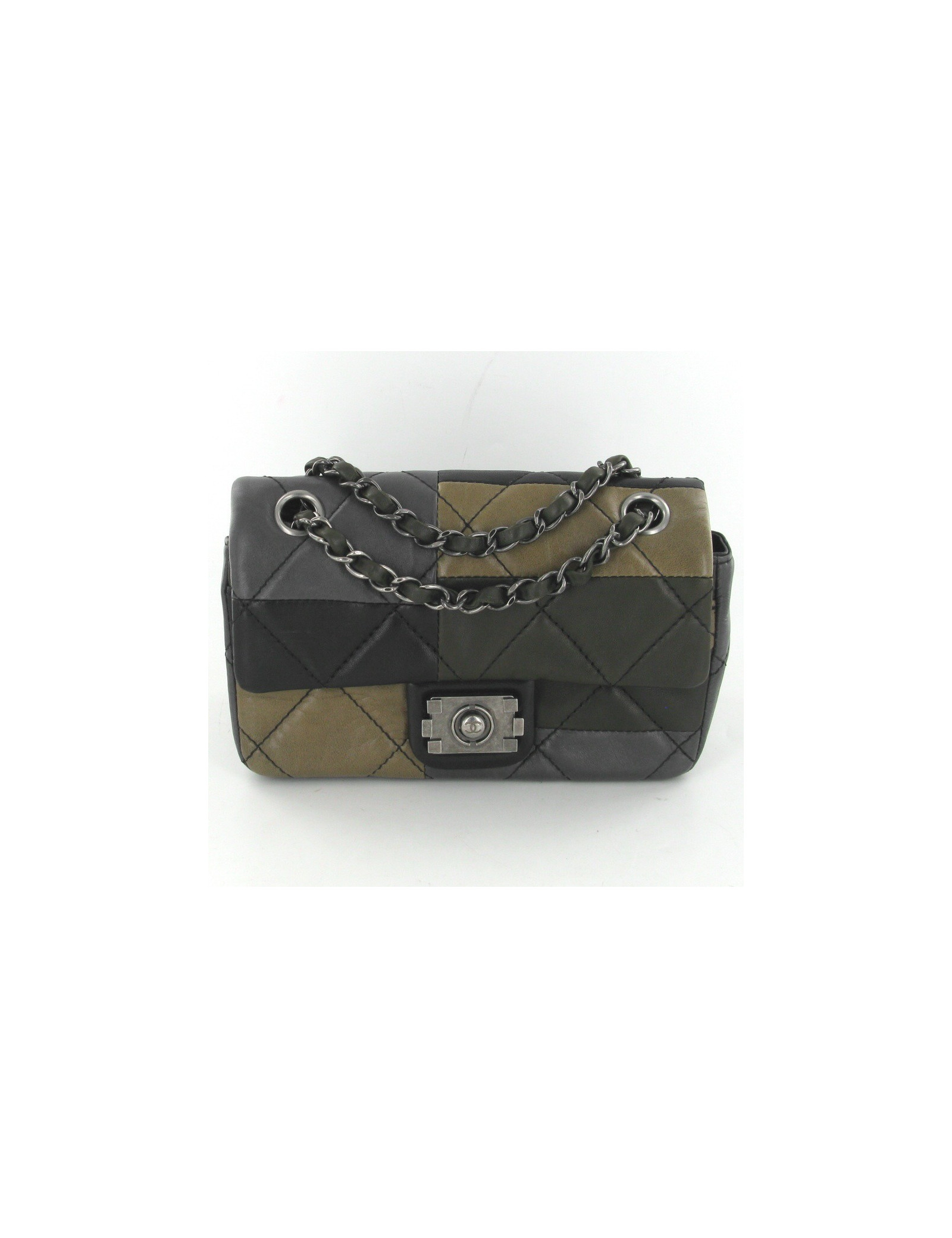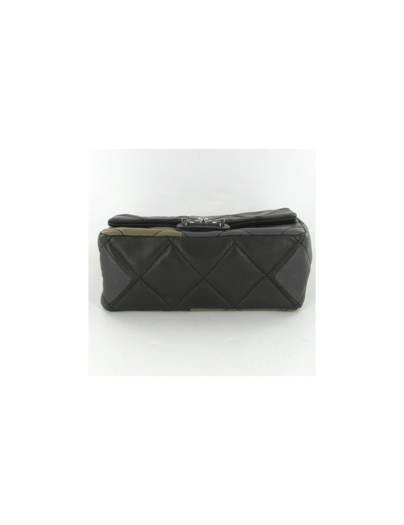 Sublime CHANEL bag in black, grey, beige and Brown quilted lamb leather, clasp Boy. The jewelry is silver aged, we find the "Boy" clasp. The Interior is black leather, there's a front pocket and one inside zipped pocket. S of balances. the strap is an aged silver string mixed with brown leather, it measures 112 cm. It was worn once