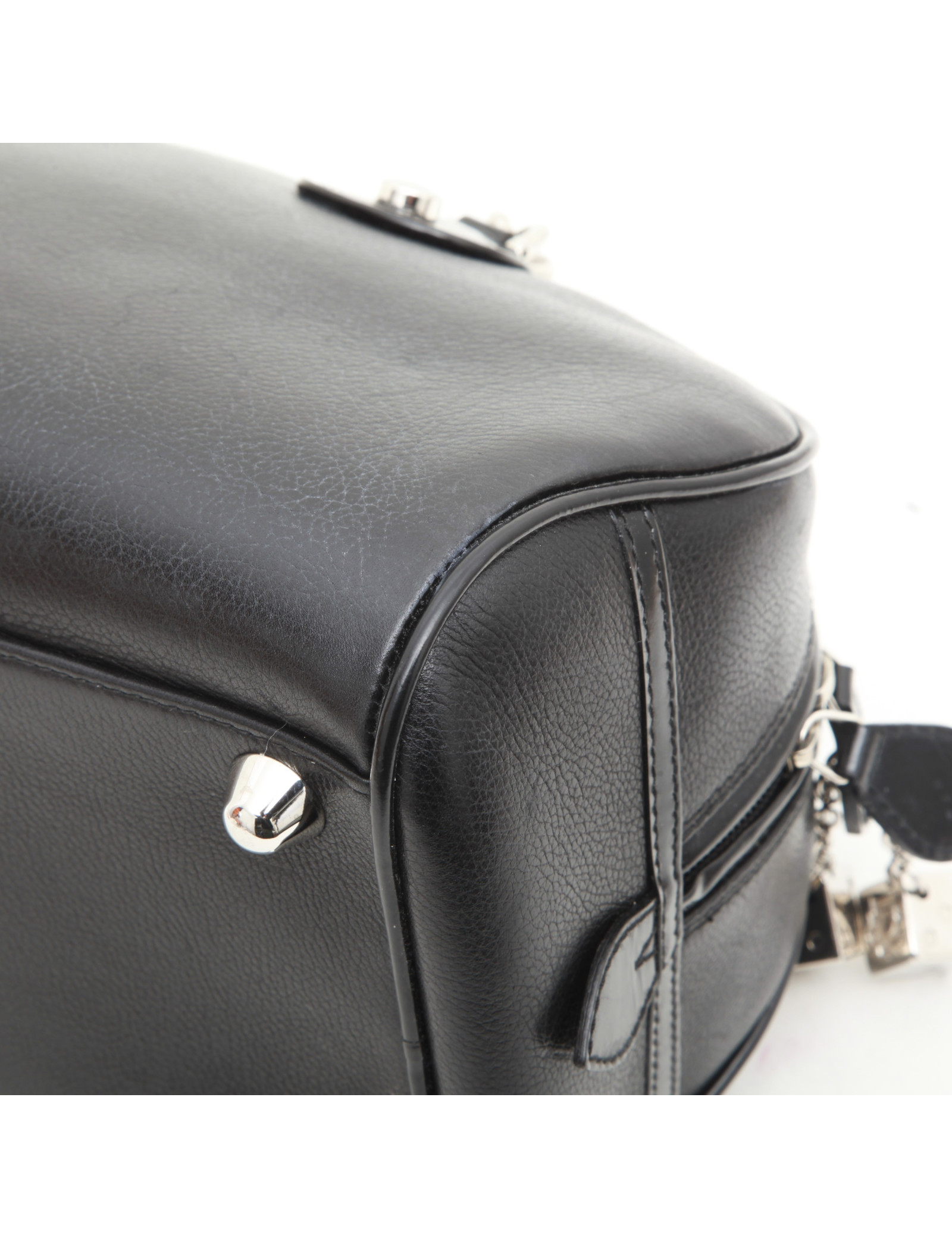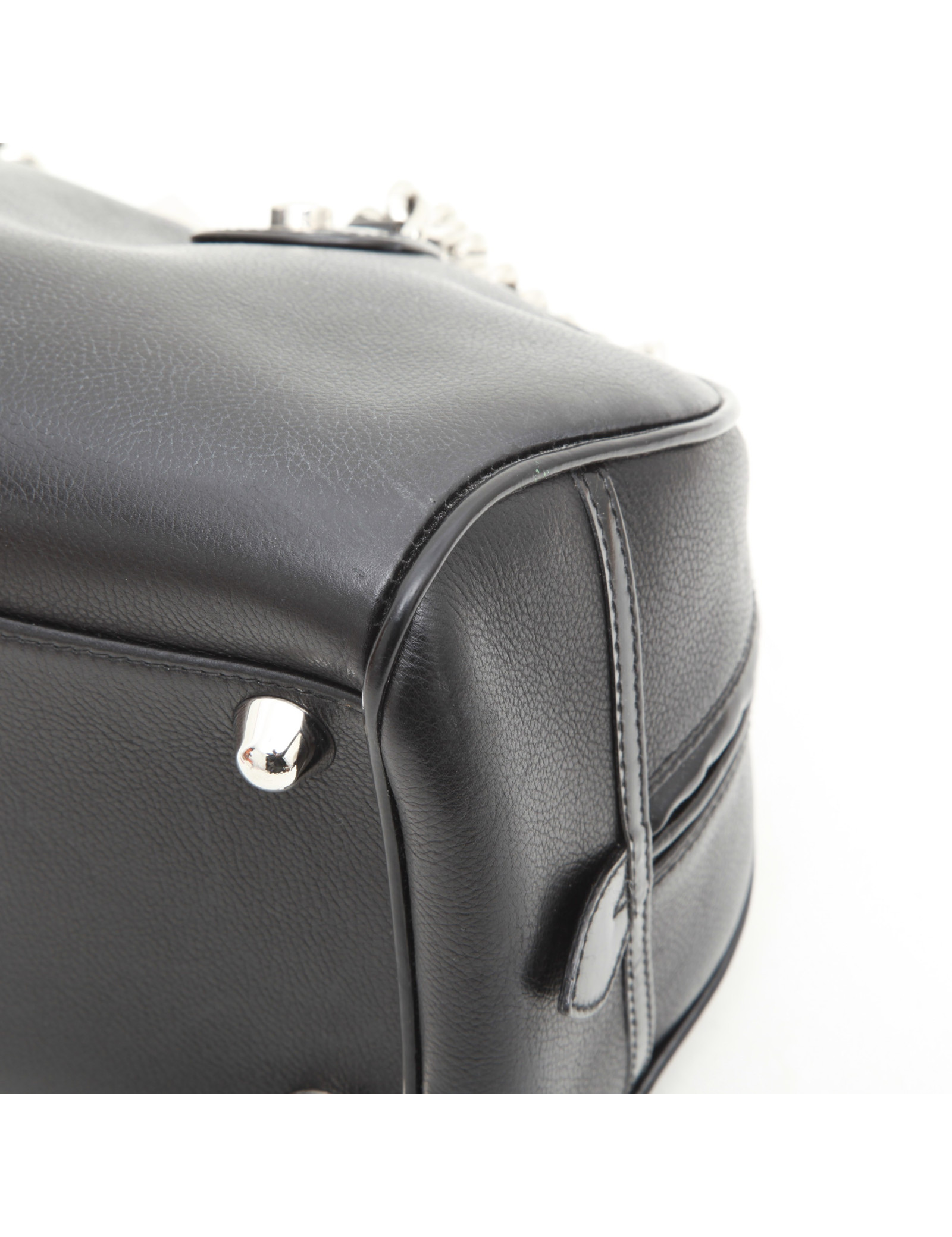Dior handbag in black grained leather. Palladium silver metal hardware.