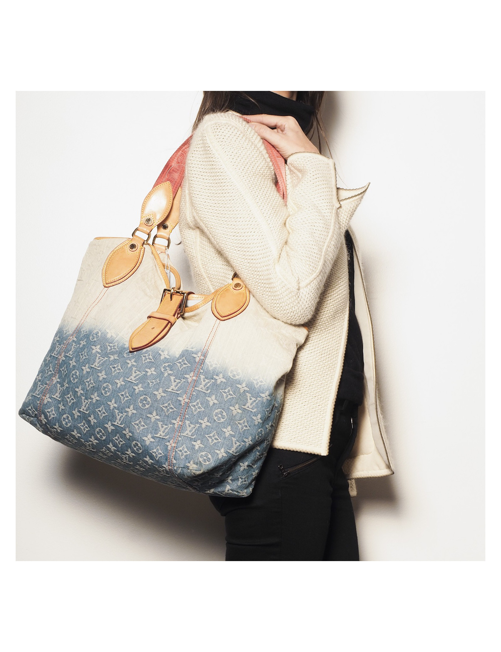 LOUIS VUITTON tote bag in two tone blue to beige monogram fabric