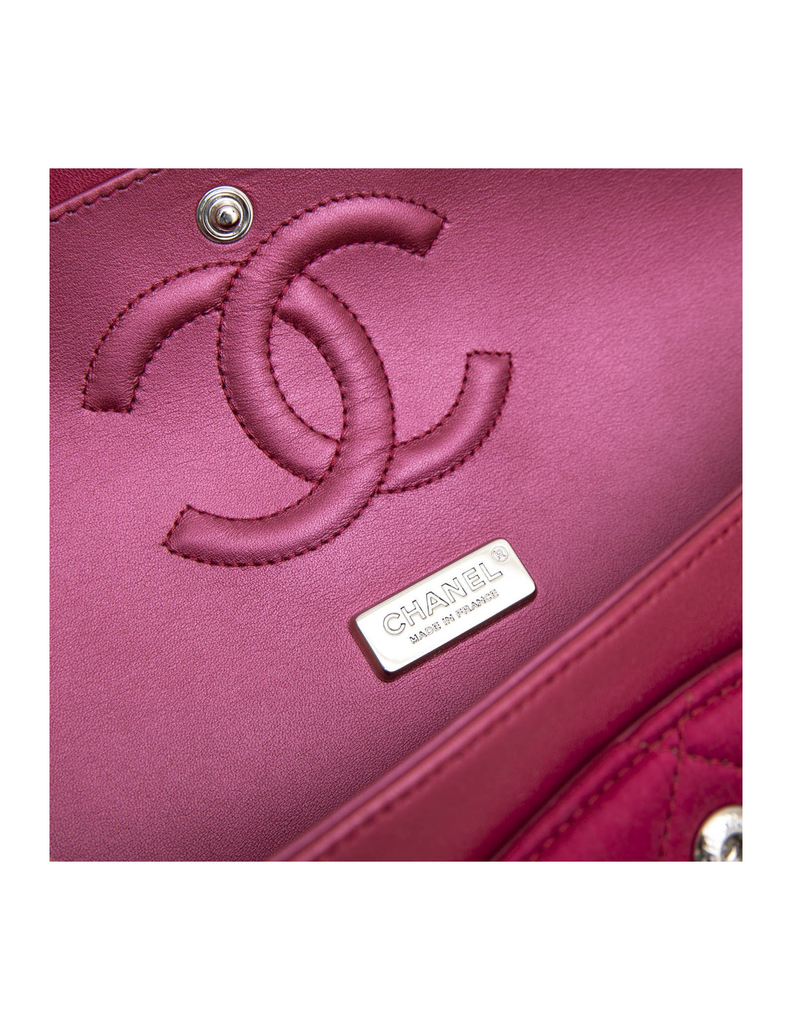 CHANEL couture double flap bag in iridescent fuchsia smooth lambskin and embroidered