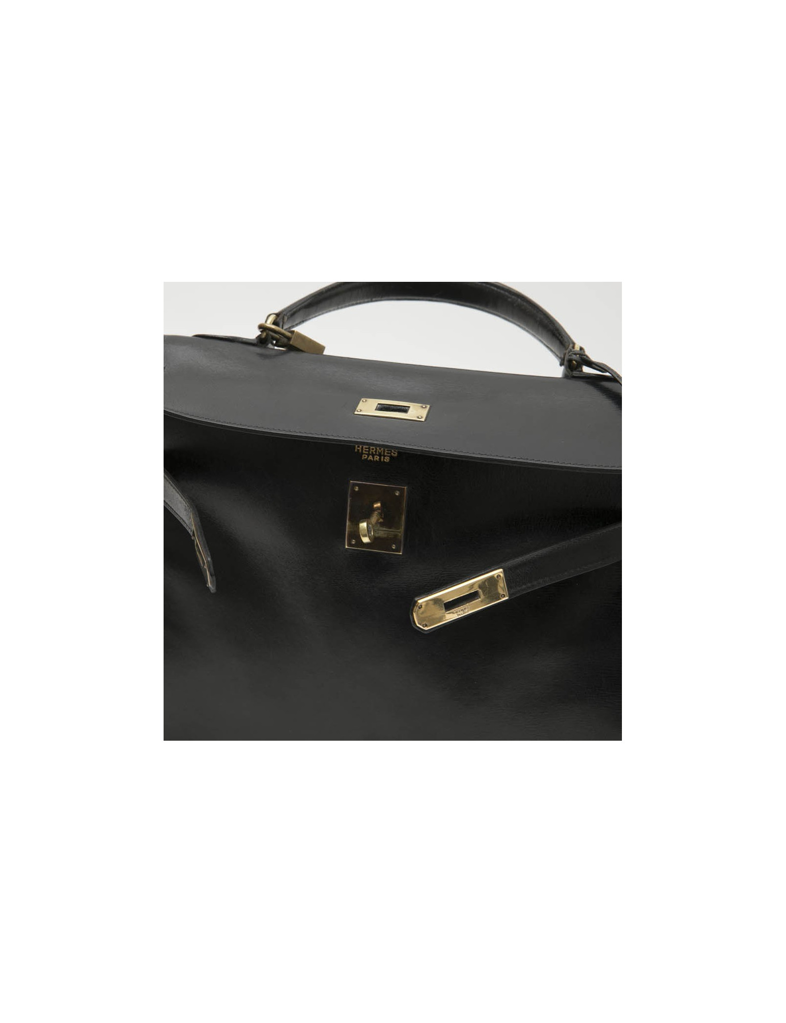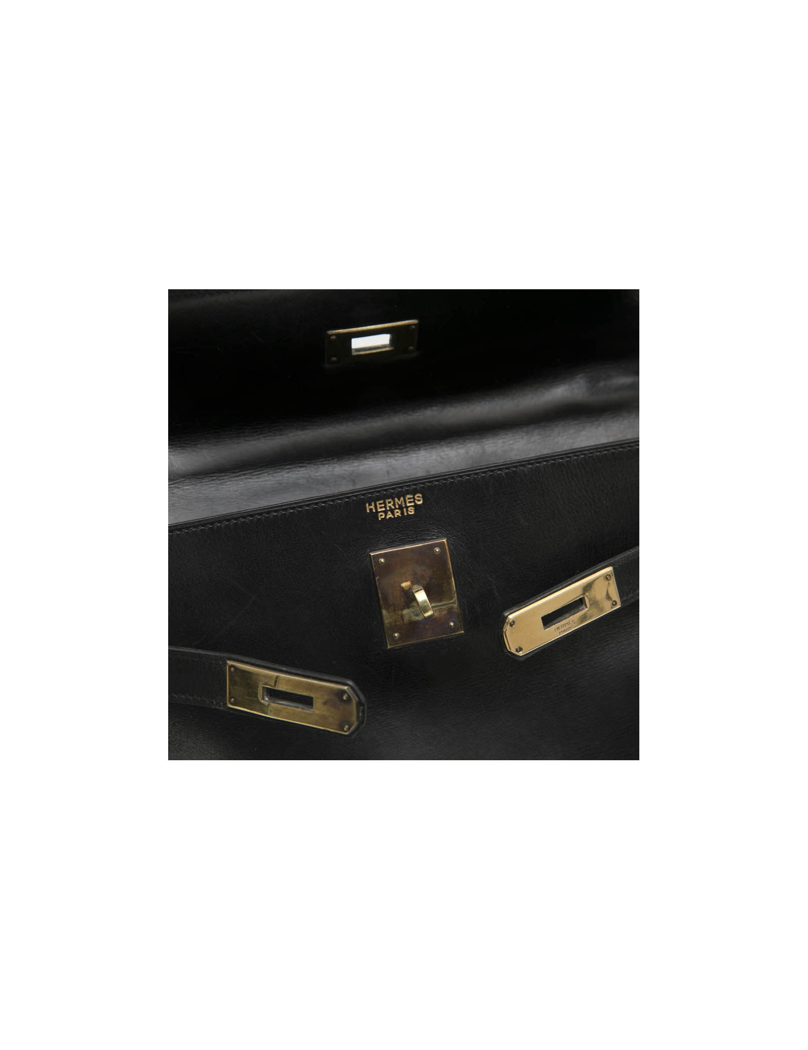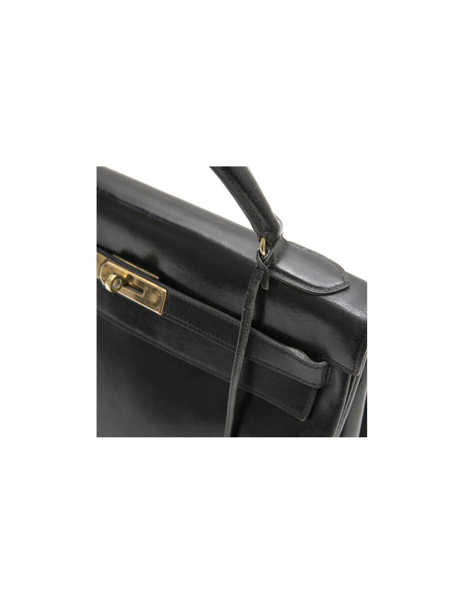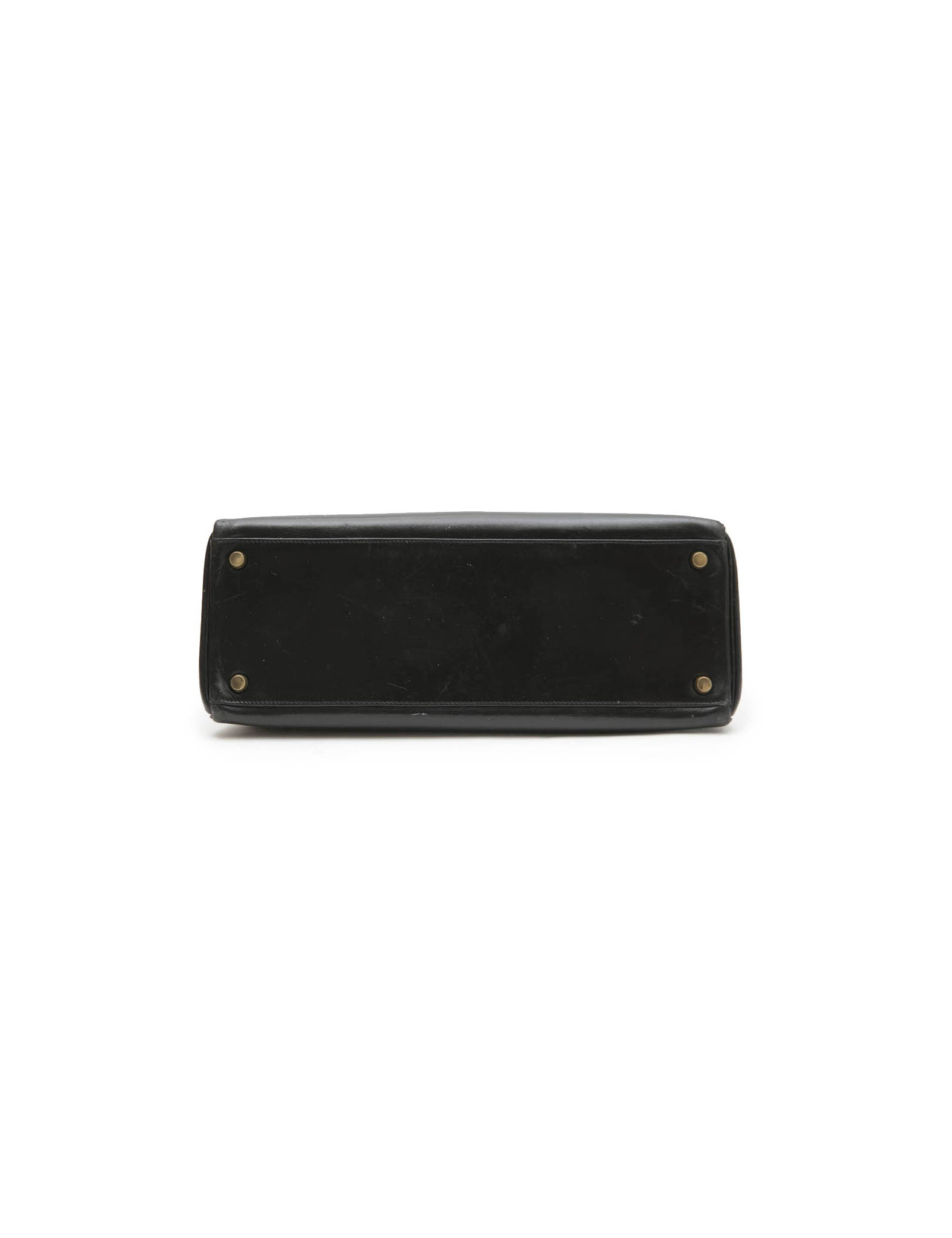 Hermes vintage Kelly 32 bag in black box leather. Gilded metal hardware.