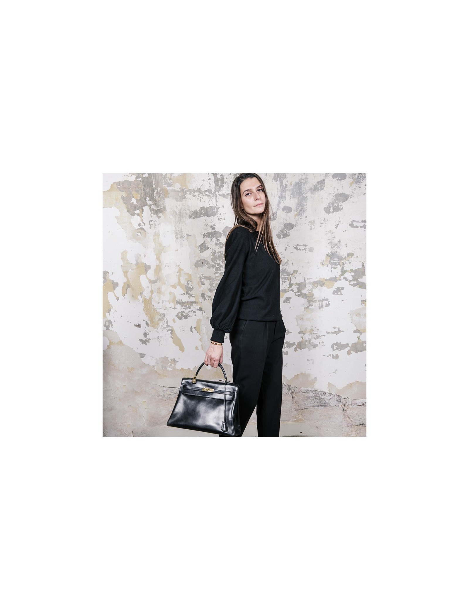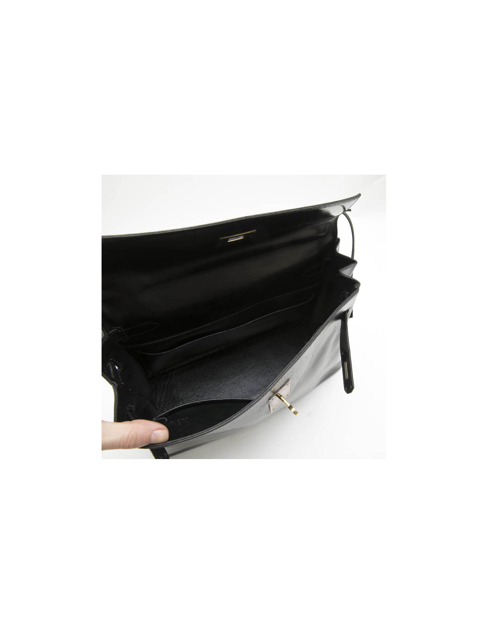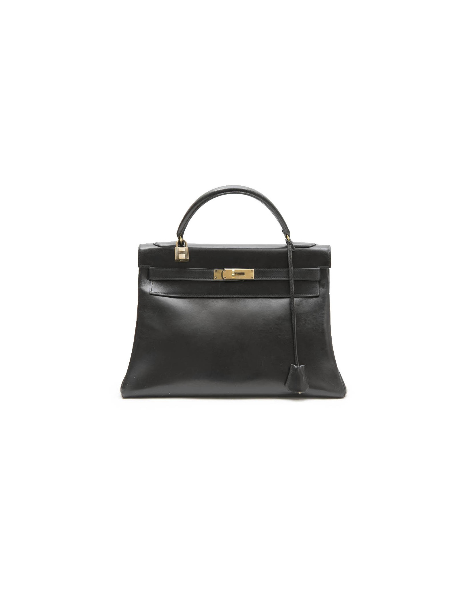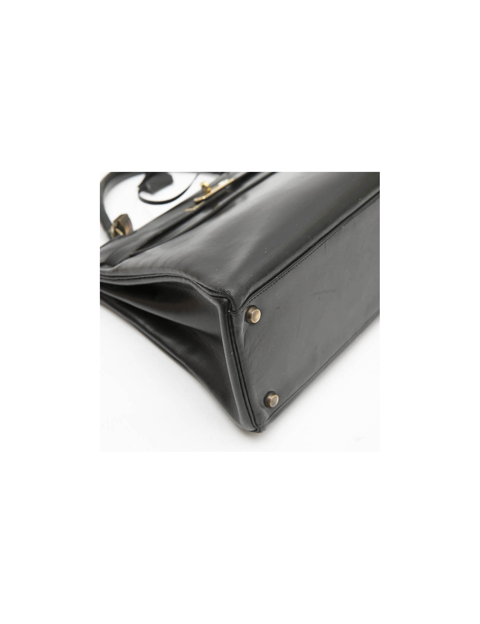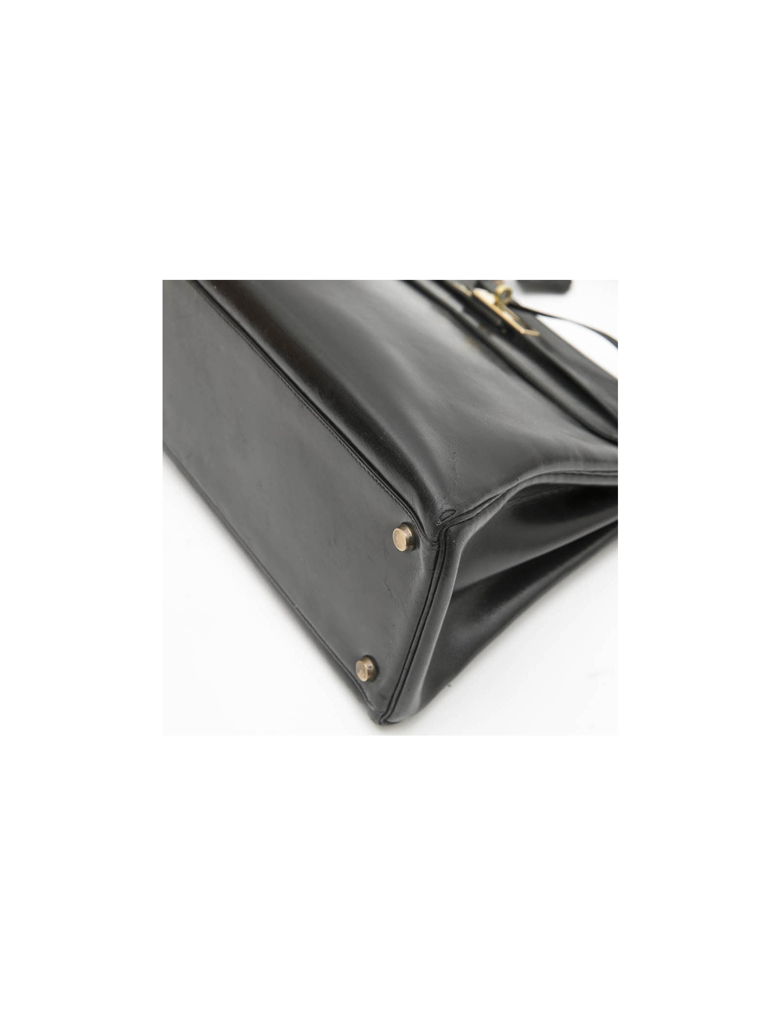 Hermes vintage Kelly 32 bag in black box leather. Gilded metal hardware.