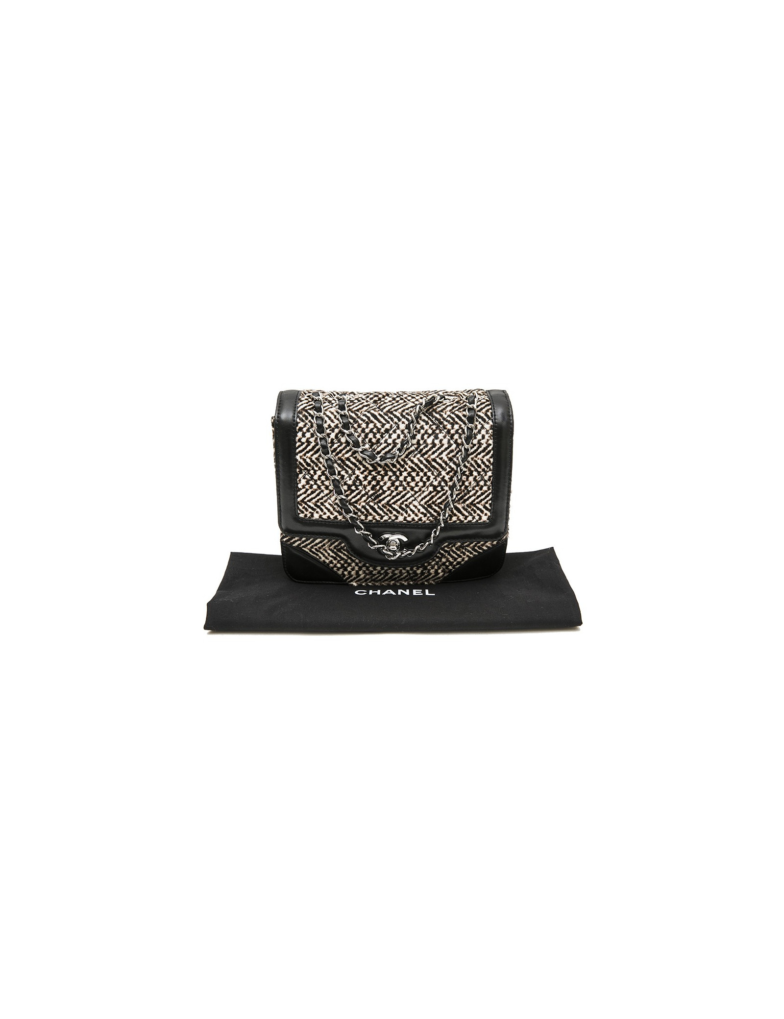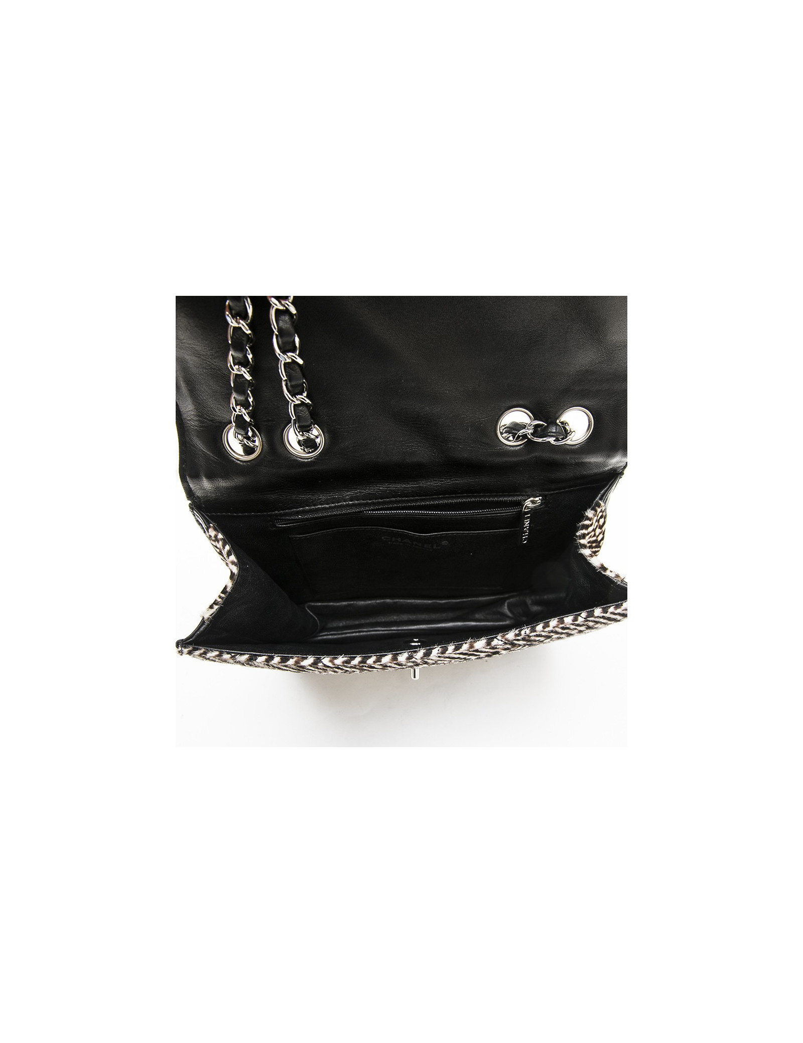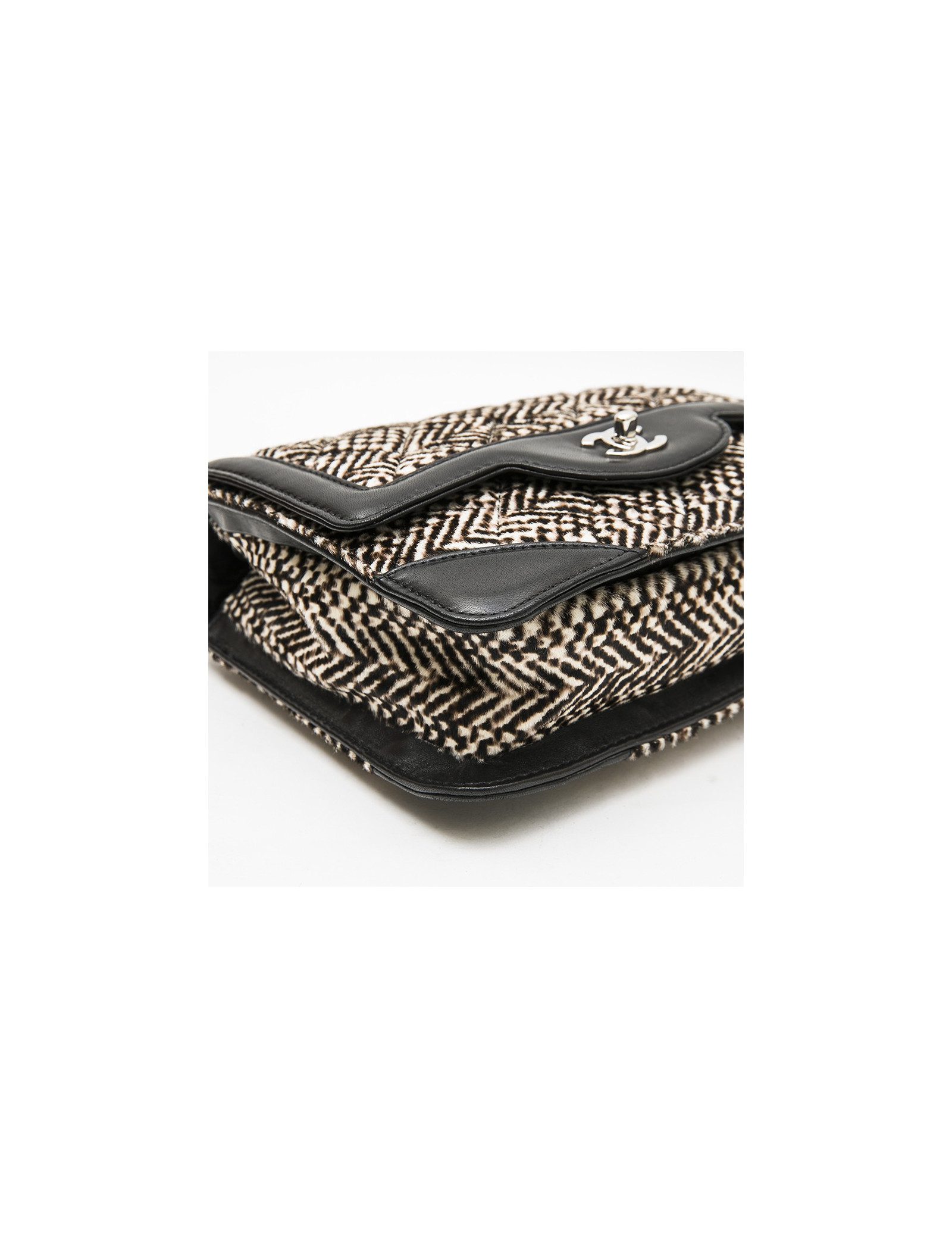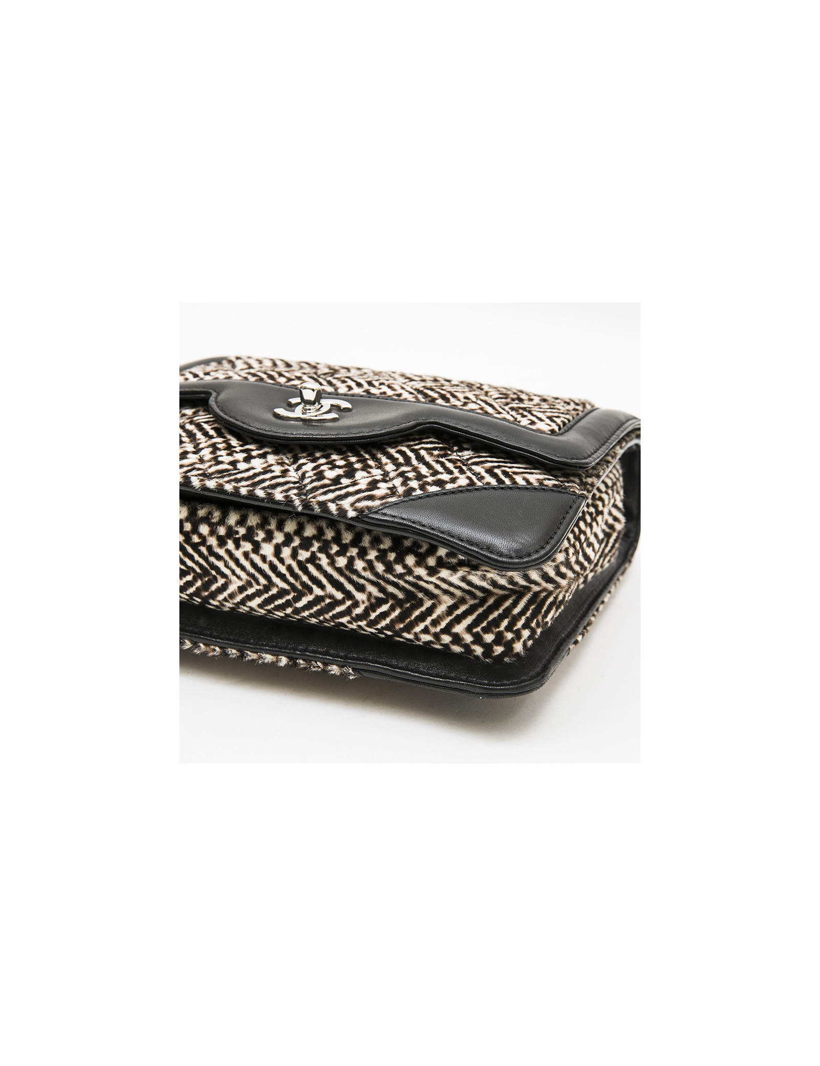 CHANEL flap bag in padded foal calfskin leather and black leather