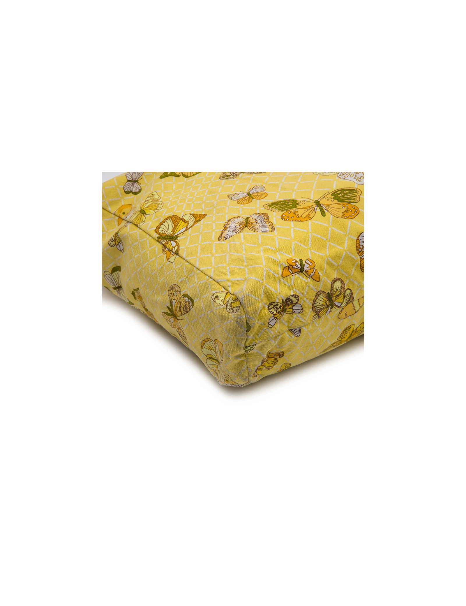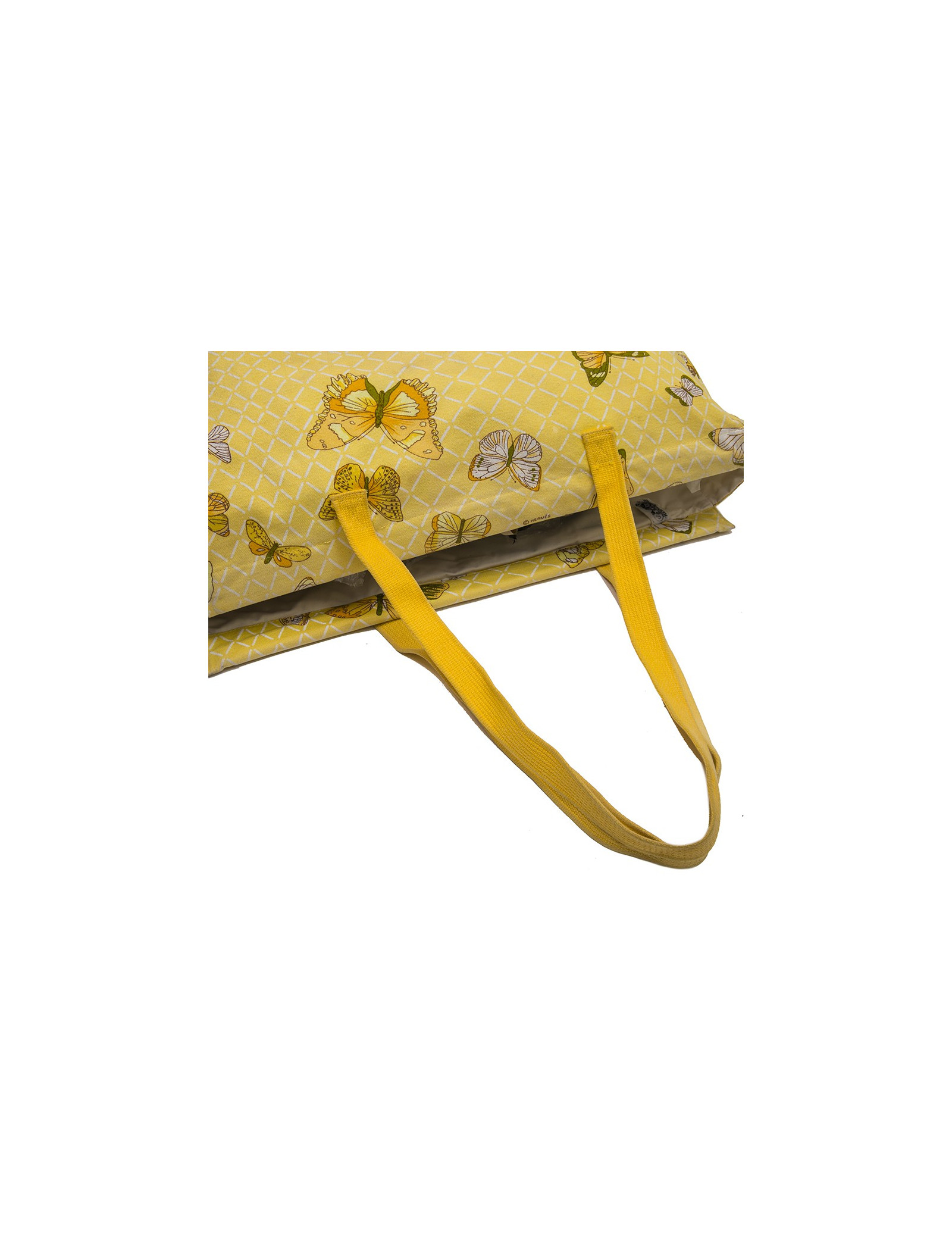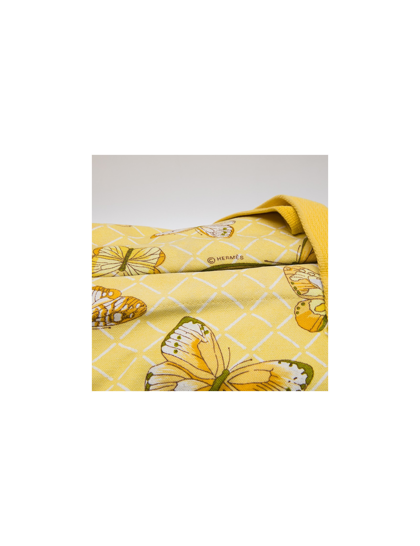 HERMES Vintage beach bag in yellow canvas with butterflies printed