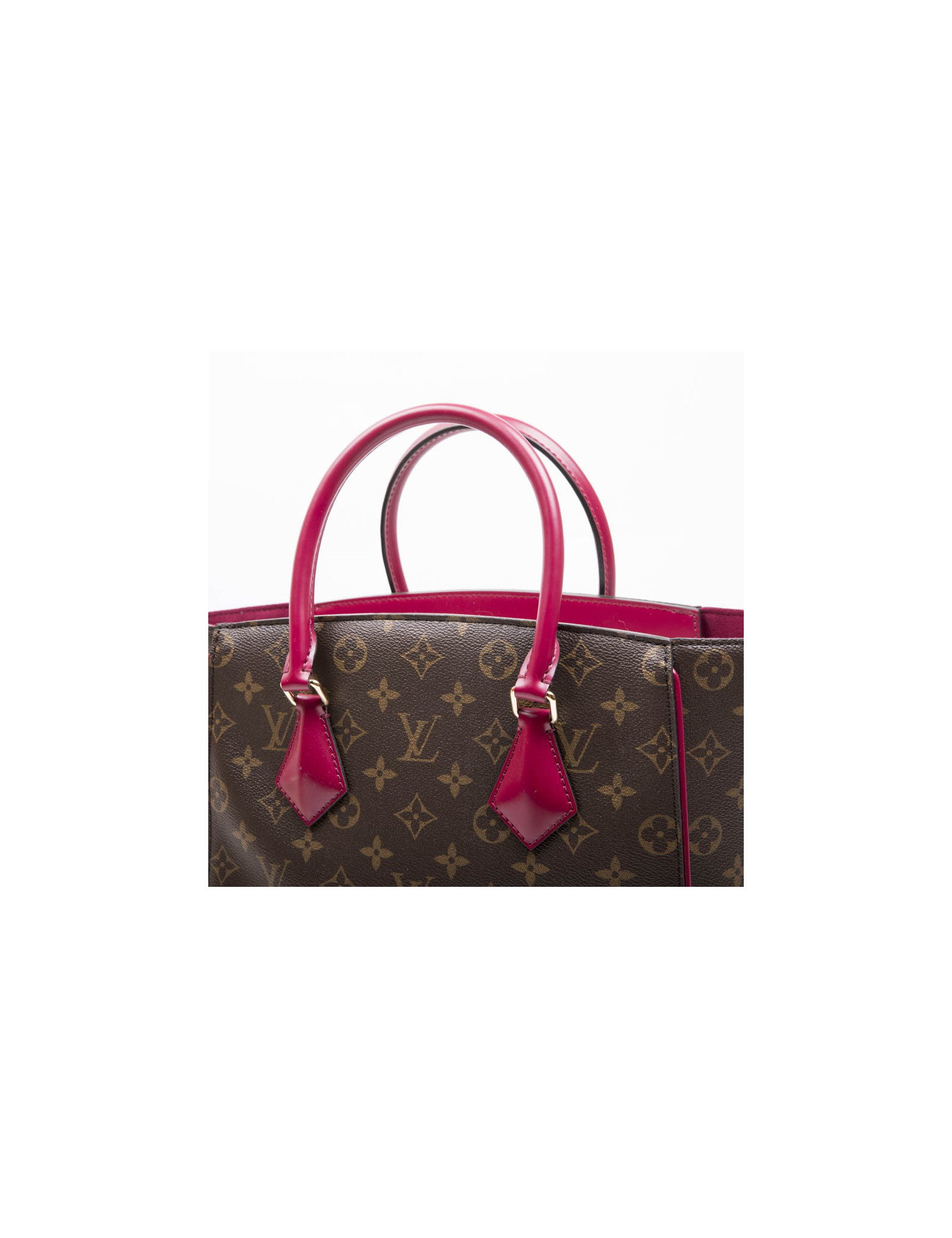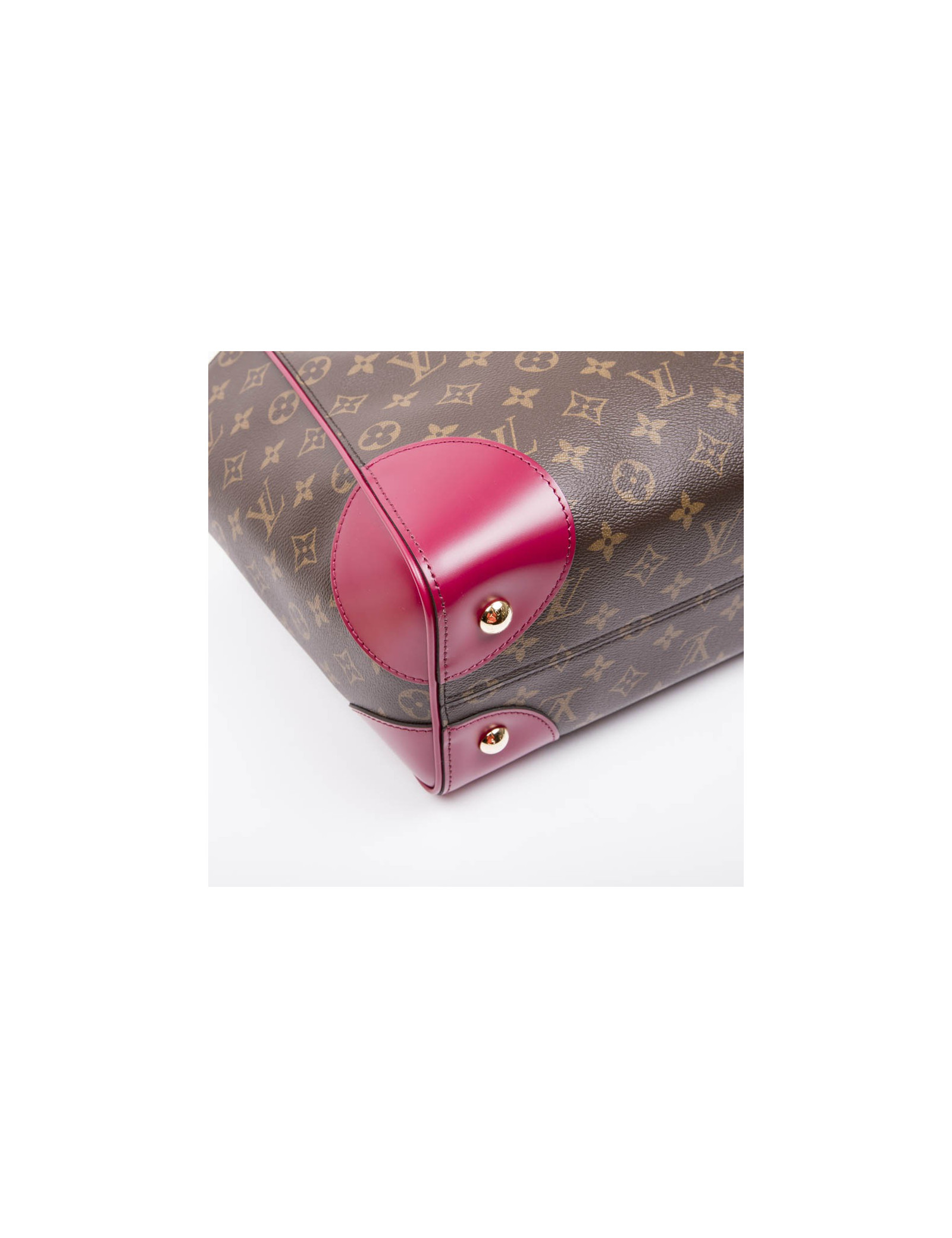 Louis Vuitton 'Phénix' bag in monogram coated canvas and cowhide trim. It is lined in fuchsia synthetic fabric with 3 pockets including one zipper. Gilded metal hardware. The closure is magnetic. Medium model.