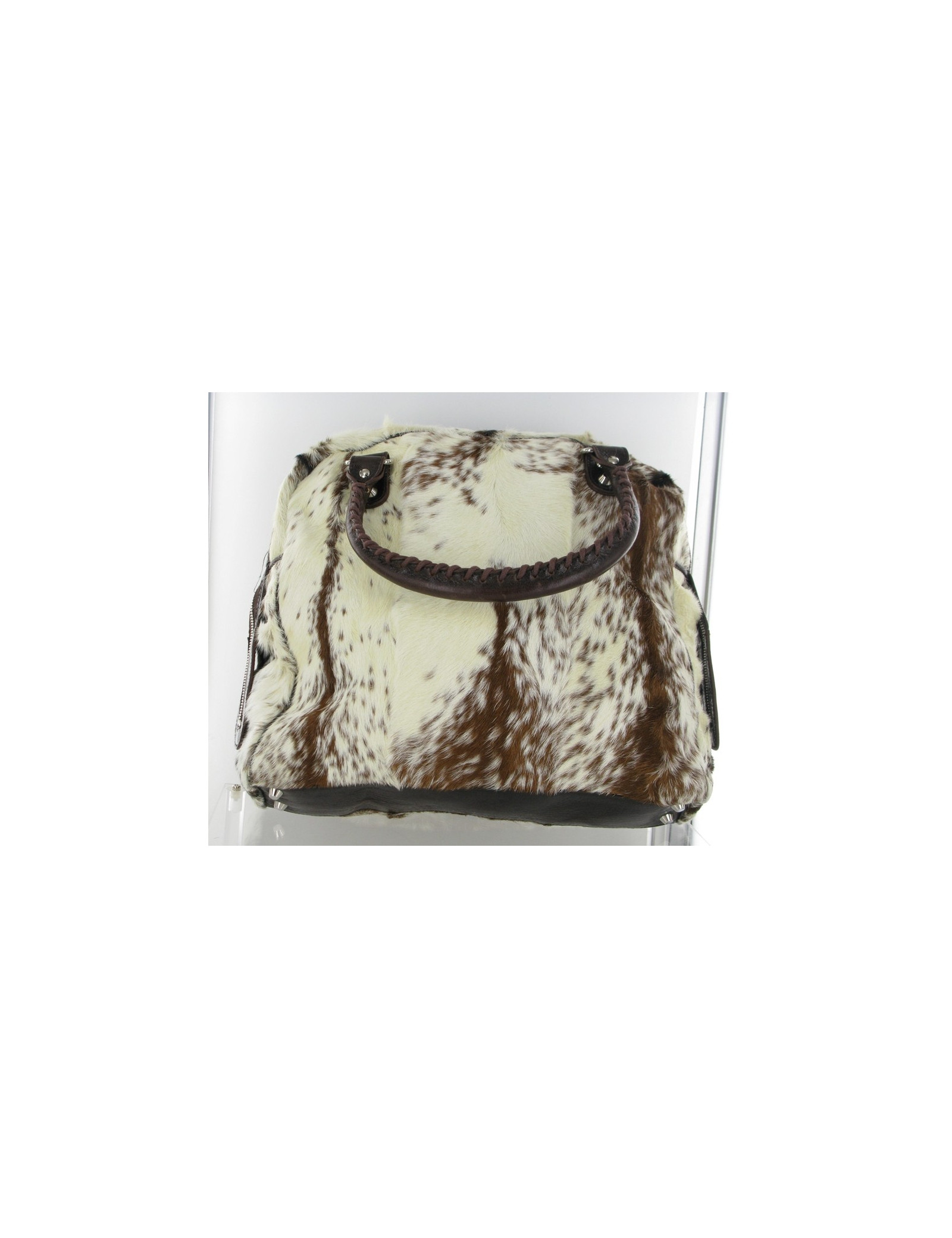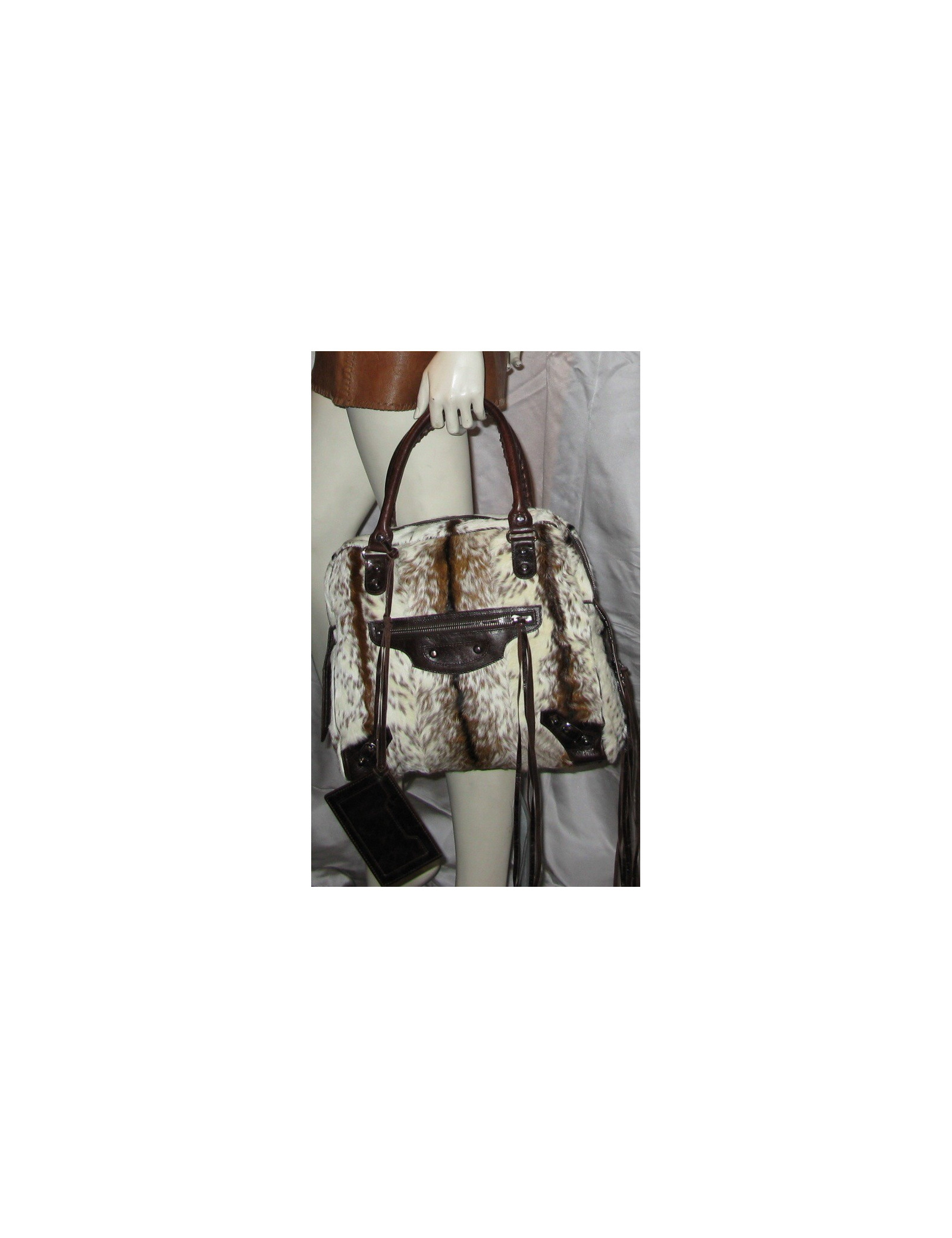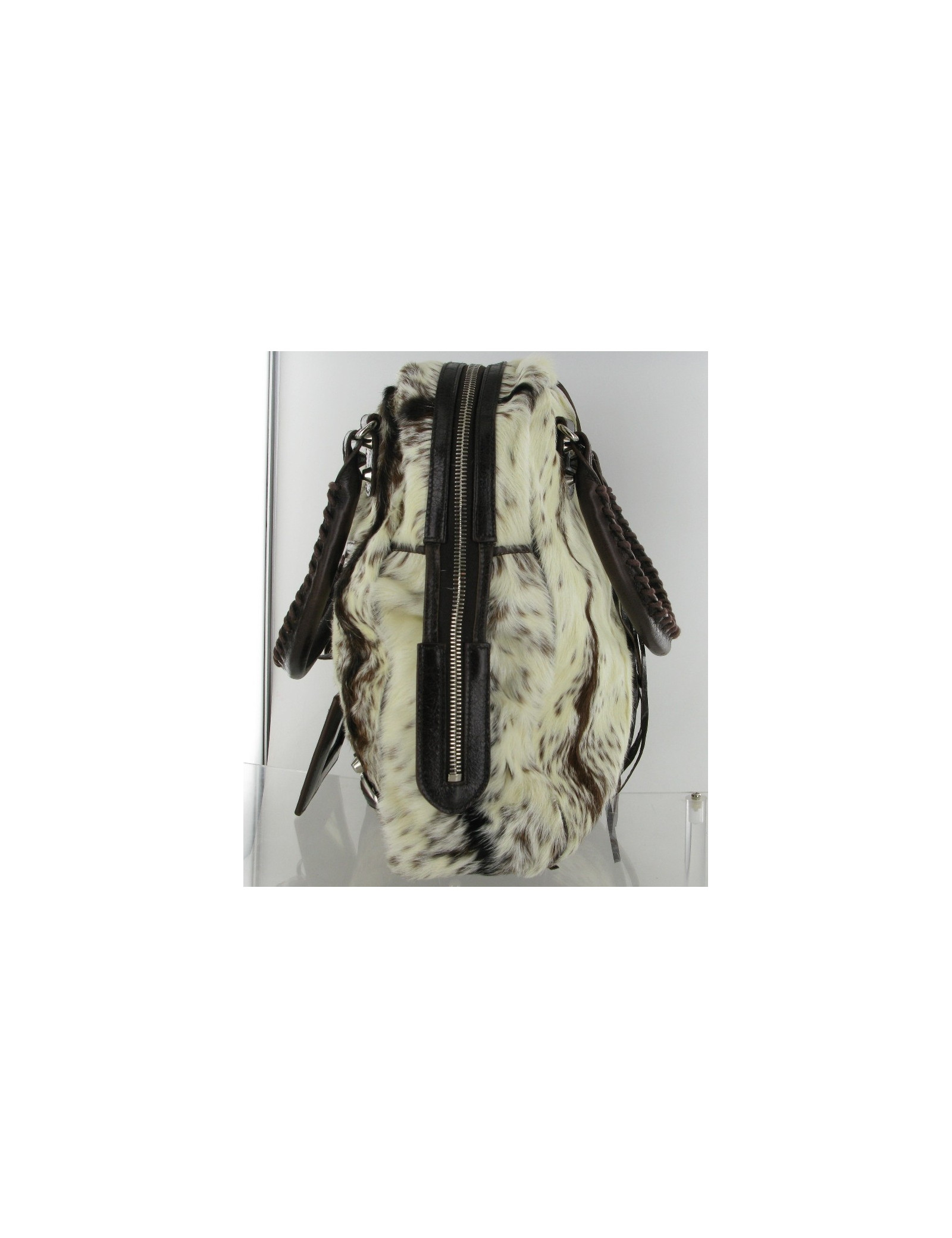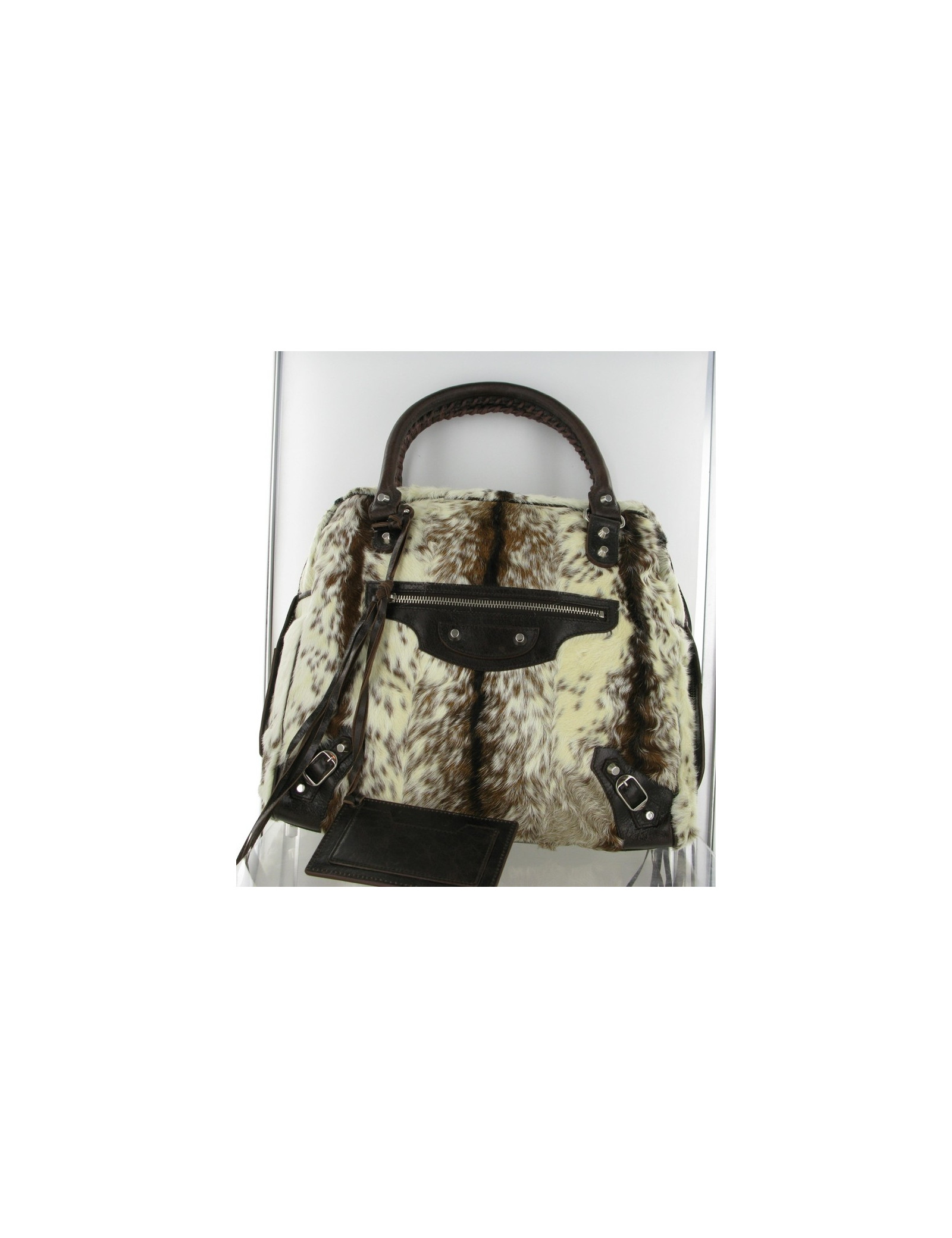 Beautiful bag BALENCIAGA mini bowling in brown leather and fur of goat. The jewelry is silver brass. There is a zippered exterior pocket. The Interior is black cloth, there is a zippered inside pocket. The handles are made of brown leather and 44 cm. S of balances. It has never been worn.