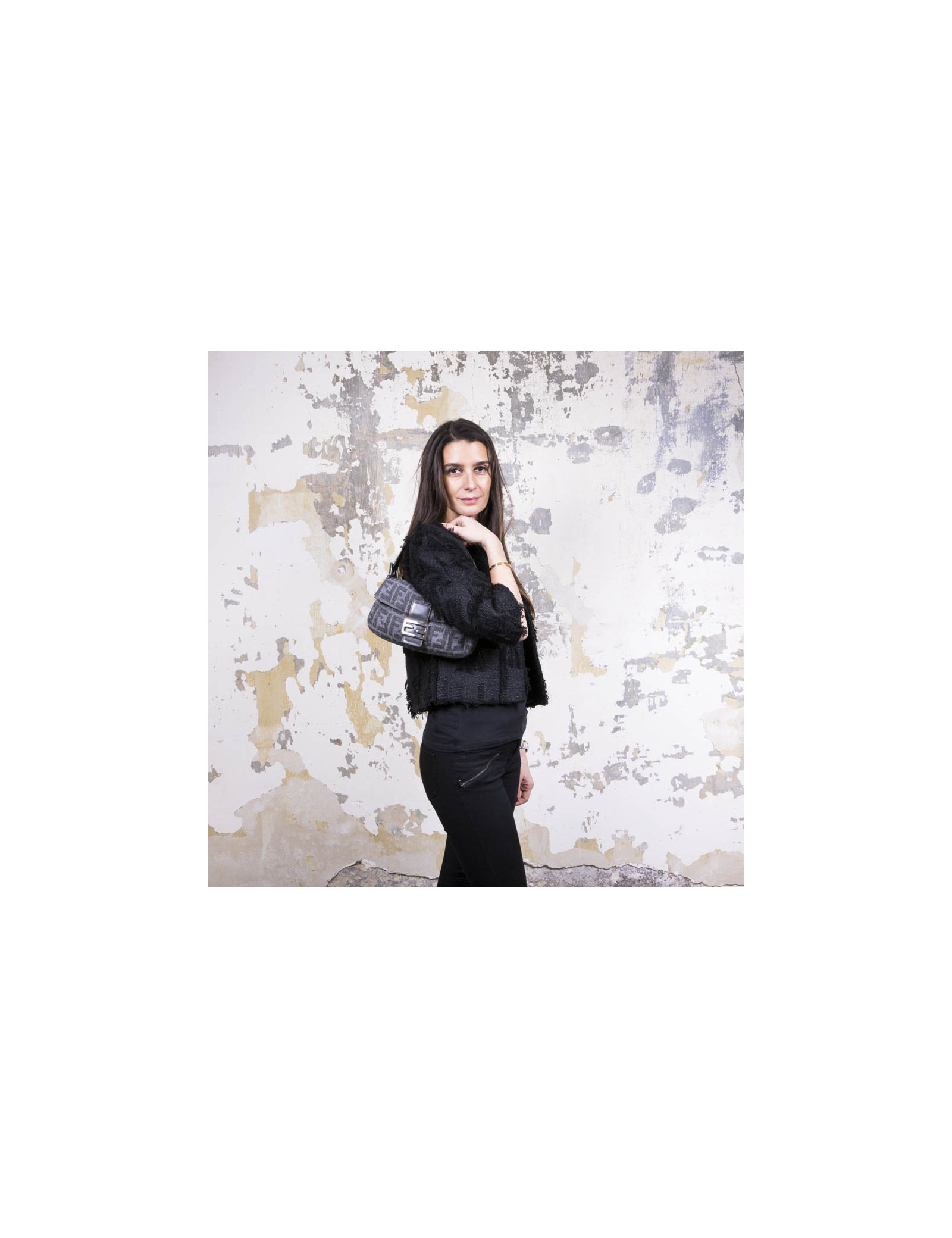 FENDI baguette bag in gray monogram wool