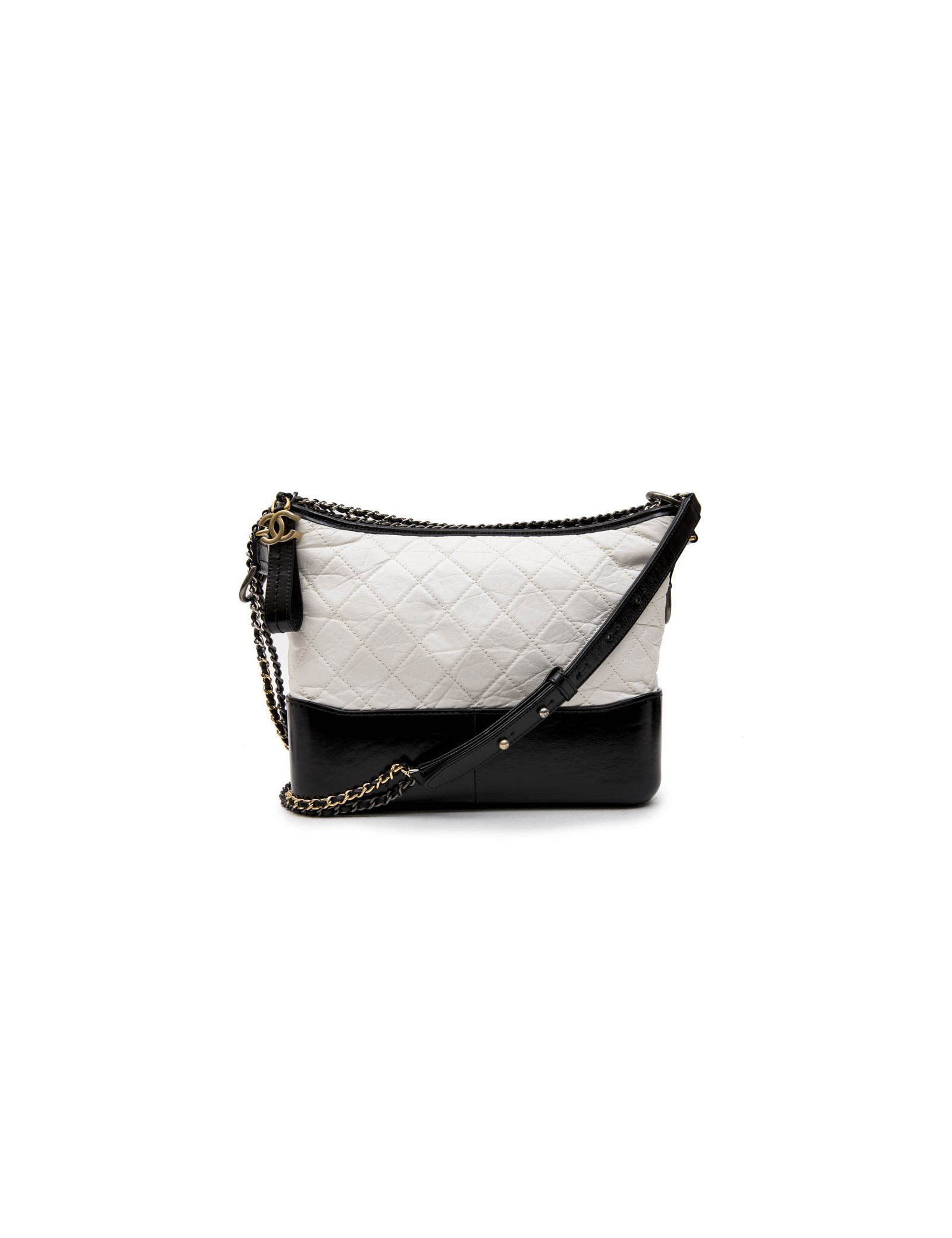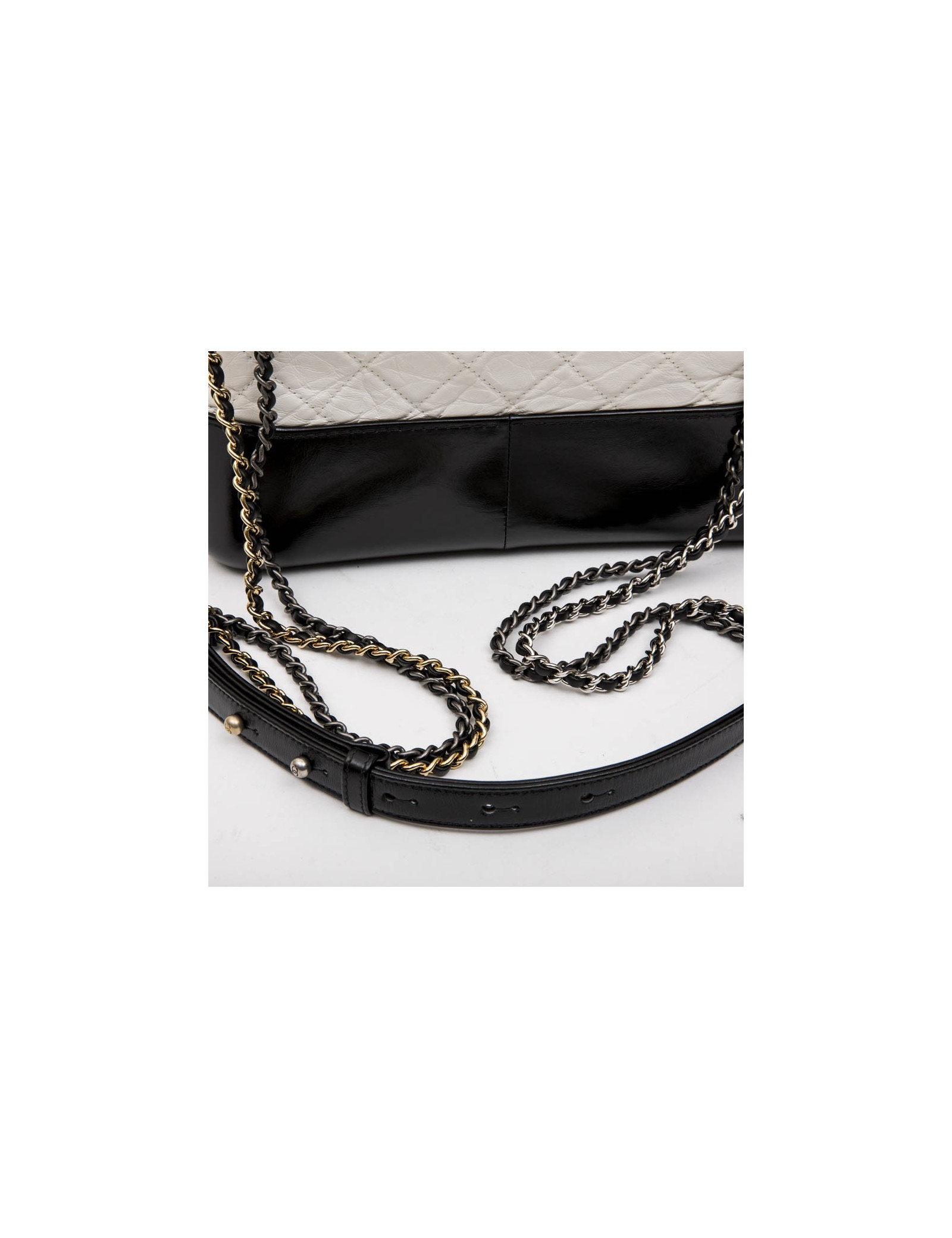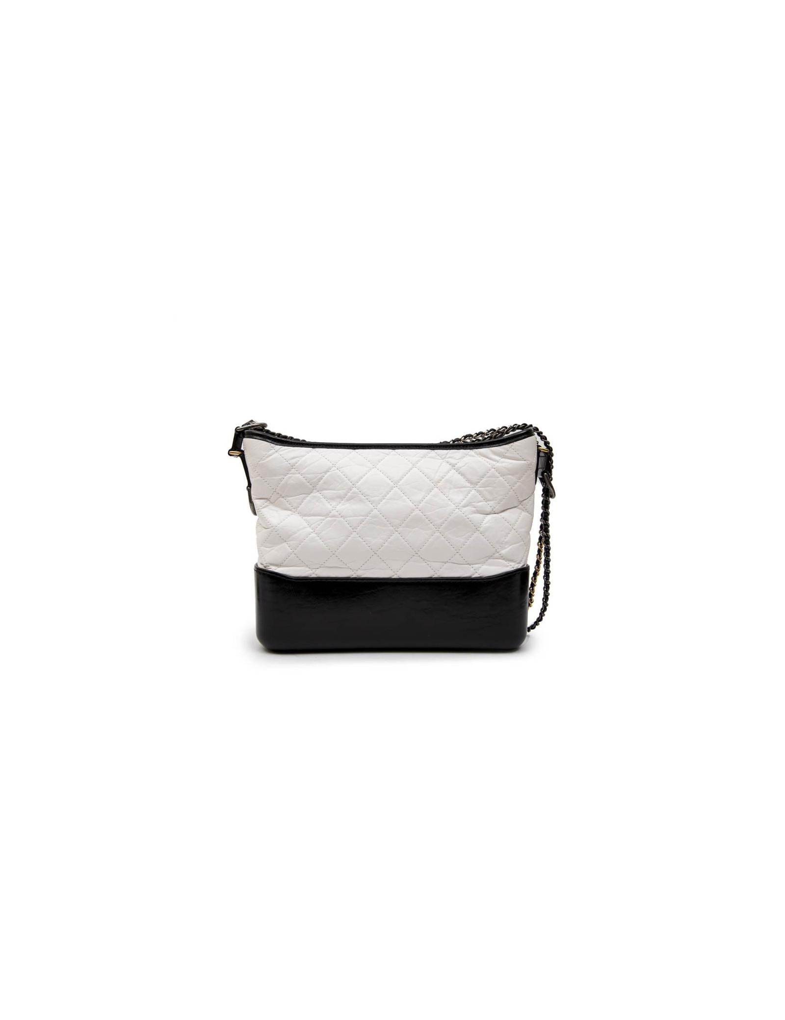 Chanel Gabrielle 'Hobo' bag in aged white quilted leather and black smooth leather. Zipper.