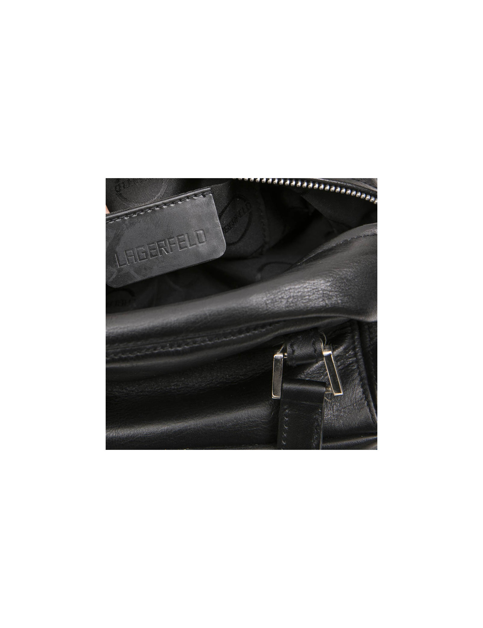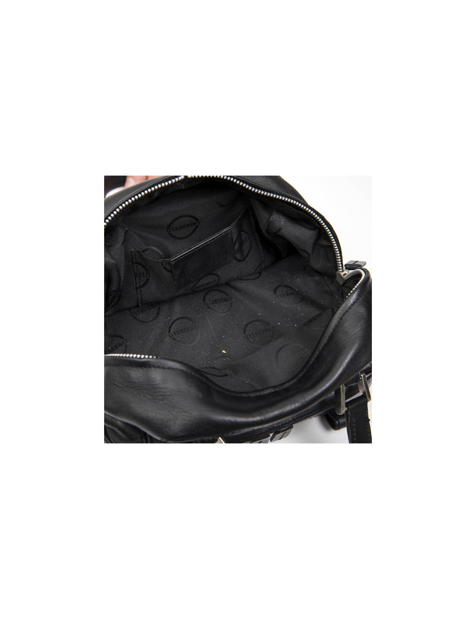 Adjustable straps under the bag. Interior lining in LAGERFELD branded fabric with a slit pocket. In good condition