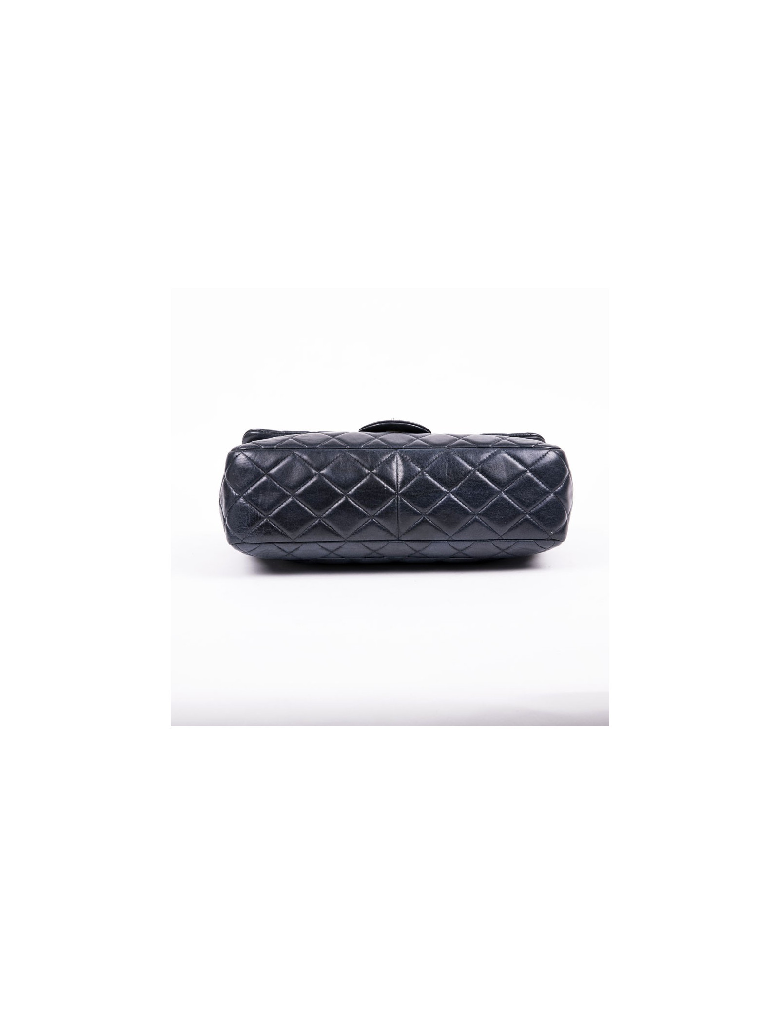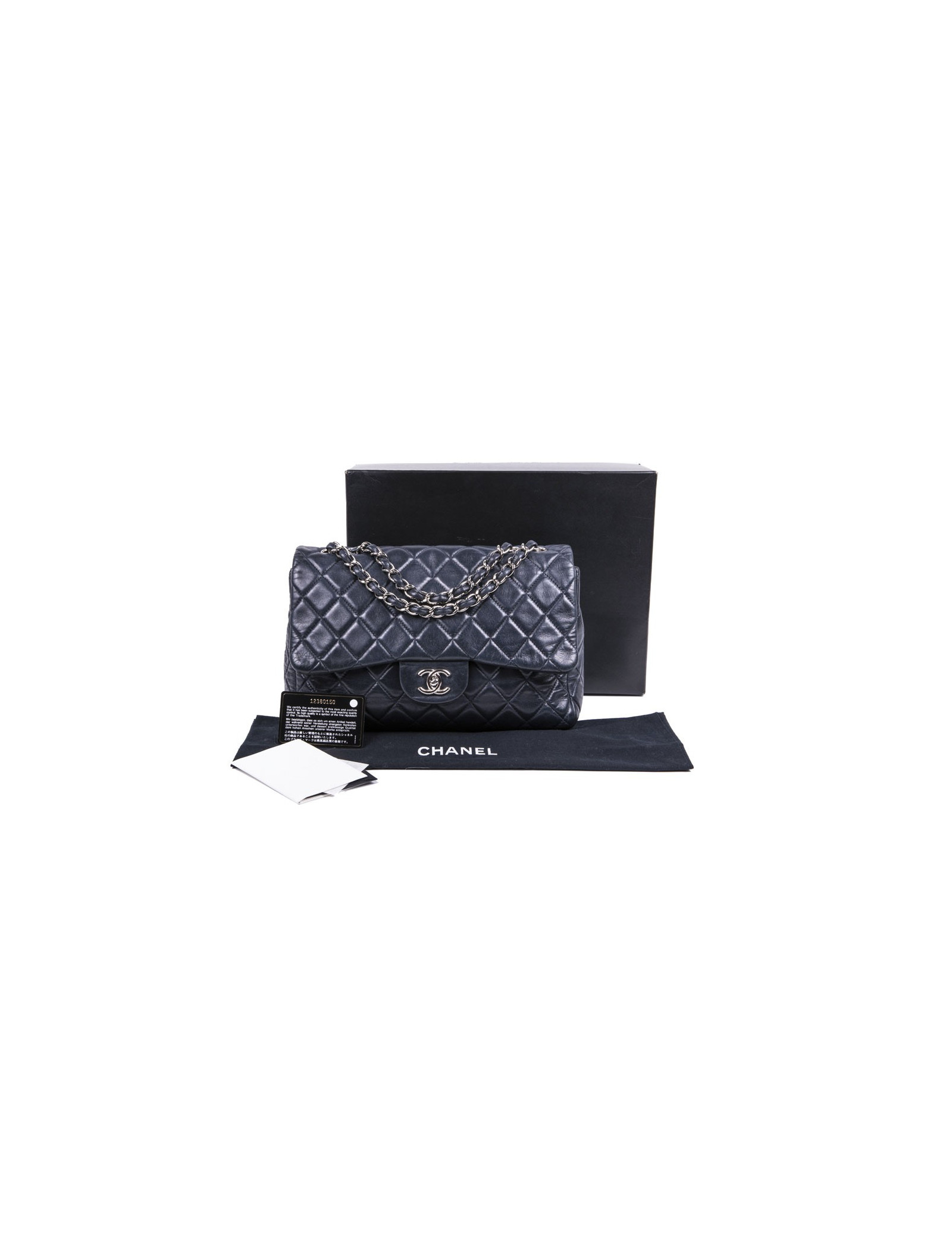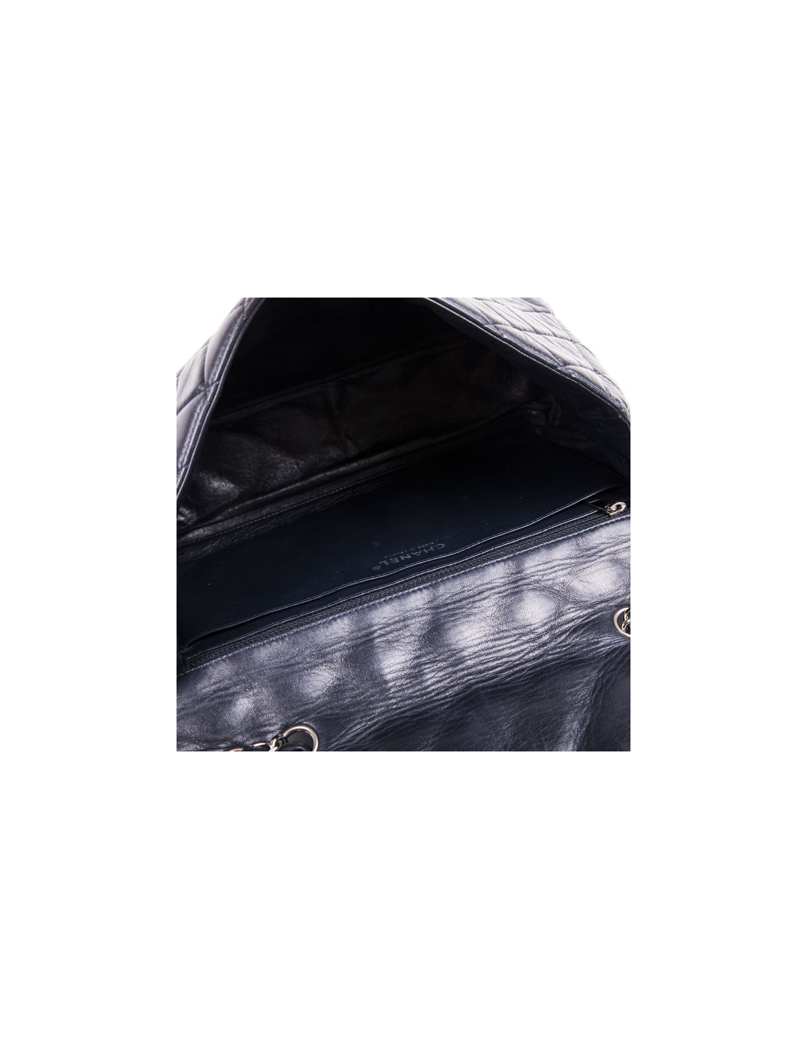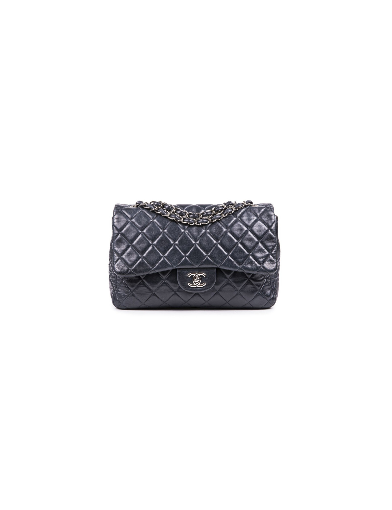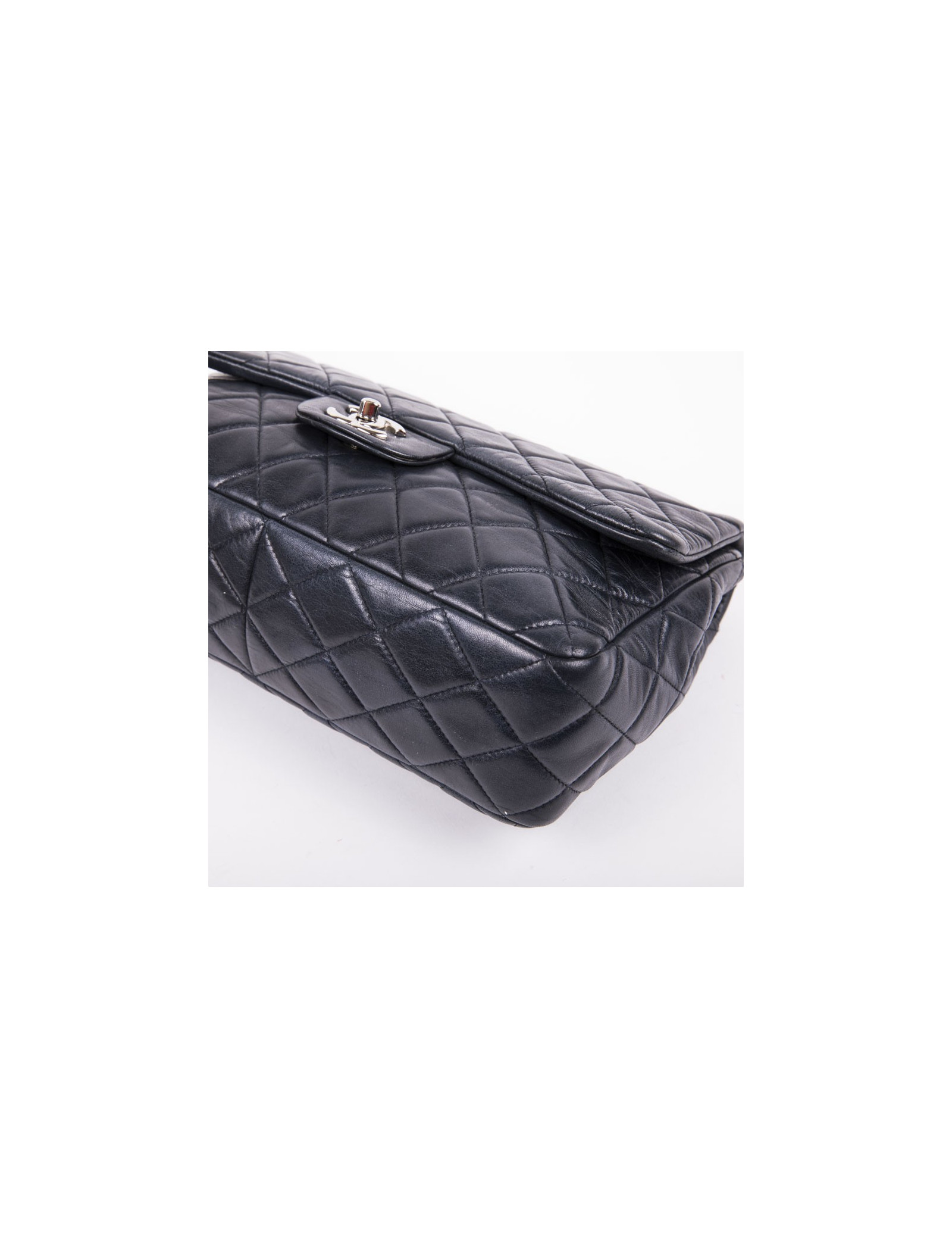 Chanel Jumbo bag in soft navy quilted leather. Silver metal hardware.