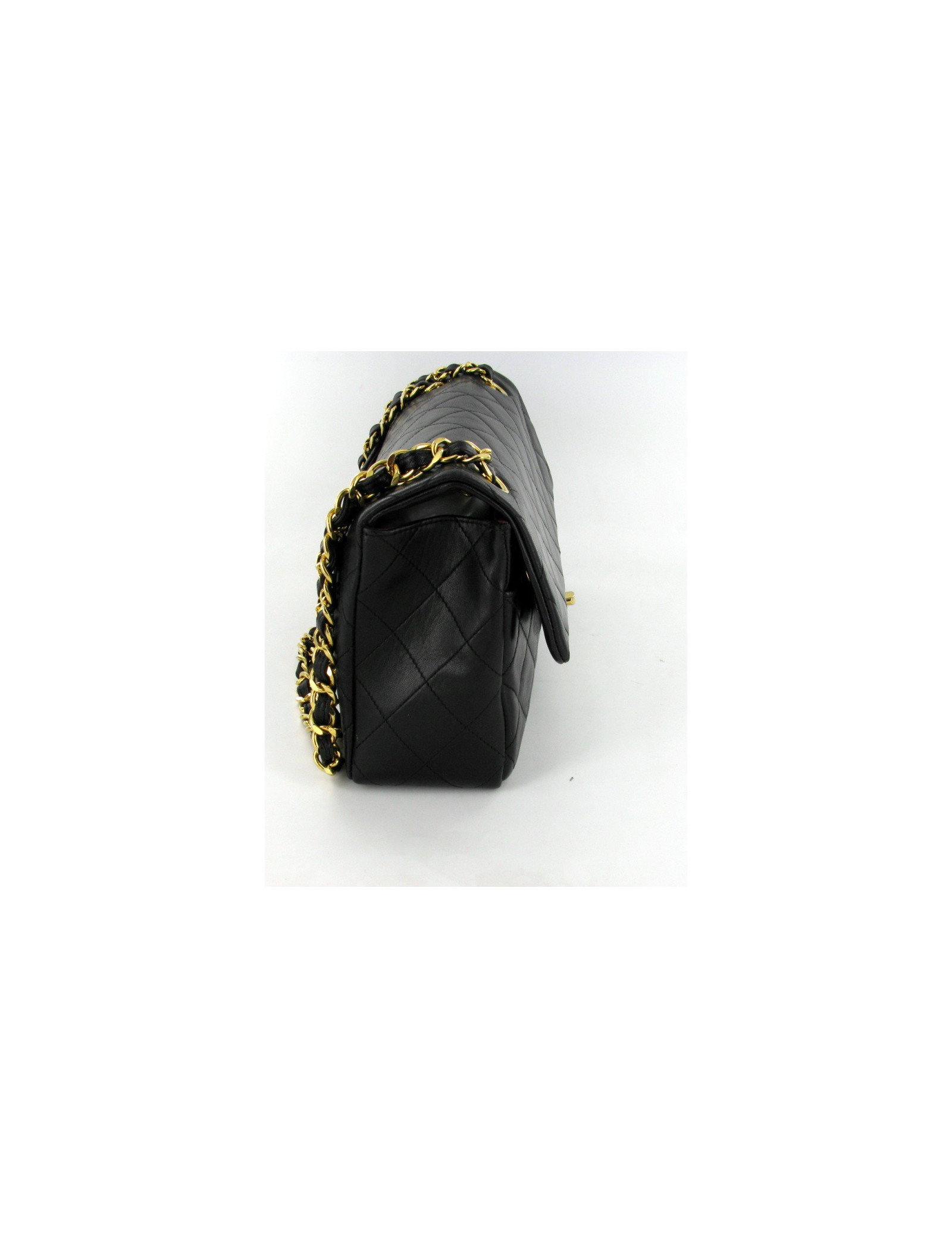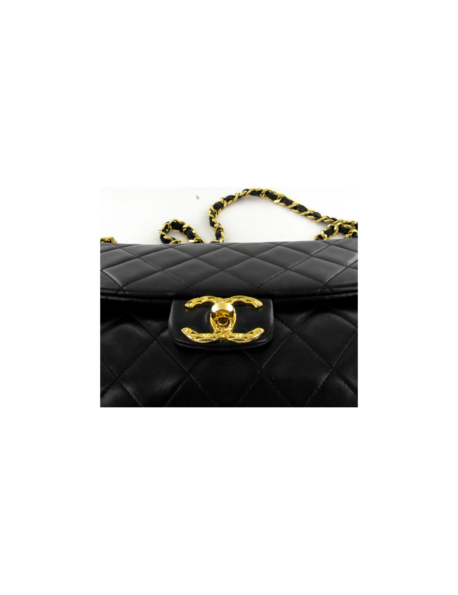 Bag CHANEL CC couture jewelry. Leather is a smooth black calf. The jewelry is gold. The string is in leather and gold metal. Interior leather is Burgundy. There are 3 pockets with a zip on the front.