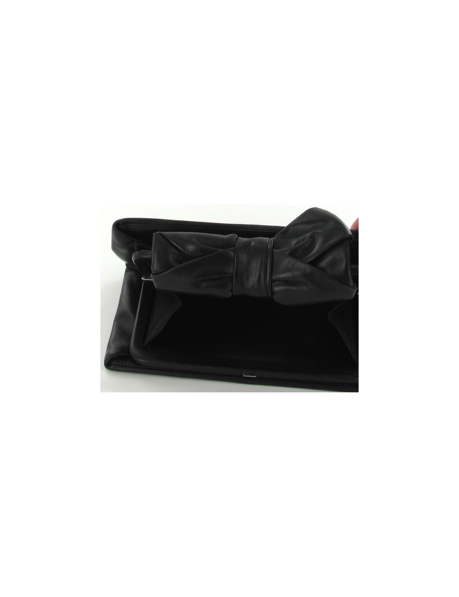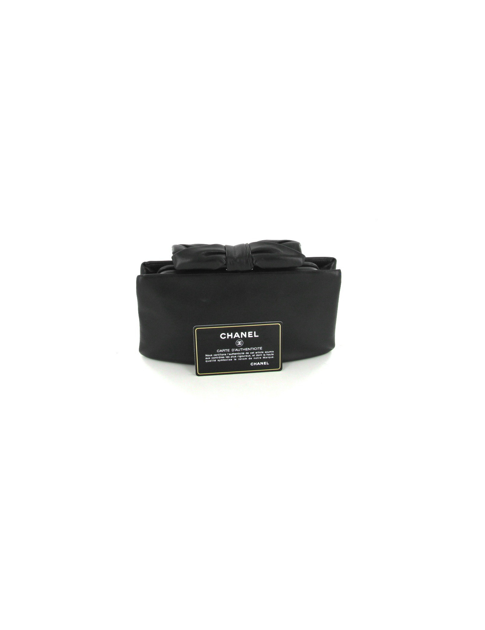 Elegant CHANEL pouch in black smooth leather perfect for the evening. It is at hand. Above is a pretty black r node. The Interior is black satin with a small pouch. There is one map of authenticity and his hologram starting with 14...