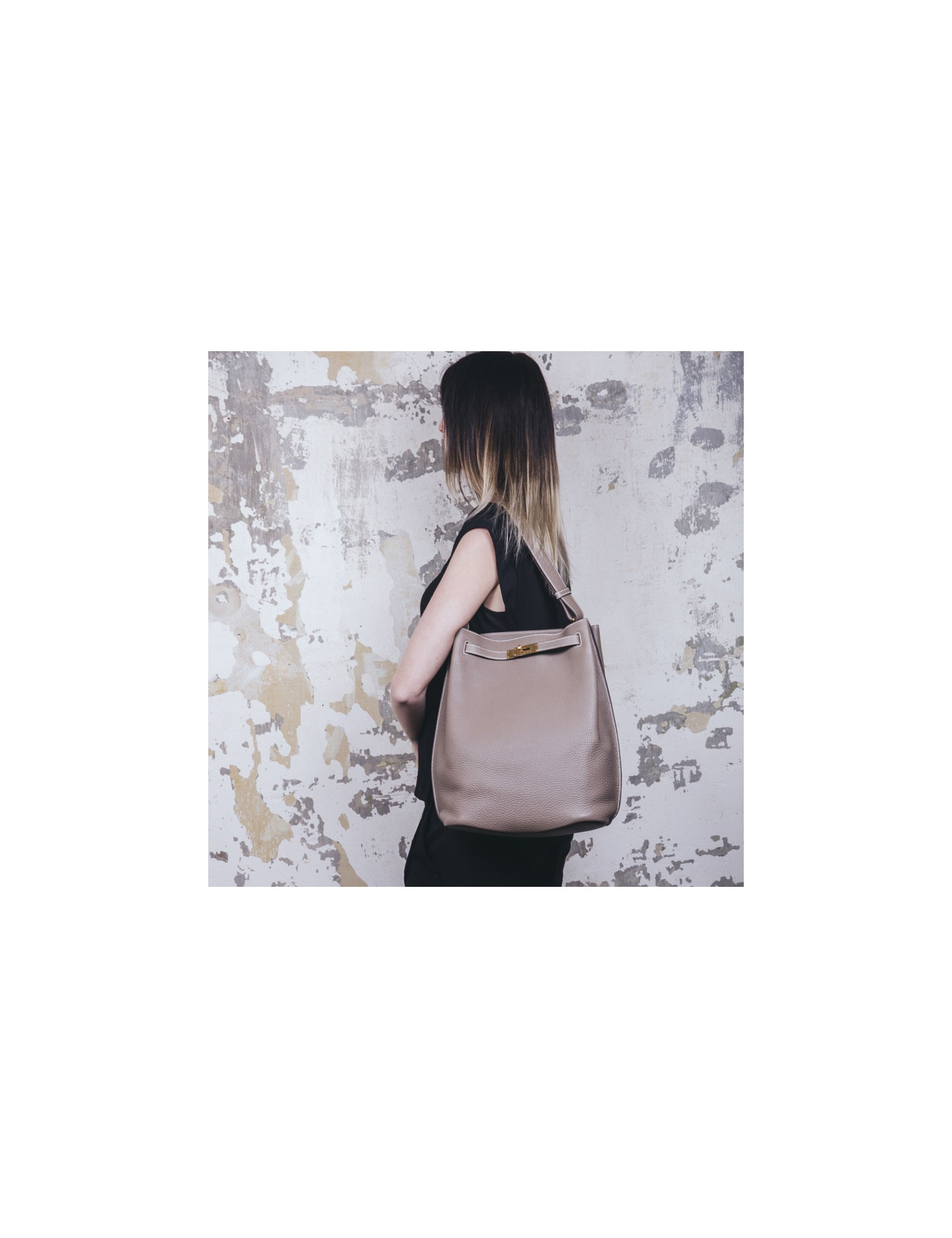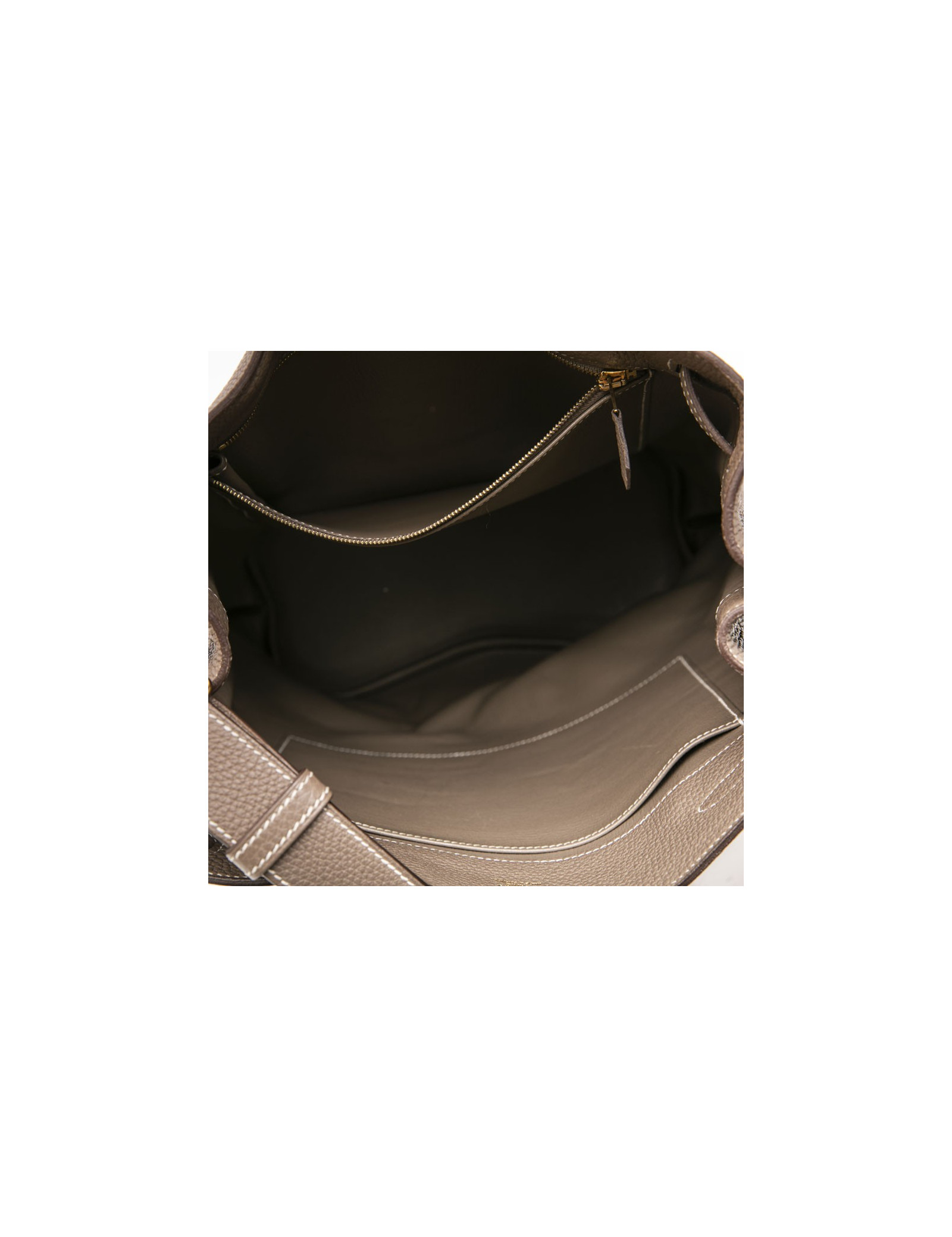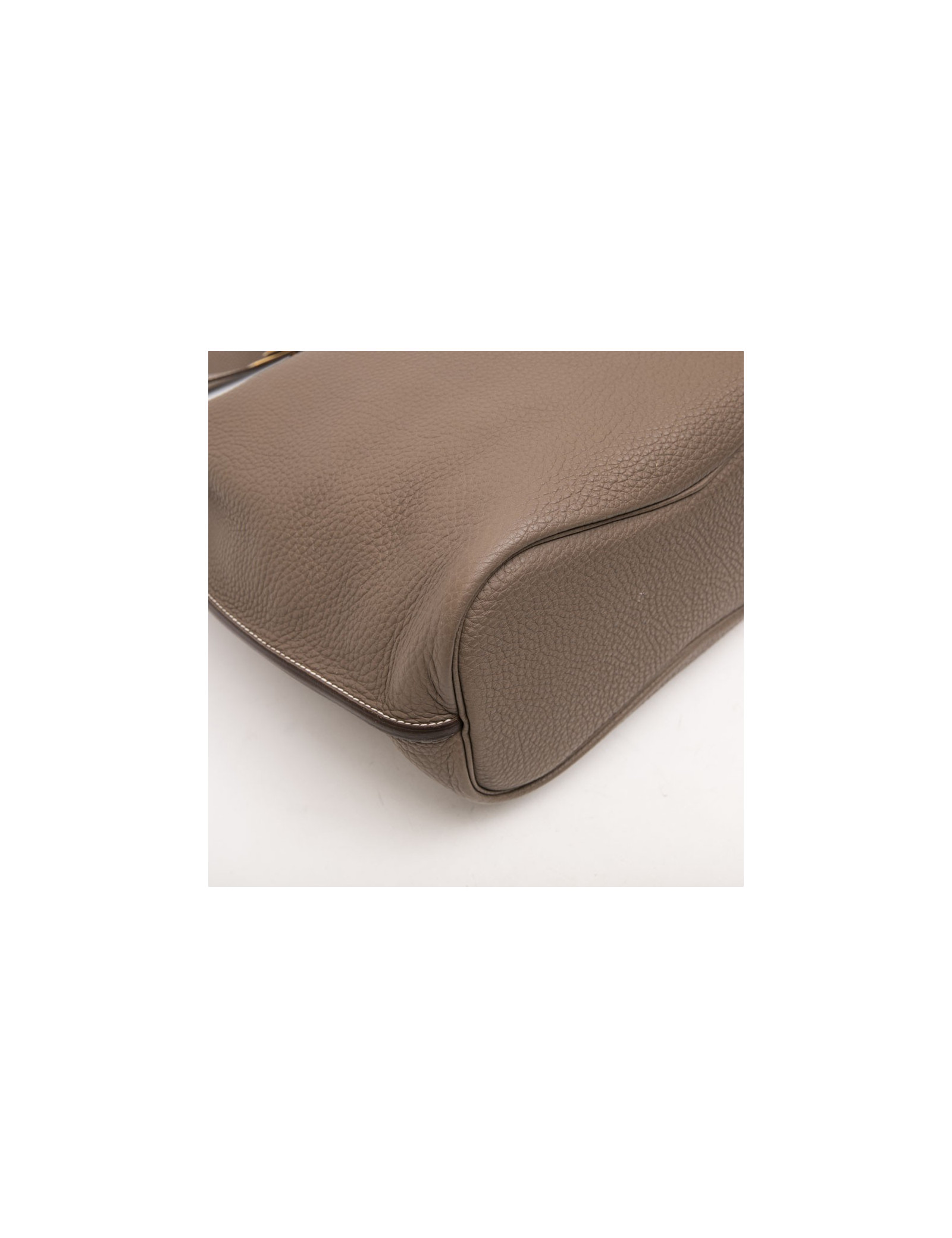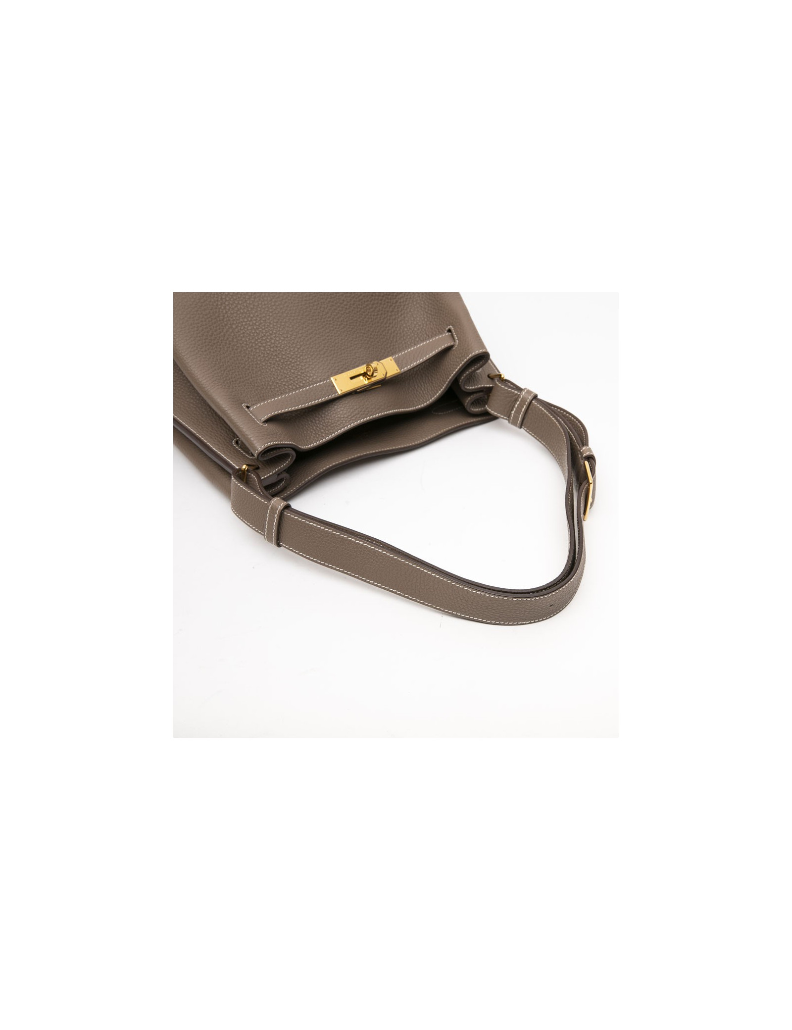 Hermès So Kelly bag in étoupe clémence taurillon leather. Gilded metal hardware.