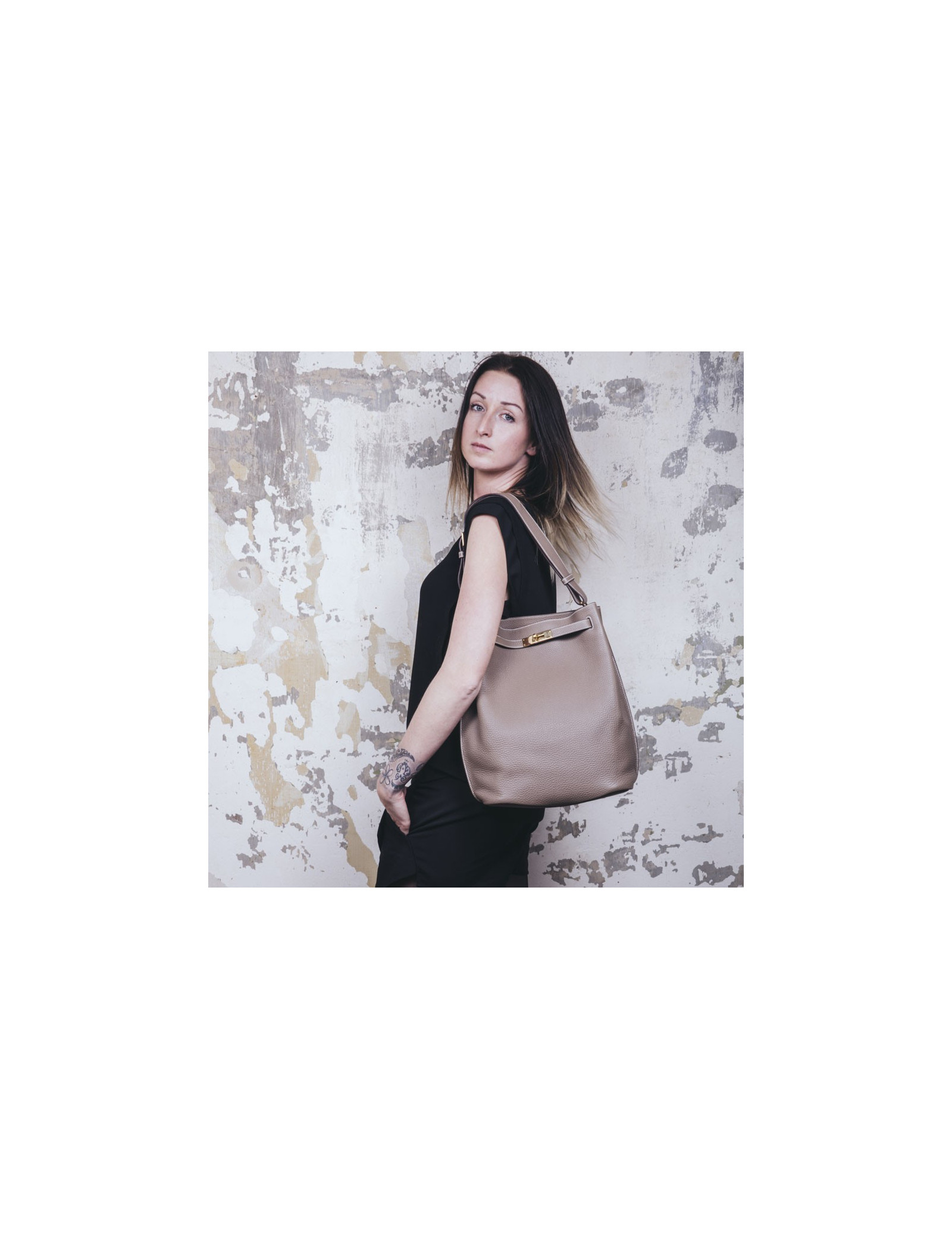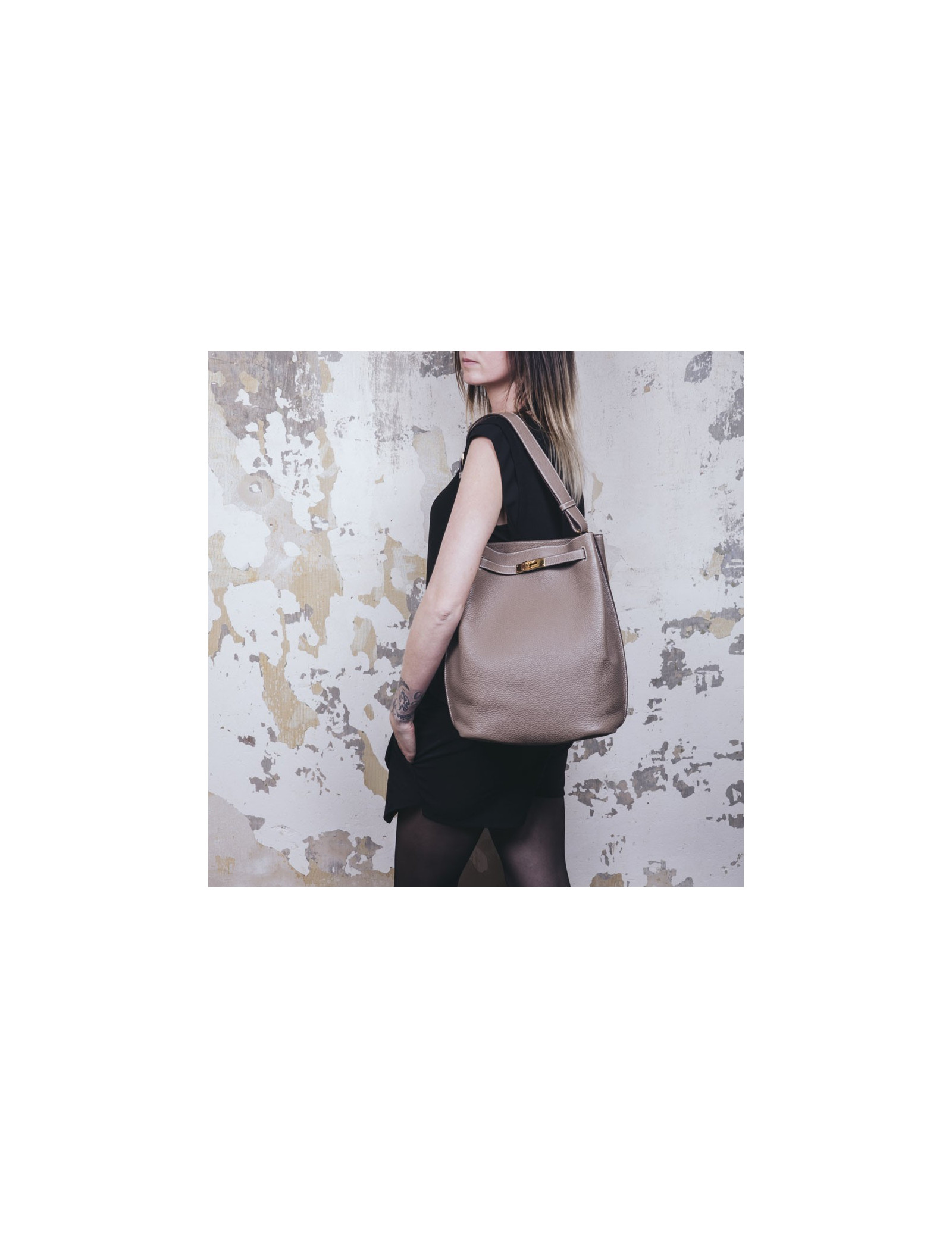 Dimensions : L 37 x H 35 x D 13 cm. Shoulder strap shorter 41.5 cm, longer 53 cm