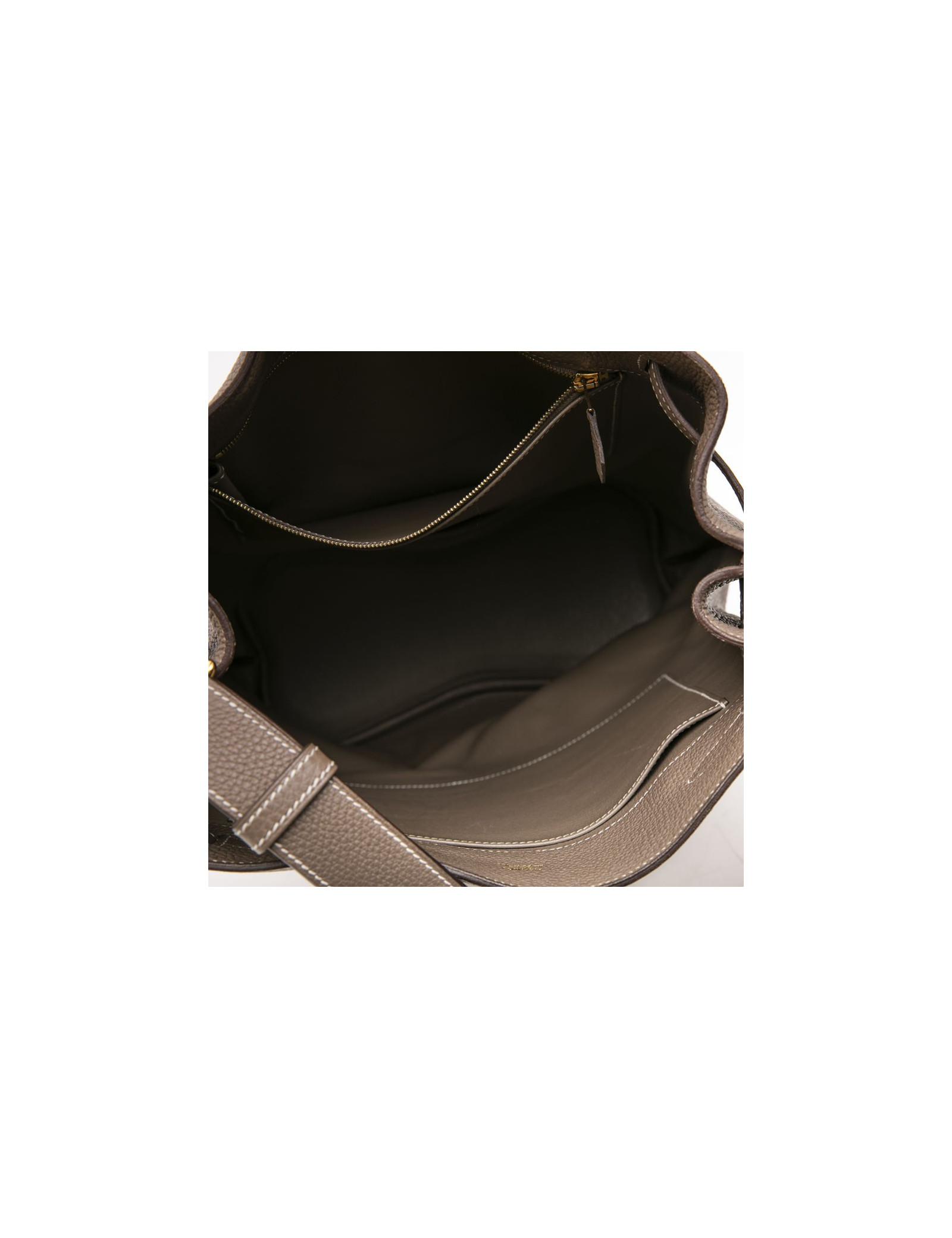 Stamp M in a square, year 2009. The interior is lined in leather with 2 pockets, one with zipper.