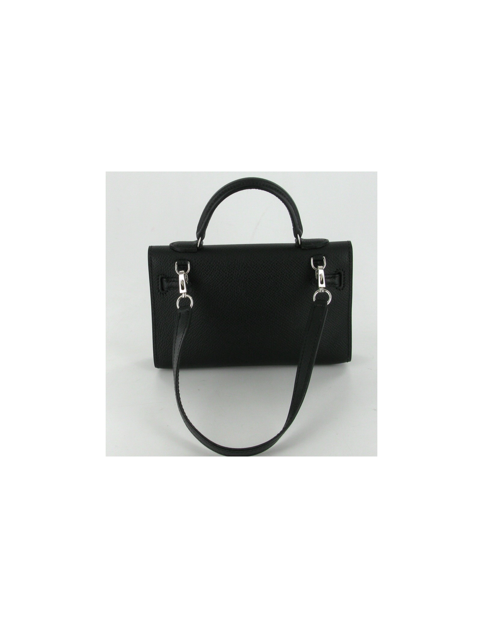 This micro legend TINY KELLY HERMES bag is a marvel in miniature. It is worn by hand or with the small Cove or the shoulder. It is in black grained leather (epsom). The Interior is black smooth leather and features a small pocket. This small bag n'a jamais été porté, il est livré avec son dustbag et sa boite.