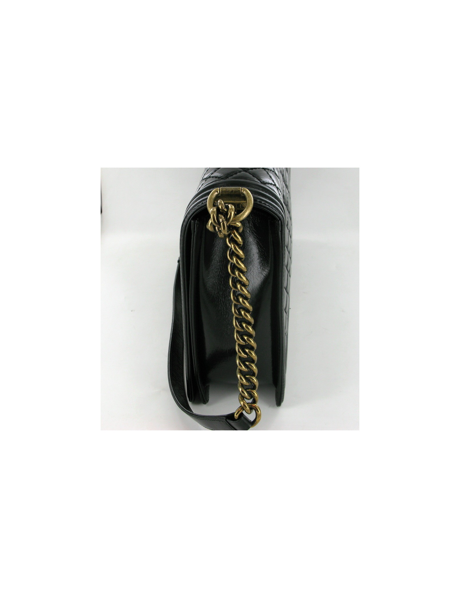 Model "Boy" CHANEL (in homage to Boy Capel, the great love of Coco Chanel) leather (goat) aged. The colori is glossy black. Attributes are aged gold. The chain is a beautiful antique gold Bangle. The Interior is beige canvas and has 3 pockets with a zipper and 1 keys. The hologram is 1784 *. This bag has never been worn. Comes with the dustbag.