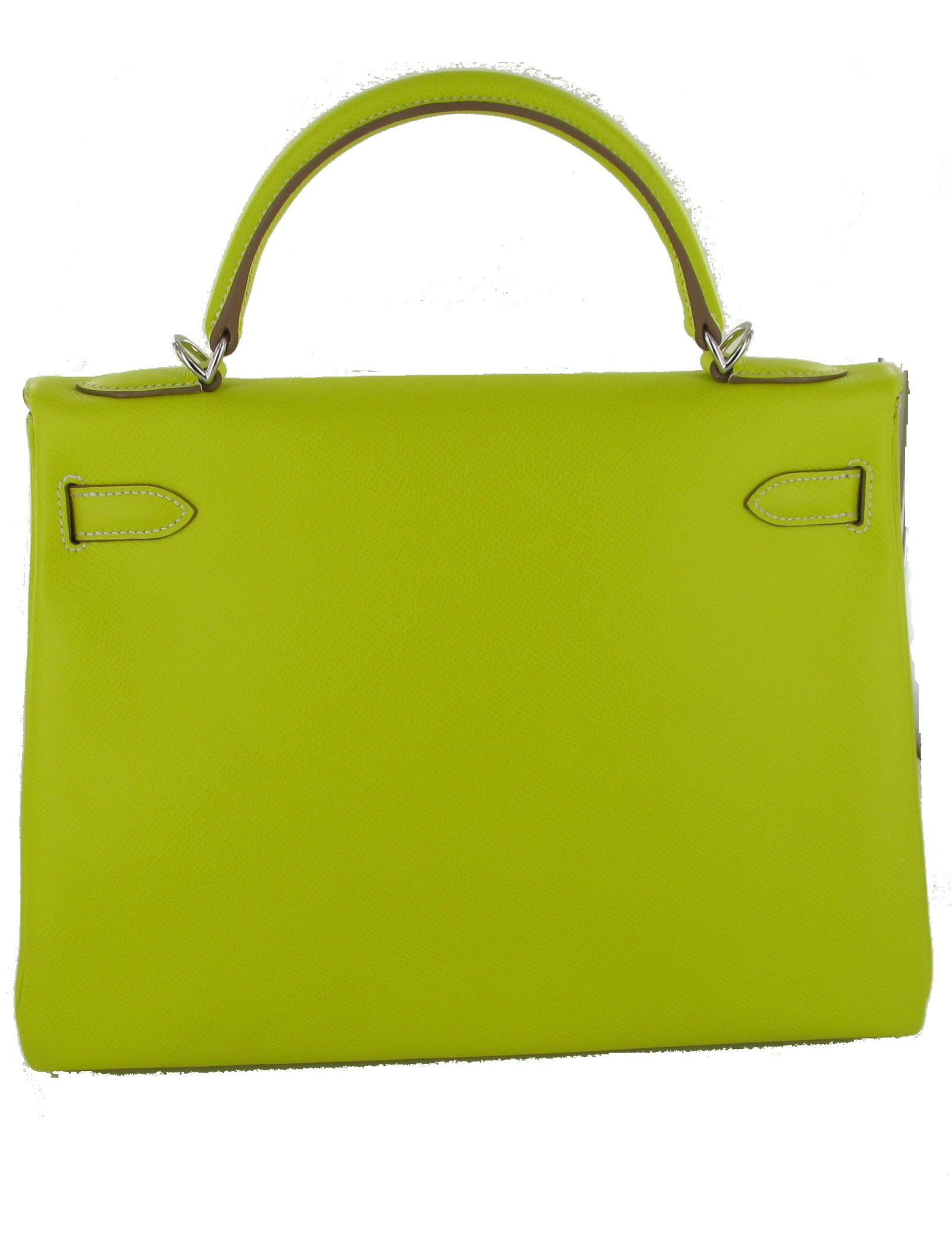 Kelly II 32 HERMES Candy lime and grey two-tone