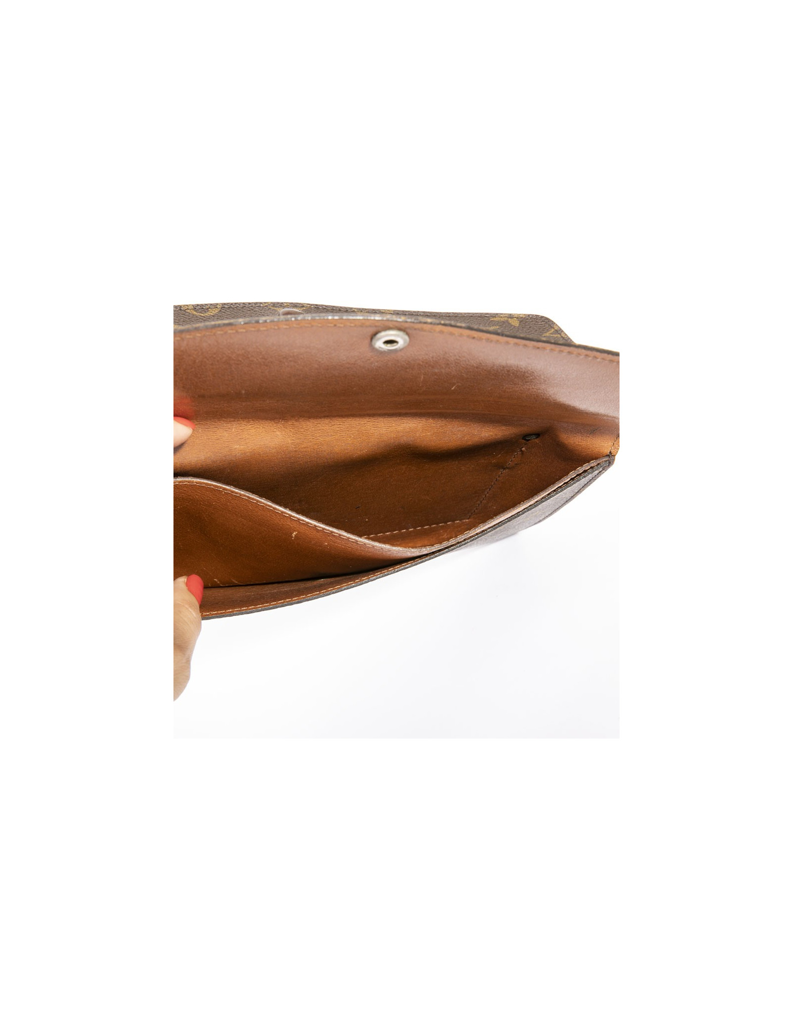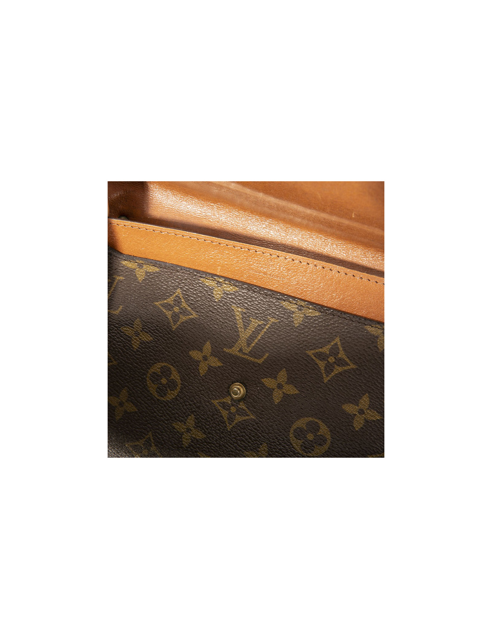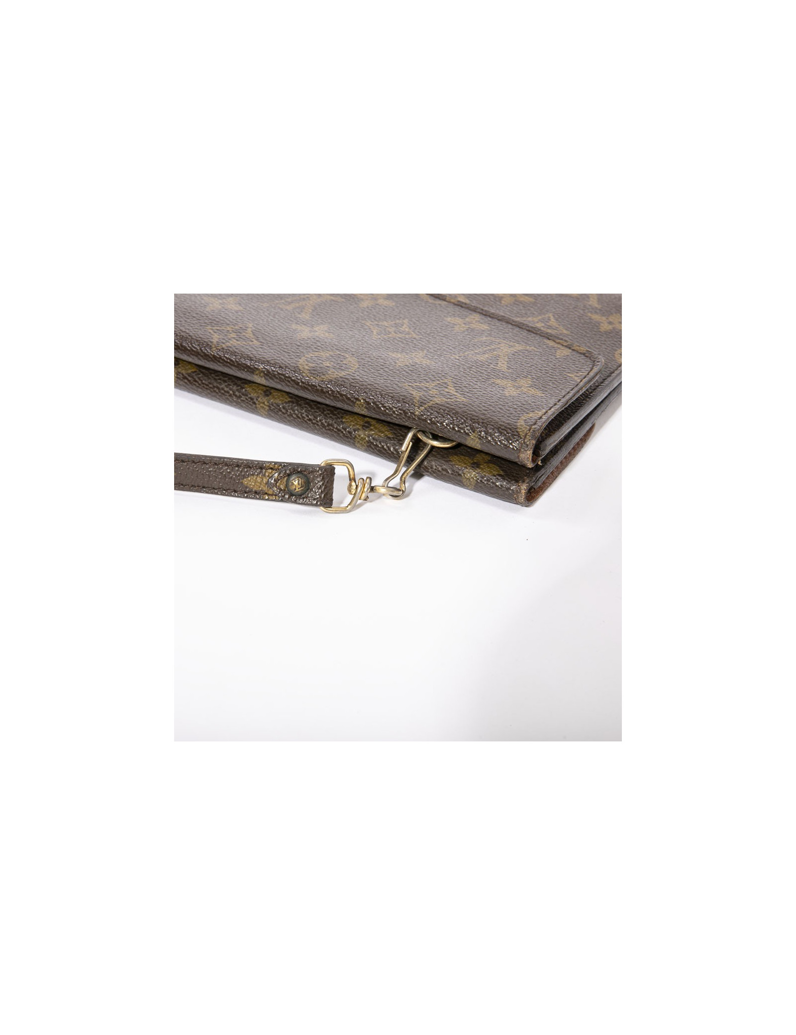 Louis Vuitton vintage double clutch bag in brown monogram canvas. Hardware in gilt metal. Inner lining in dark brown leather. Snap closures.