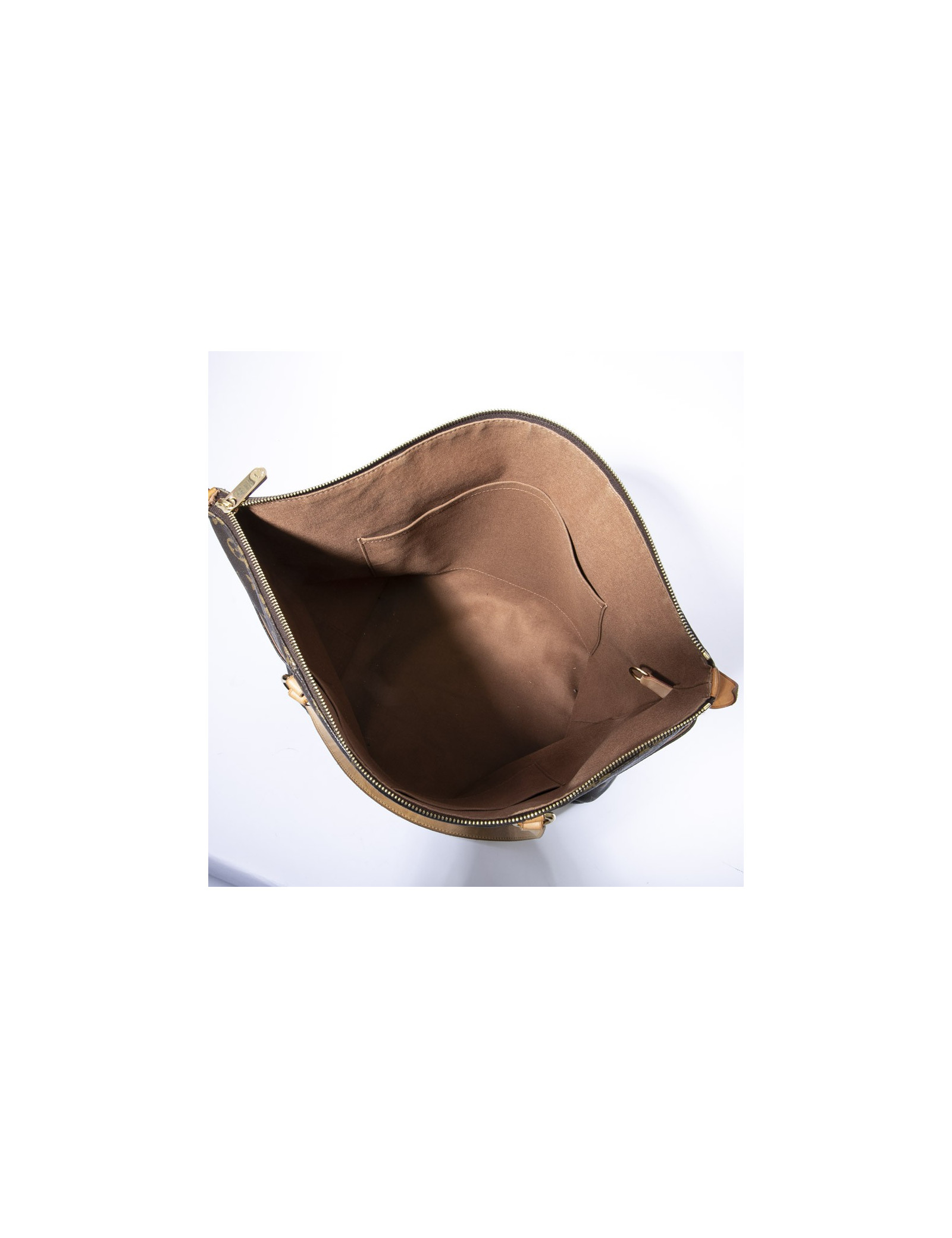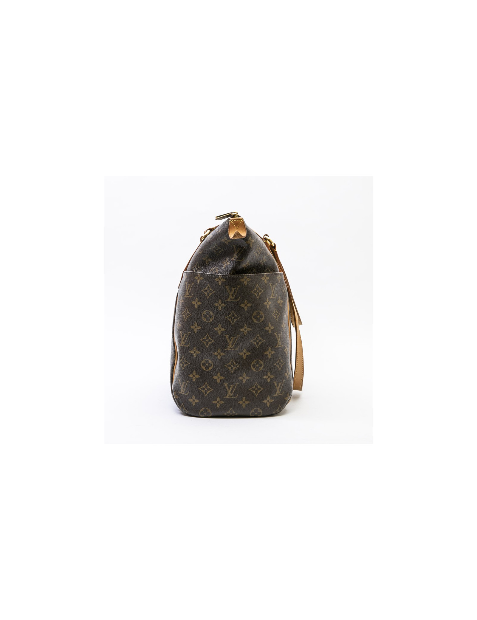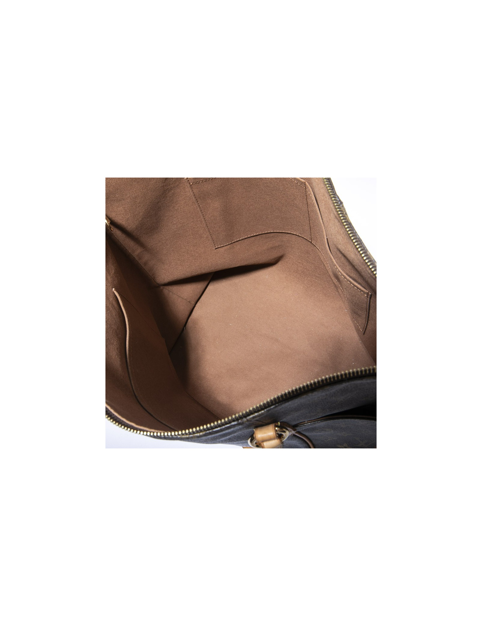 Louis Vuitton tote bag in brown monogram coated canvas and natural cowhide finishes. Hardware in gilt metal. Zip closure.