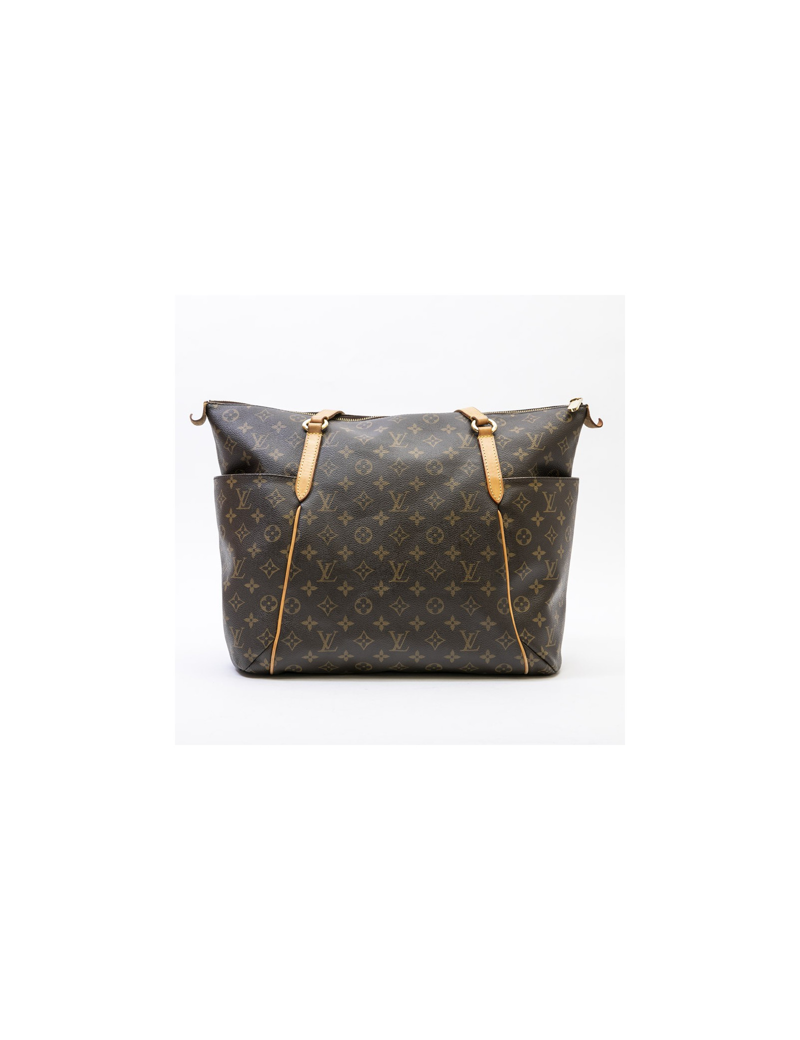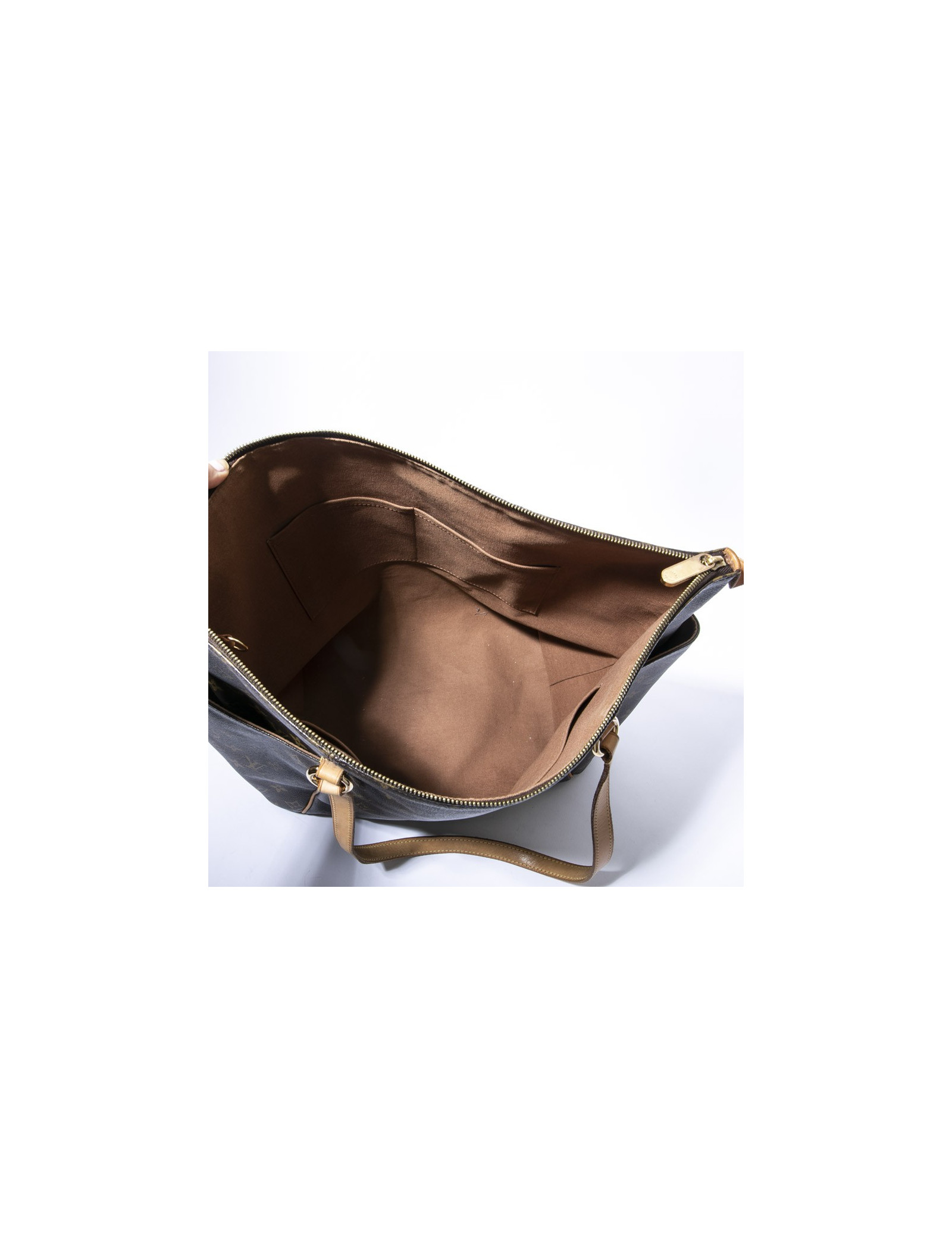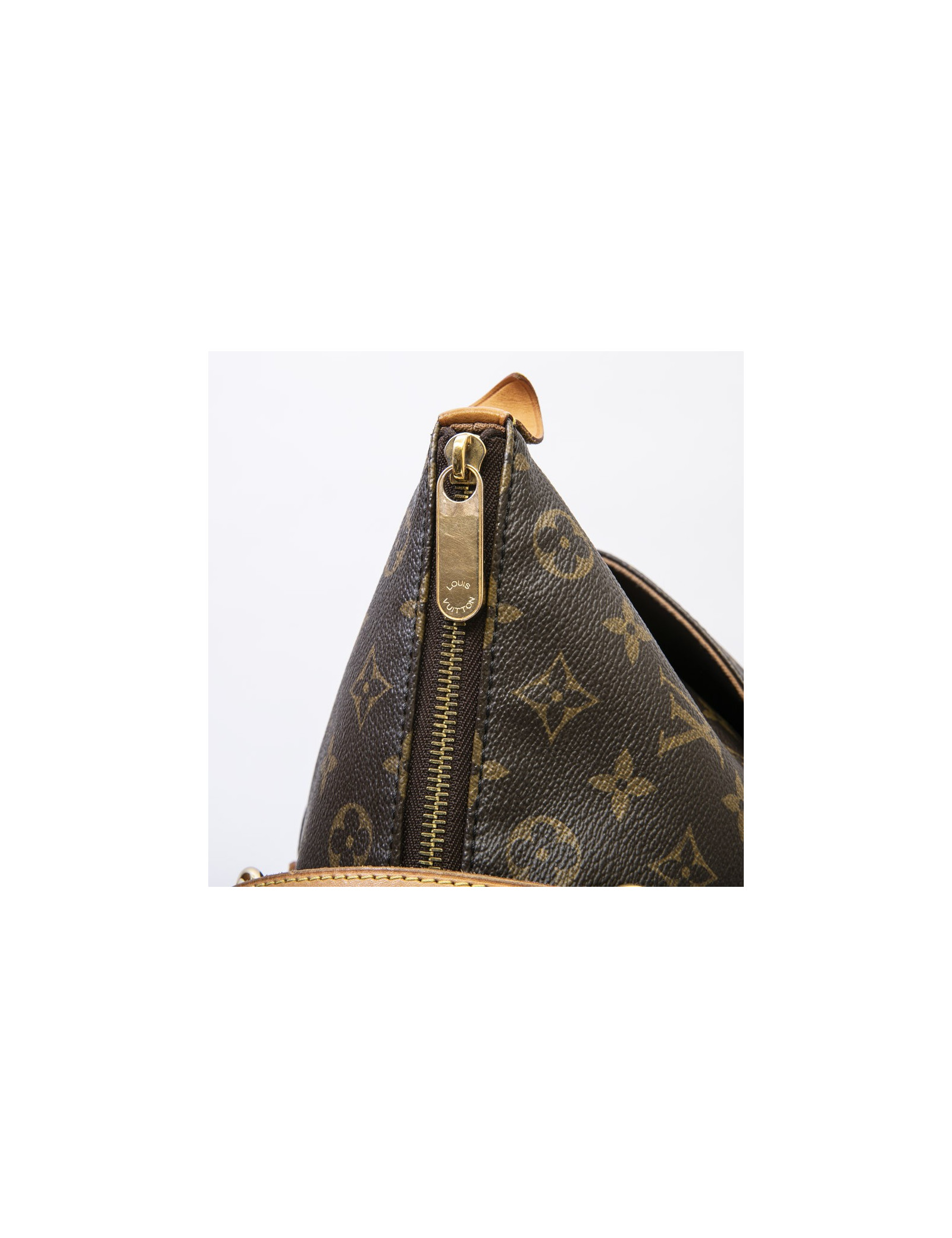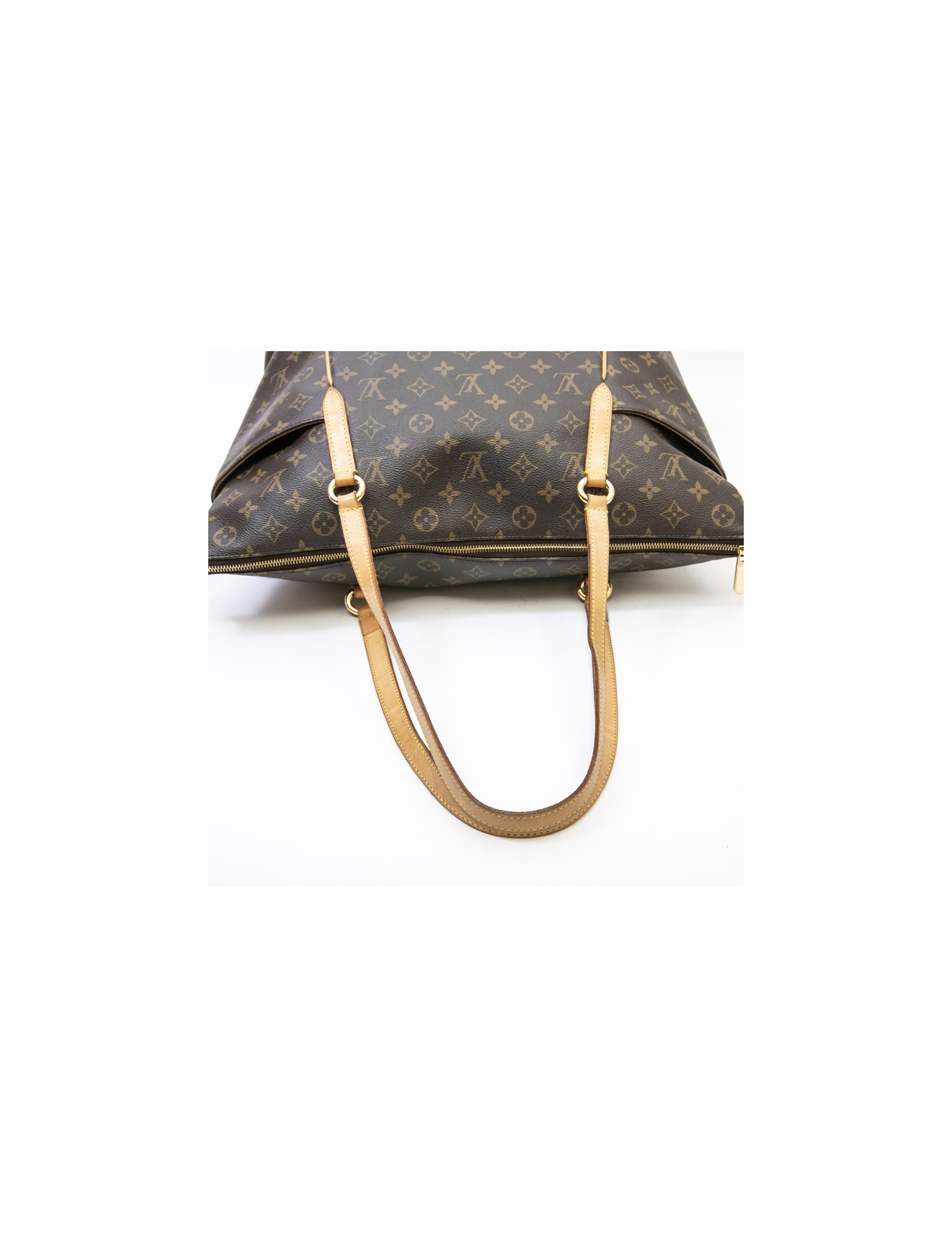 Louis Vuitton tote bag in brown monogram coated canvas and natural cowhide finishes. Hardware in gilt metal. Zip closure.