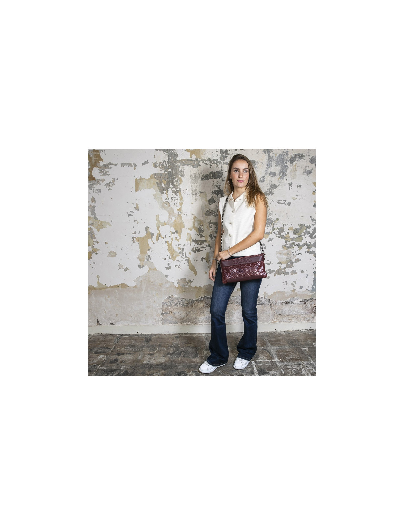 Chanel bag in burgundy quilted aged leather