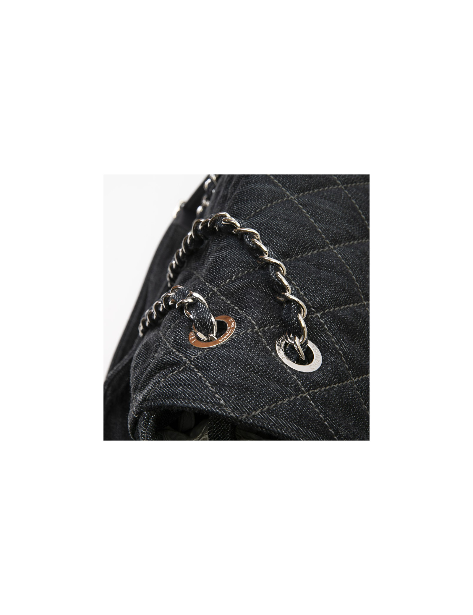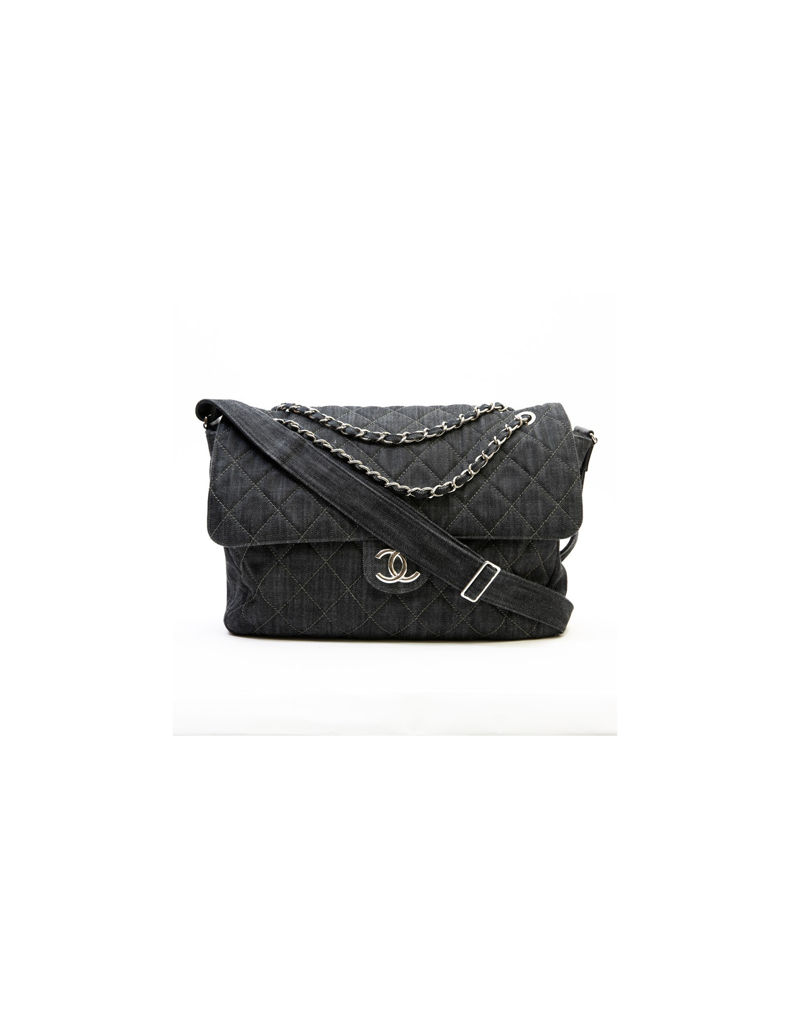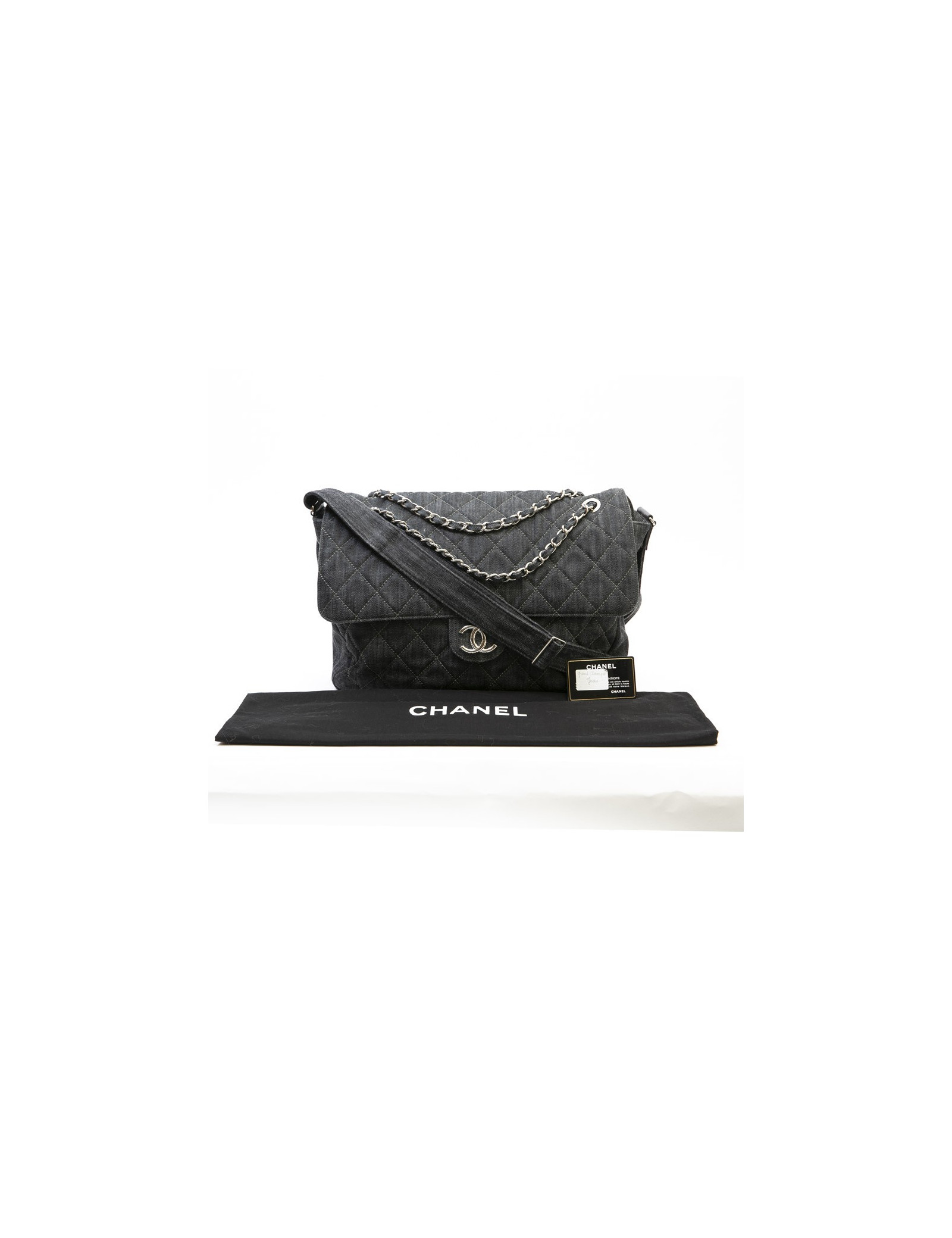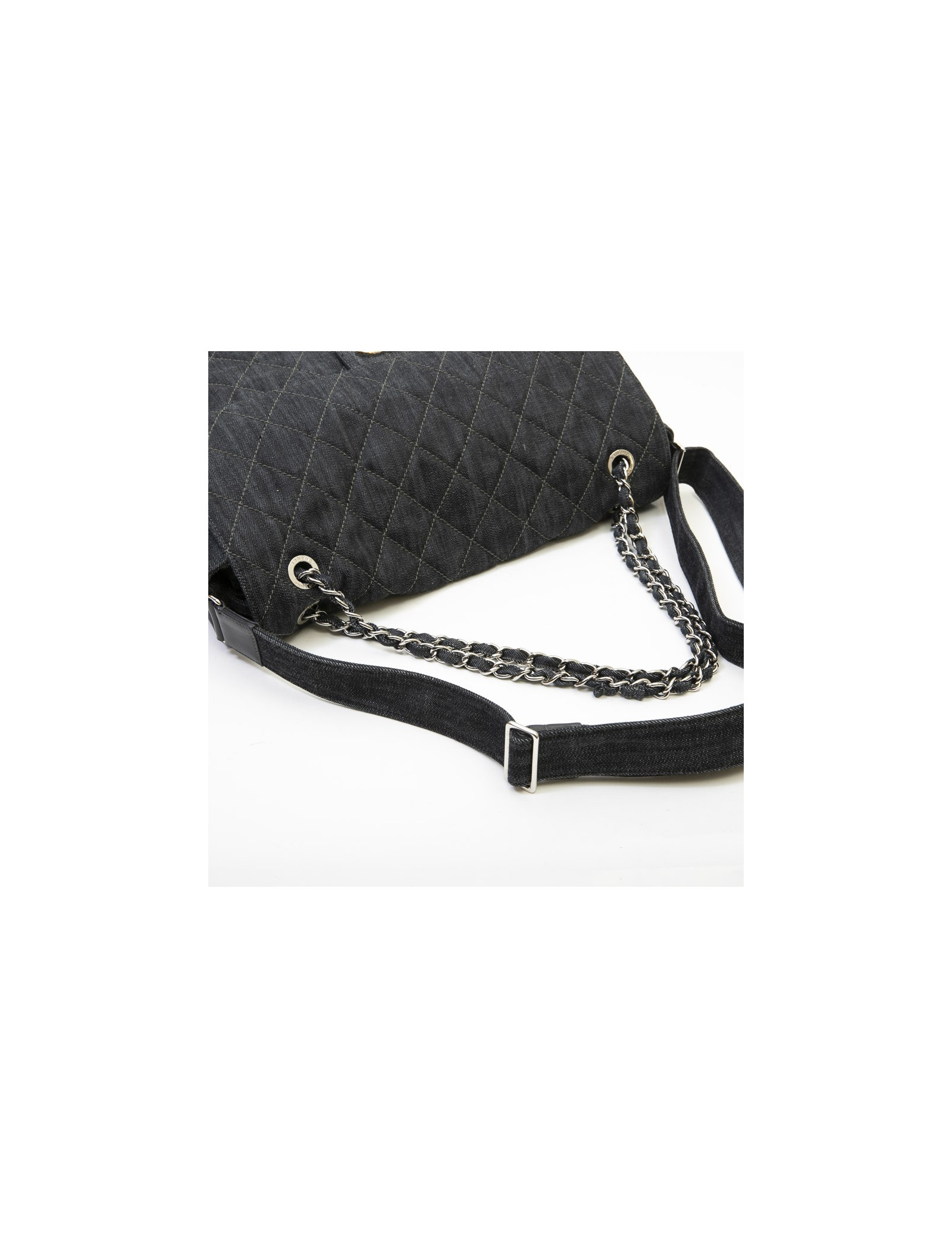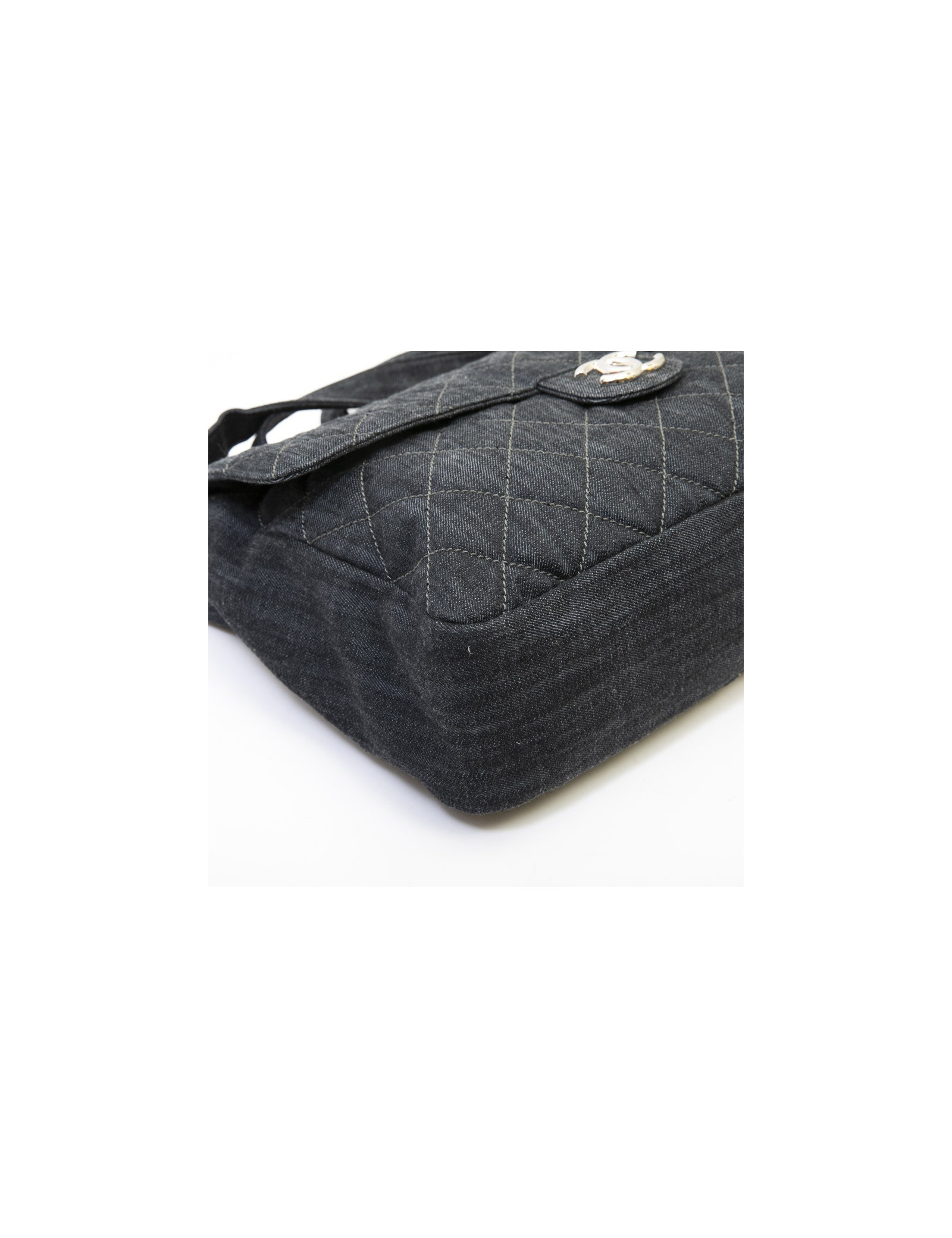 Chanel bag in blue denim fabric. Silver metal hardware. Clasp 'CC' magnetized.