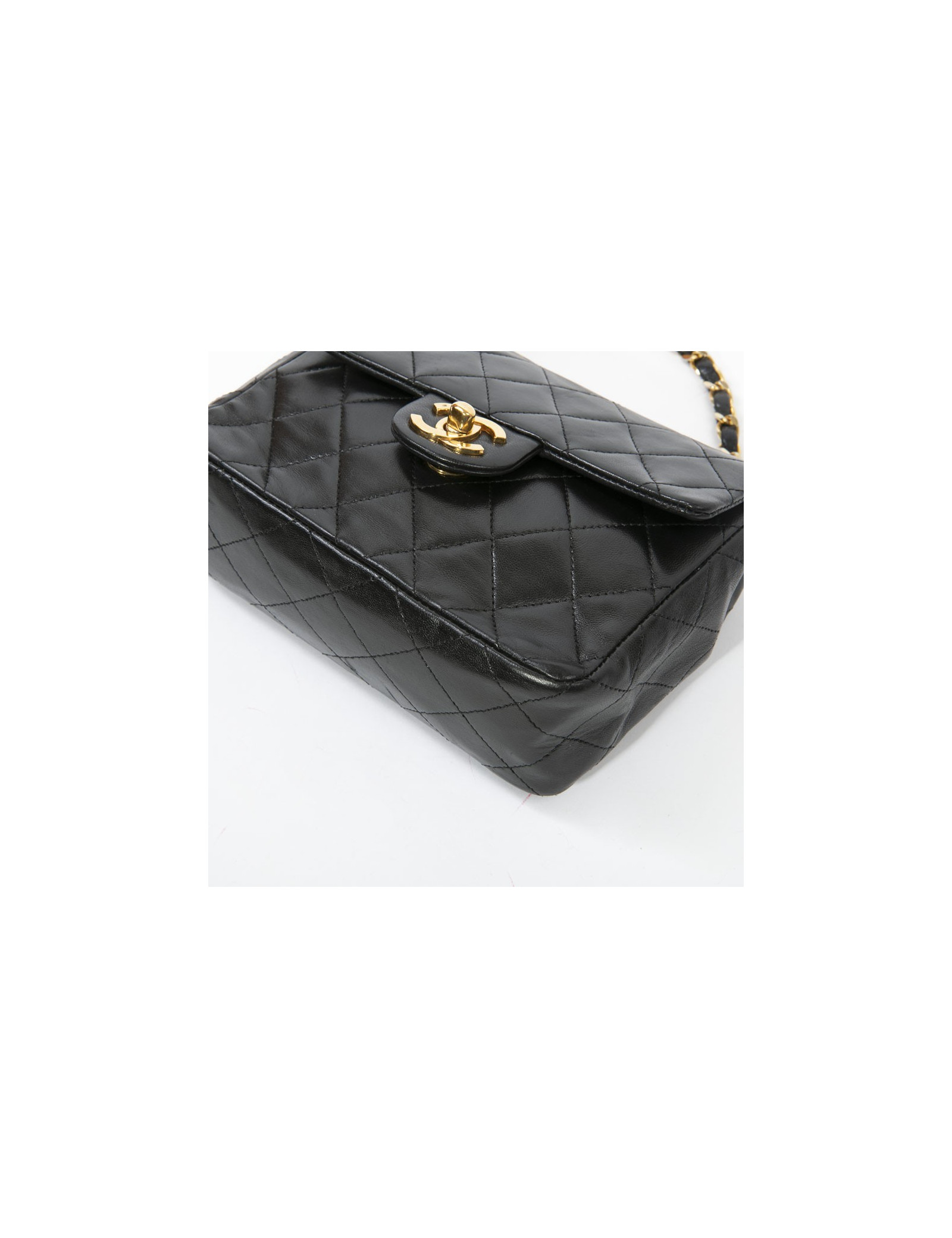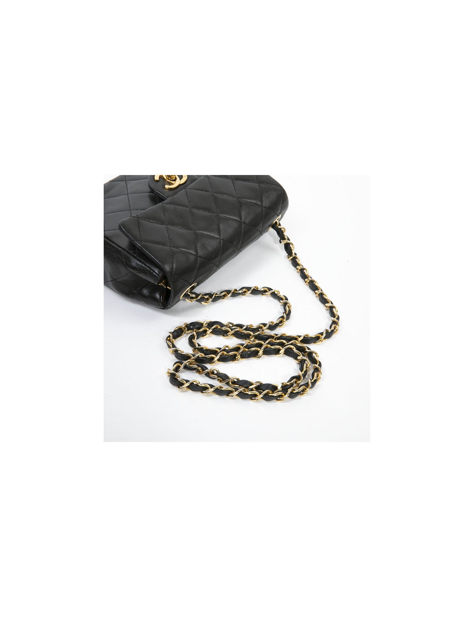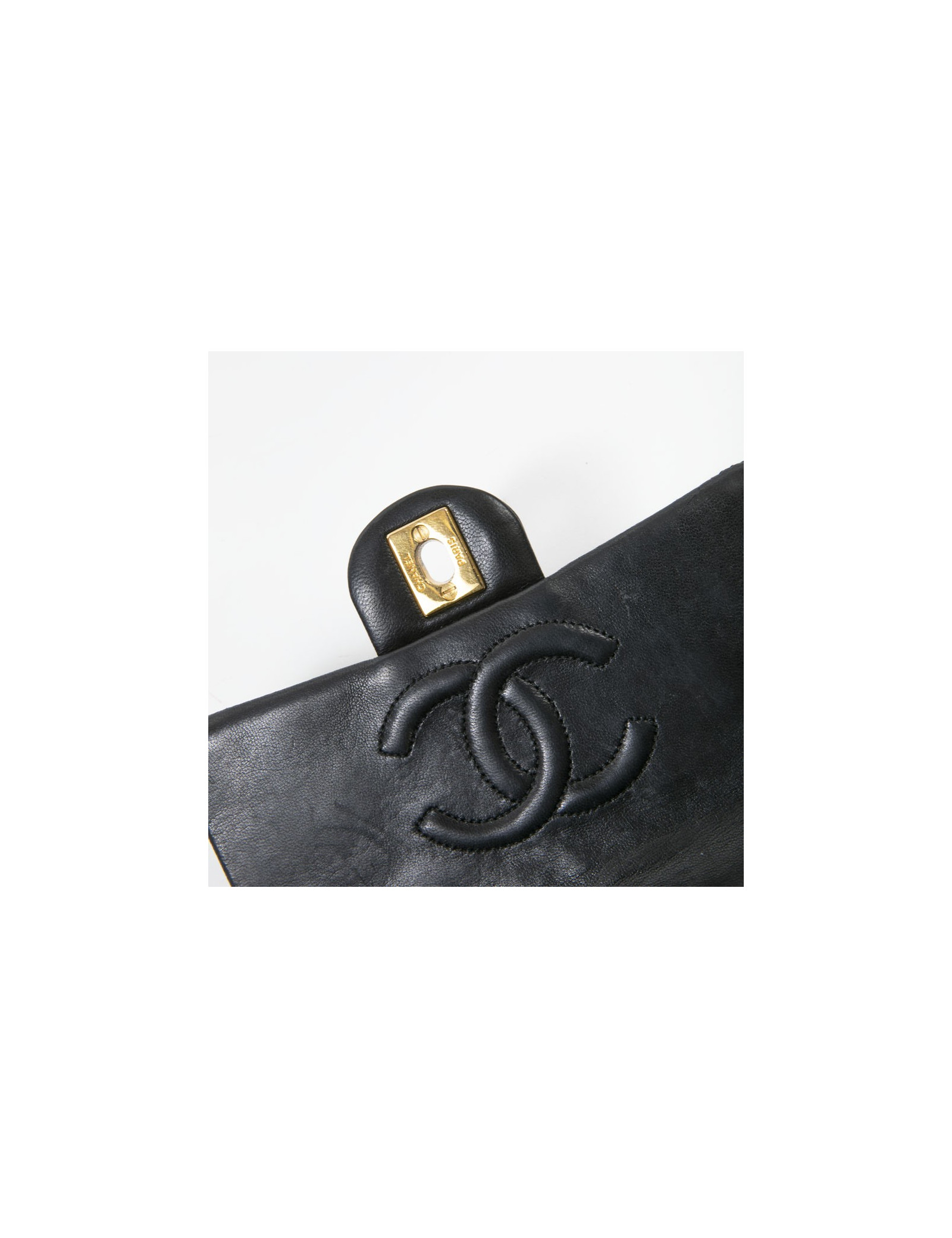 Sac CHANEL cuir d'agneau matelassé noir Vintage