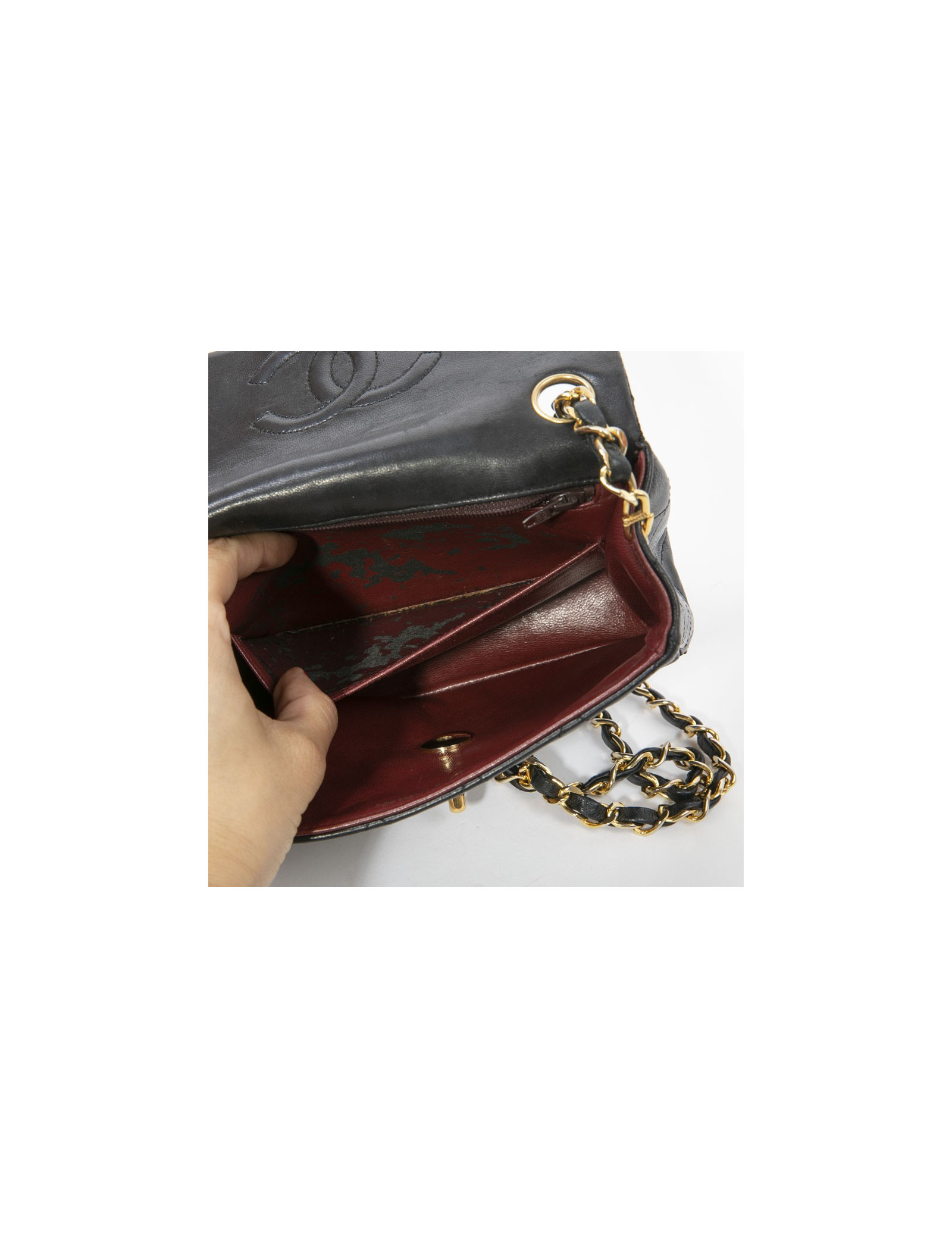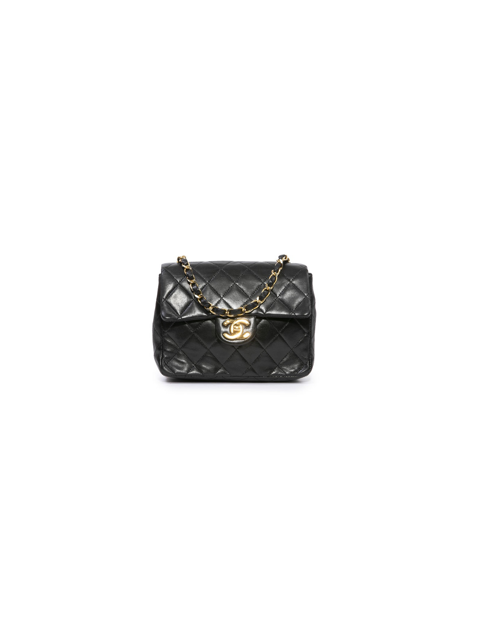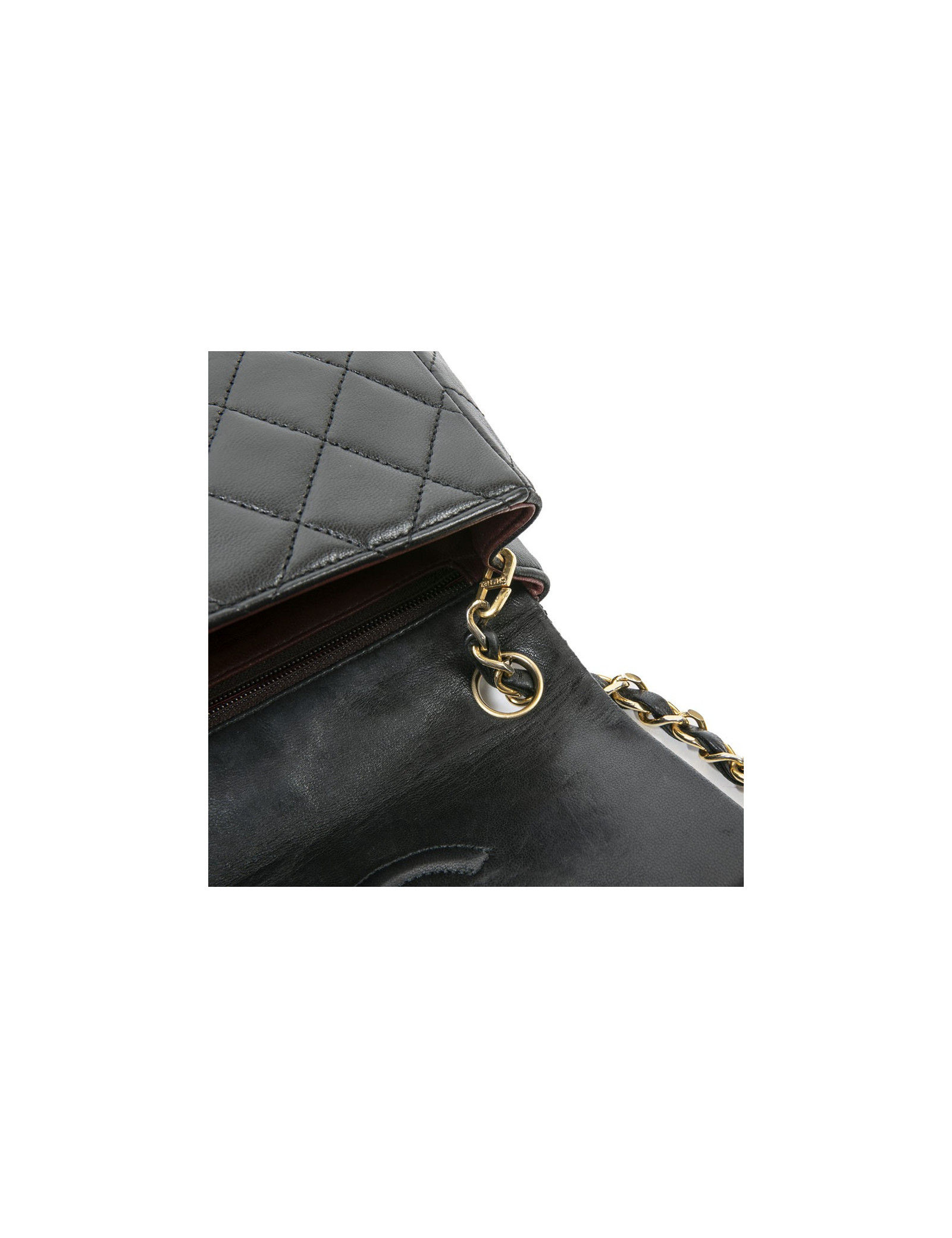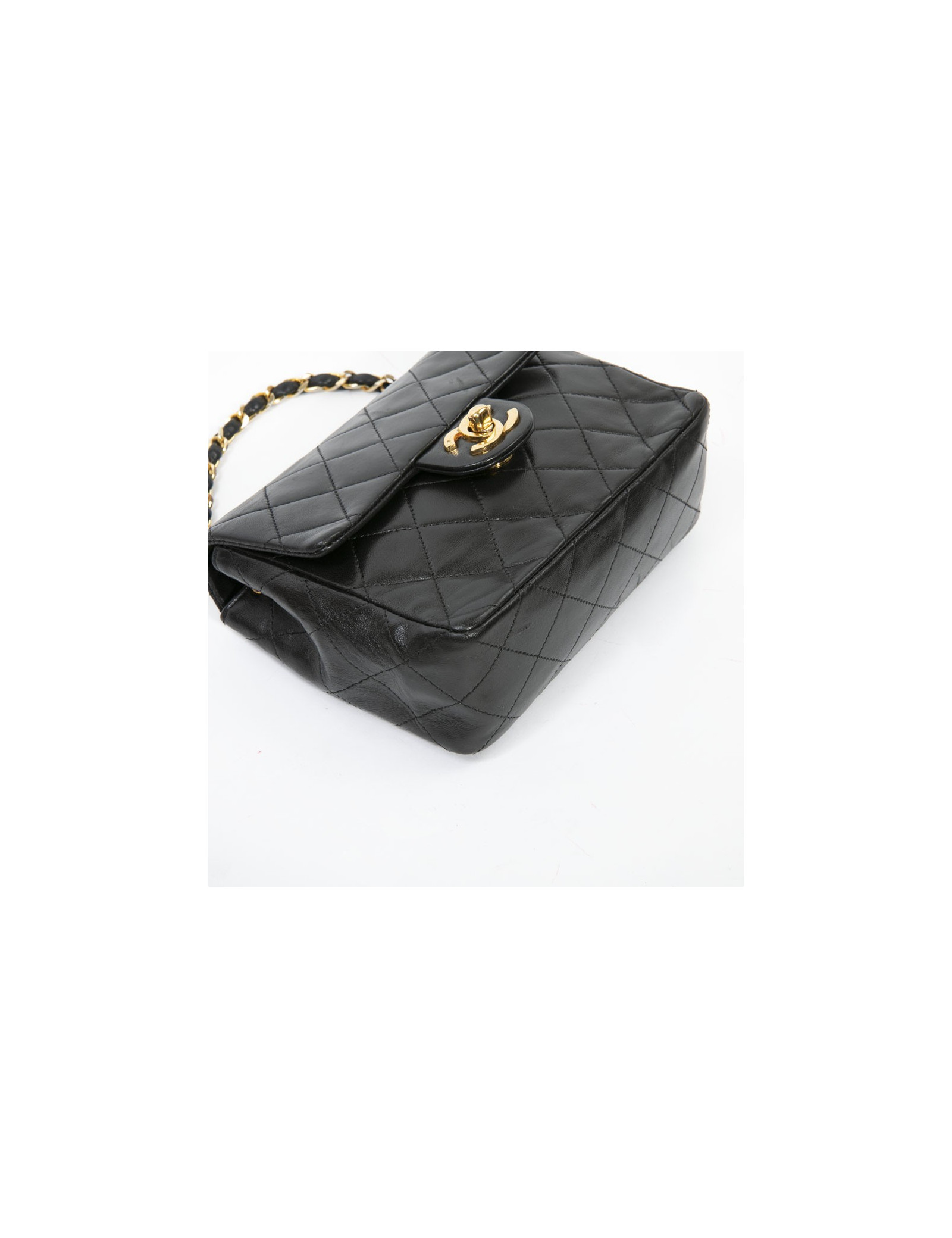 Sac CHANEL cuir d'agneau matelassé noir Vintage