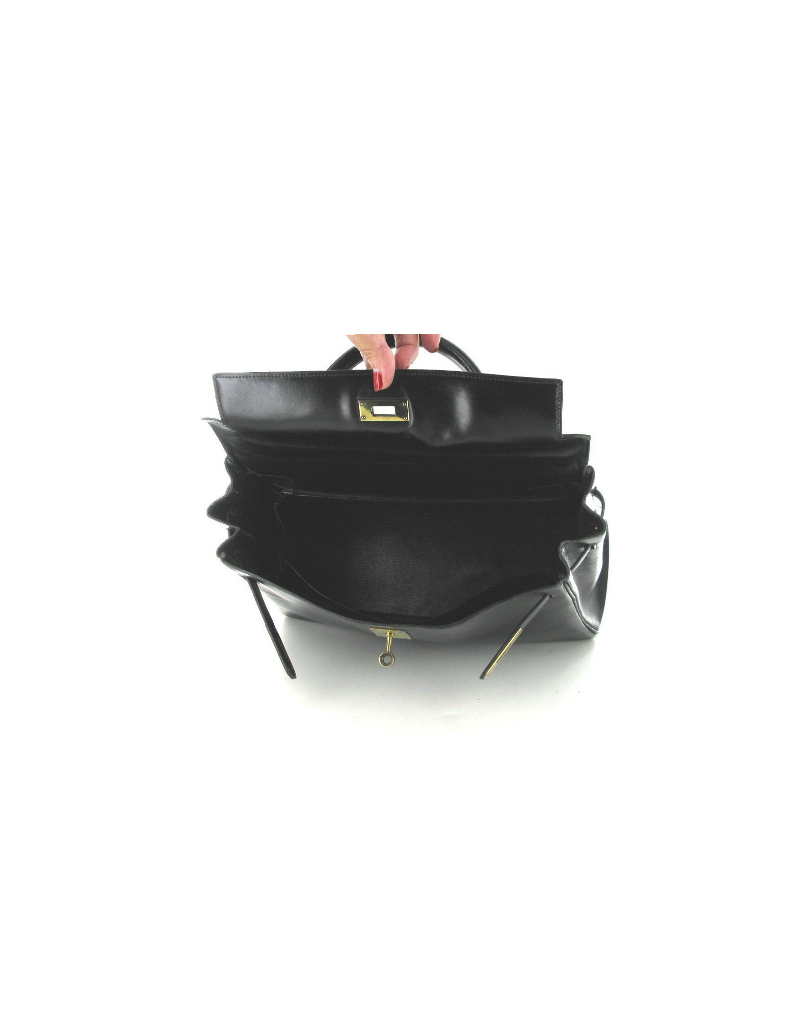 Bag Vintage Kelly 32 Hermes black box dated the year J (1980).