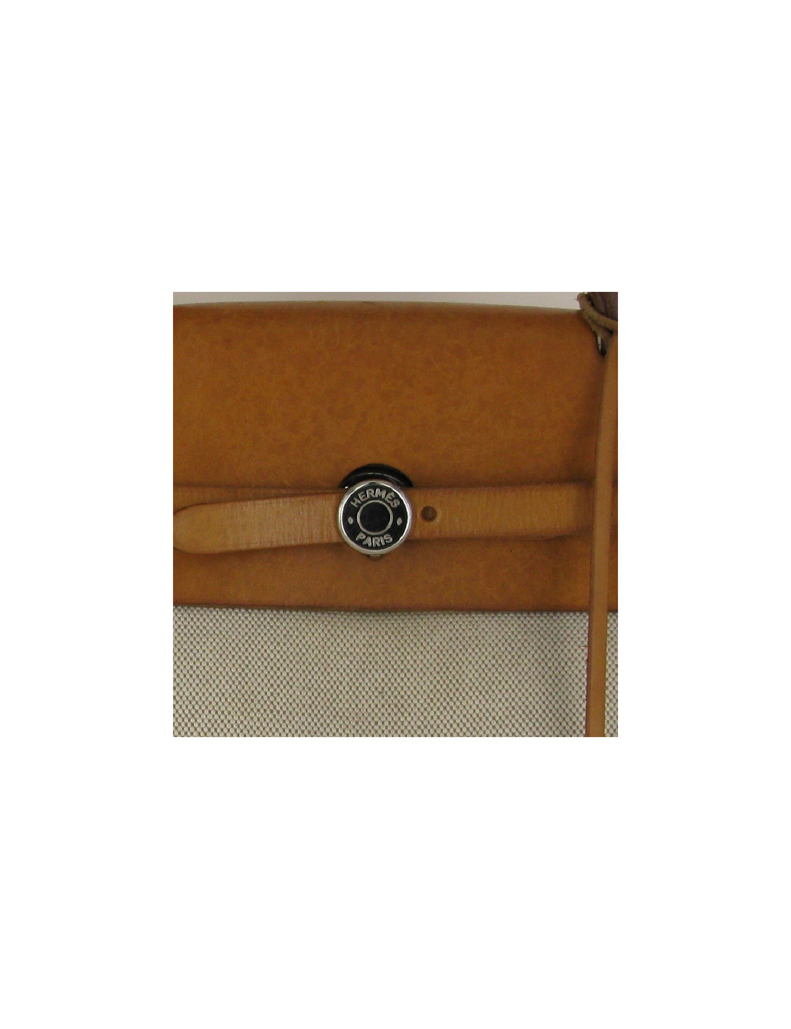 It closes using legs for gripping in natural leather and clasp acronym "HERMES" palladium.