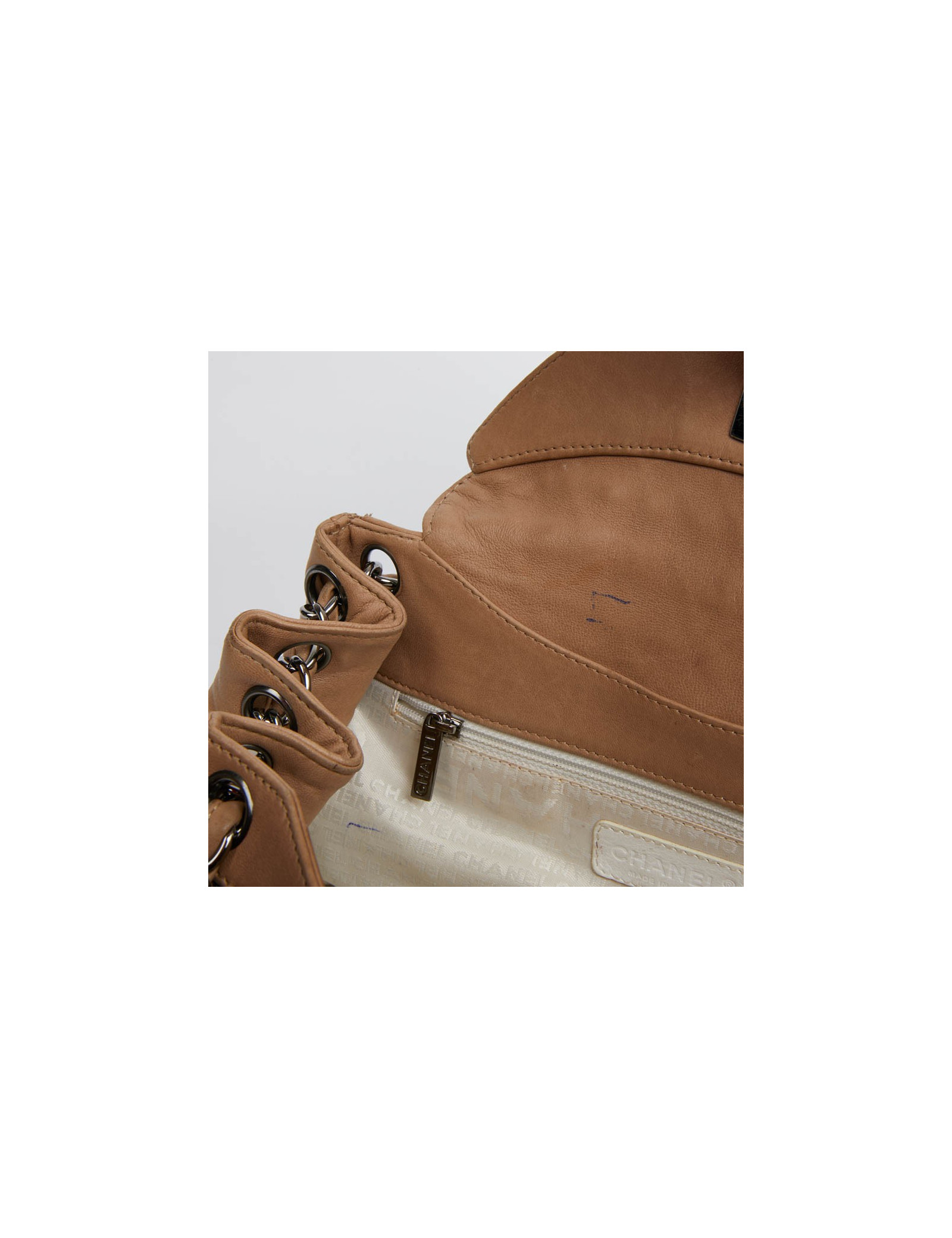 -400.00 € 255 CHANEL CHANEL white crumpled leather Jumbo bag CHANEL 33658 6,900.00 € 7,300.00 € CHANEL white crumpled leather 2.55 bag Condition : very goodMade in FranceGender : womanMaterial : crumpled calfskin leatherColor : whiteLining : smooth white leatherMeasurements : 31 x 19 x 8 cmShoulder strap : simple 96 cm, double 60 cmHologram : yesAuthenticity card : noYear : 2005Hardware : silver finish metalDetails : a patch pocket on the back. It... Add to cart
