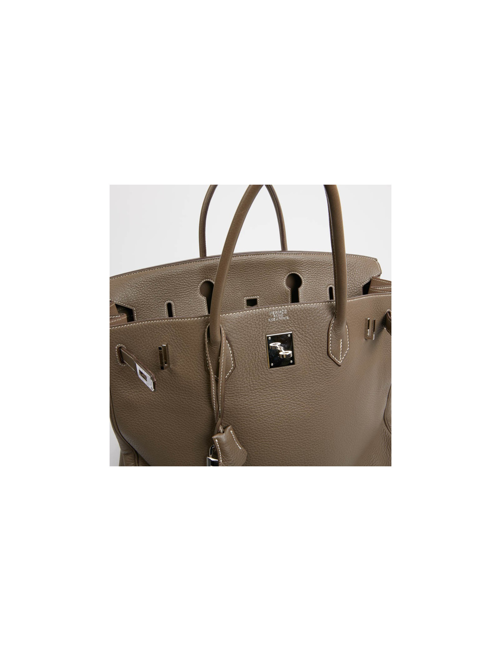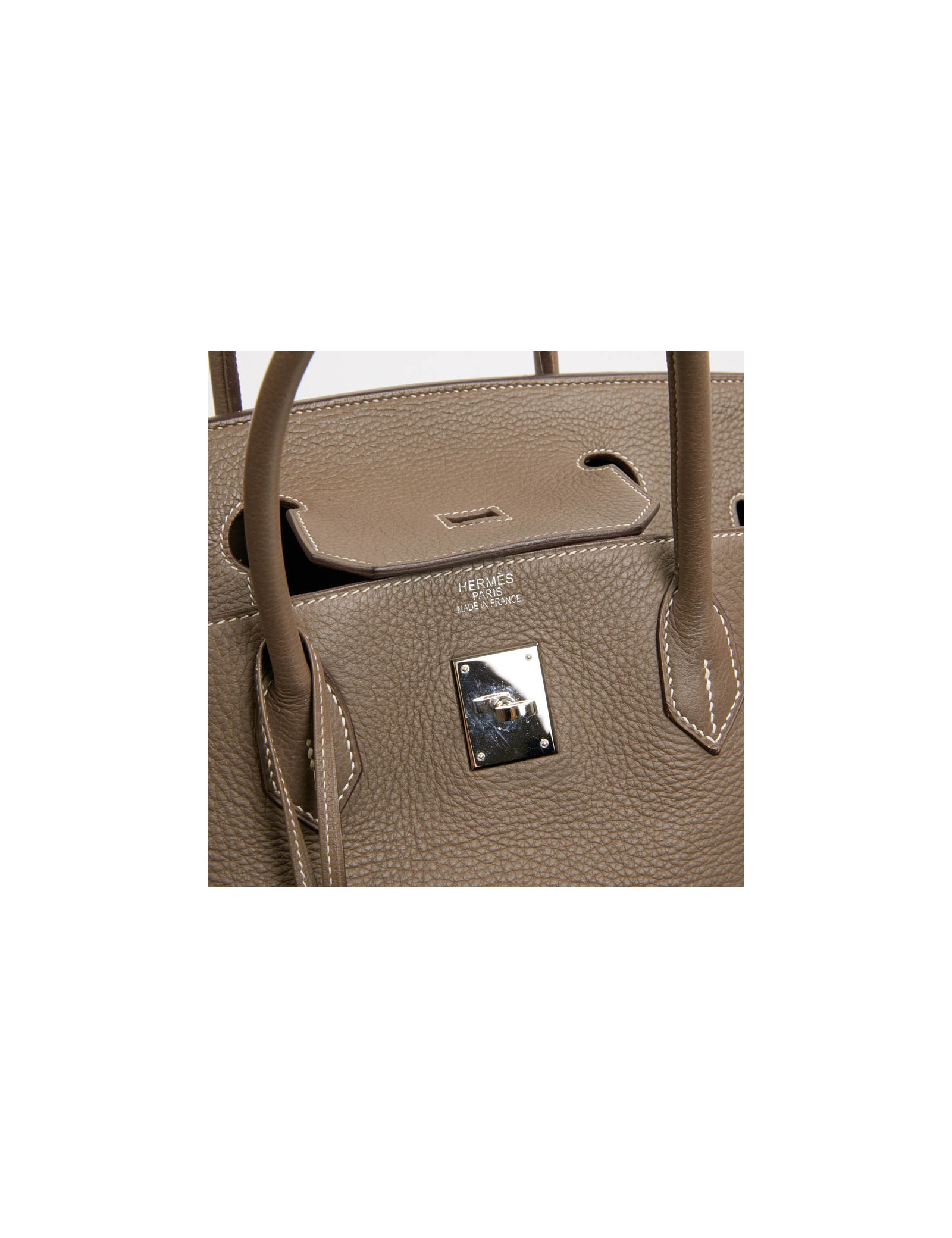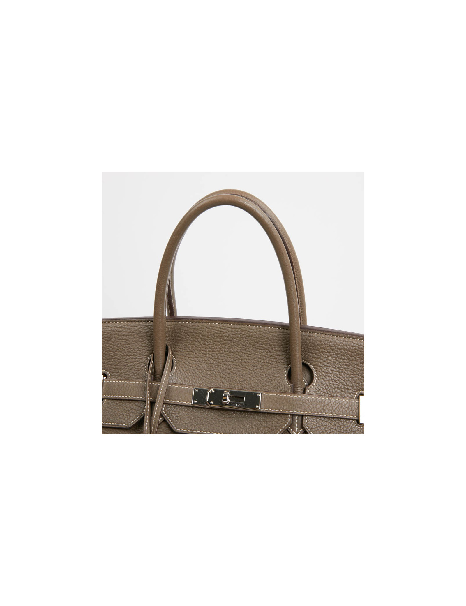 -2,000.00 € Last items in stock HERMES BIRKIN HERMES Birkin 35 linen grey Togo leather HERMES 34934 16,900.00 € 18,900.00 € HERMES Birkin 35 linen grey grained Togo leather Condition : very goodMade in FranceModel : BirkinSize : 35Material : Togo leatherLining : leatherColor : linen greyMeasurements : 35 x 28 x 18 cmLetter : 0Year : 2011Hardware : palladium metal (micro-scratches)Details : Pull-tab, bell, padlock and keys (x2). Corners are a little worn (barely visible). Can... Add to cart