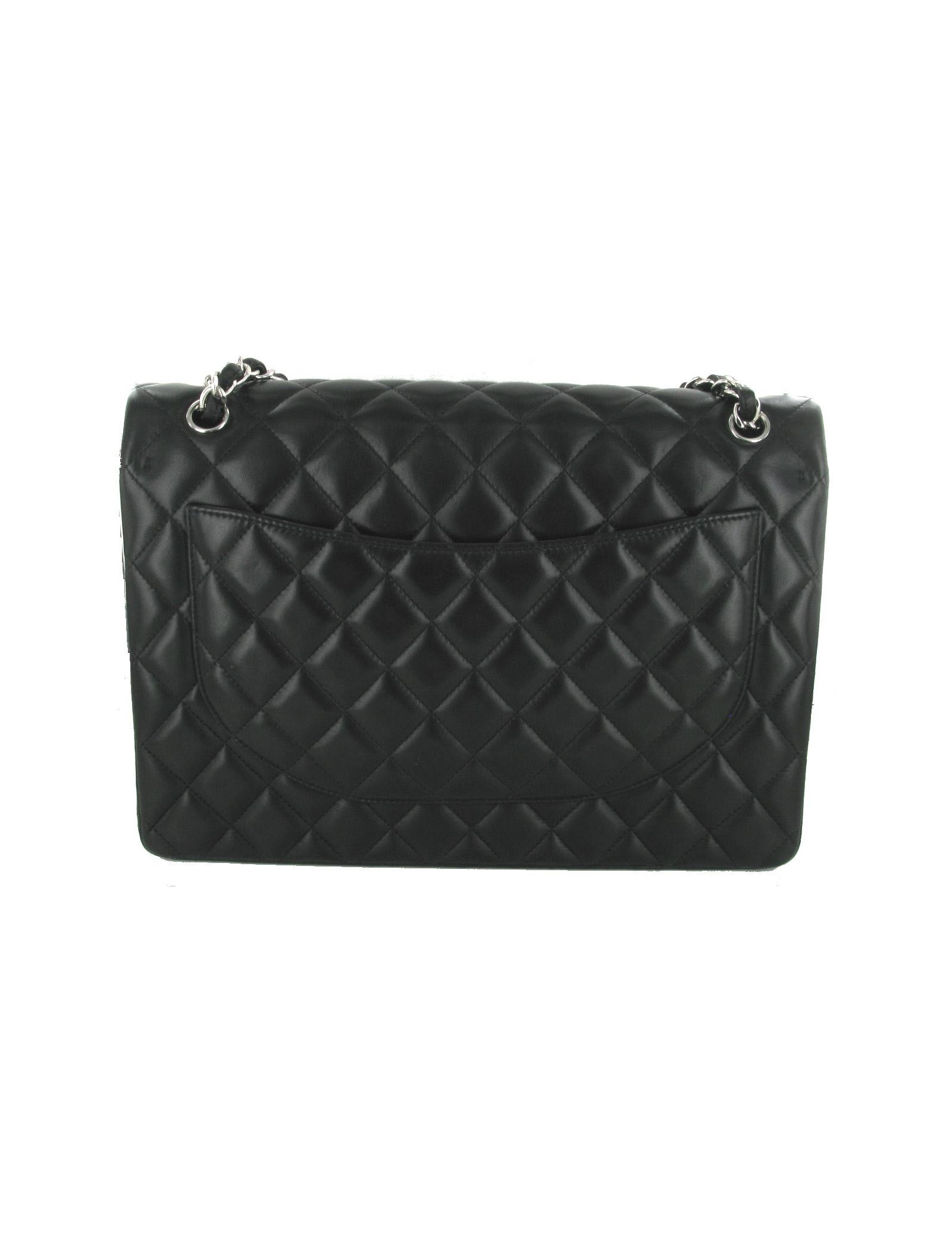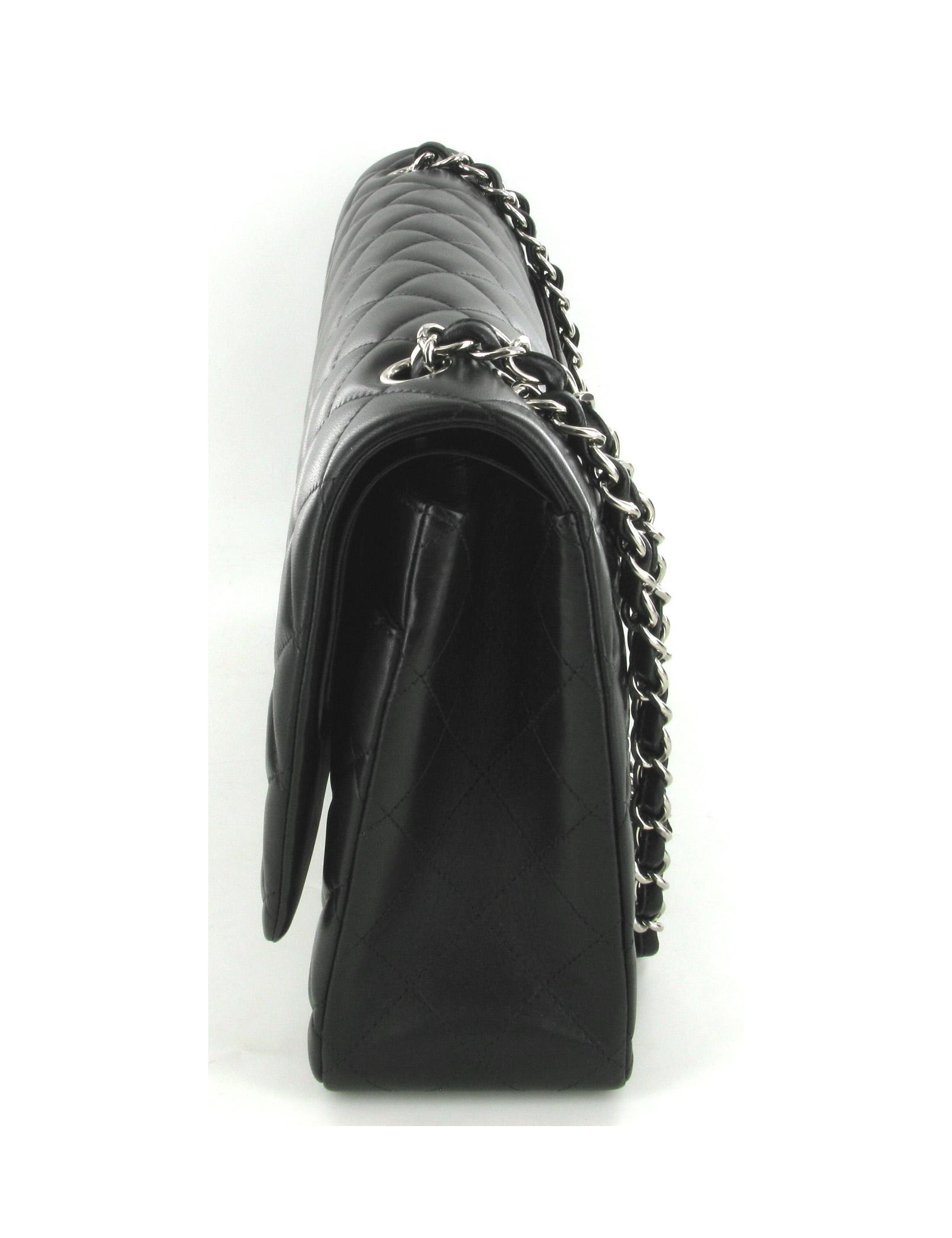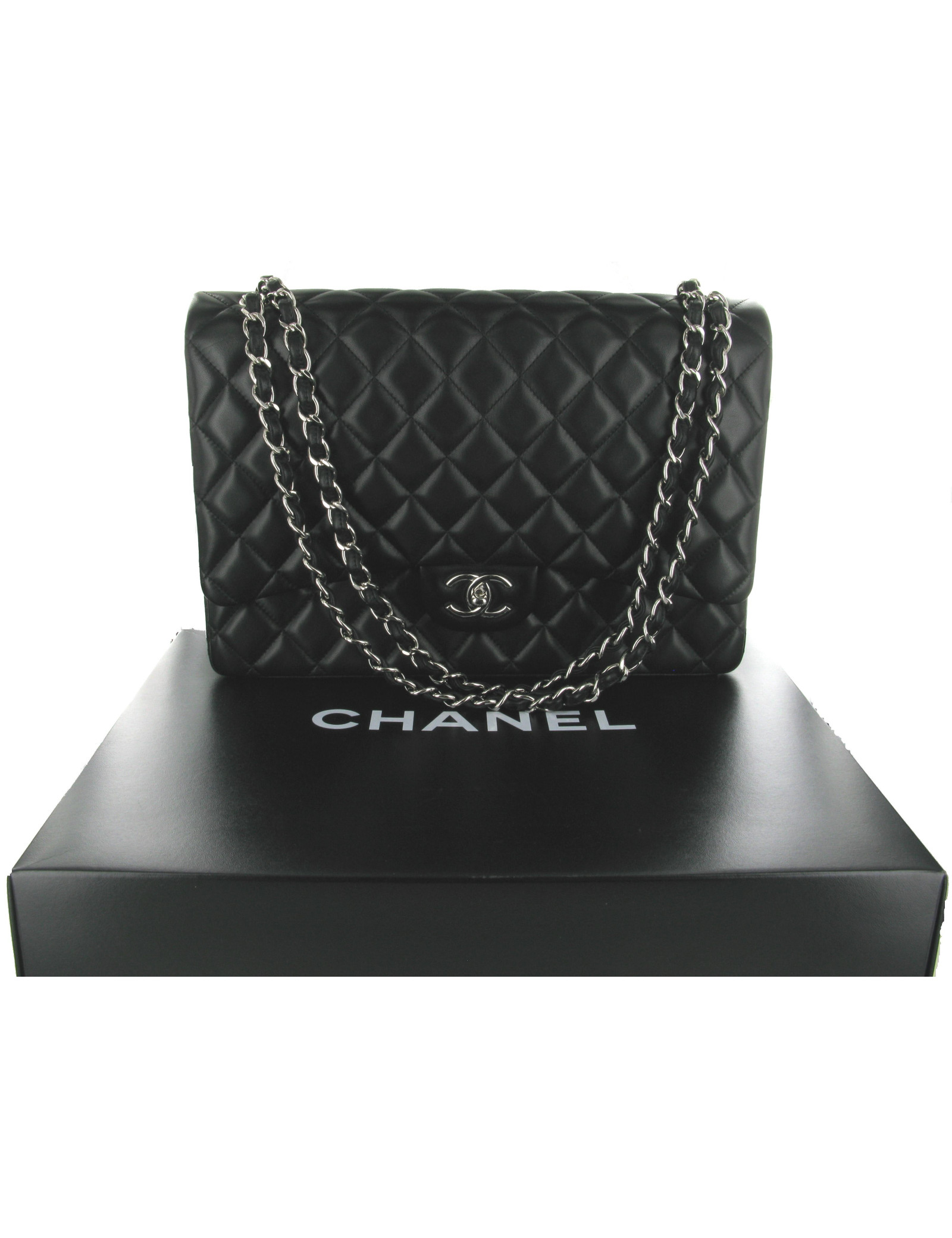 Bag CHANEL Maxi Jumbo black quilted smooth lambskin leather. Chain, acronym CC and silver metal details. Brand new, never worn, this bag is still in its original packaging. Comes with the original box and the Karl Lagerfeld signed dustbag. This classic is a timeless piece and mode.