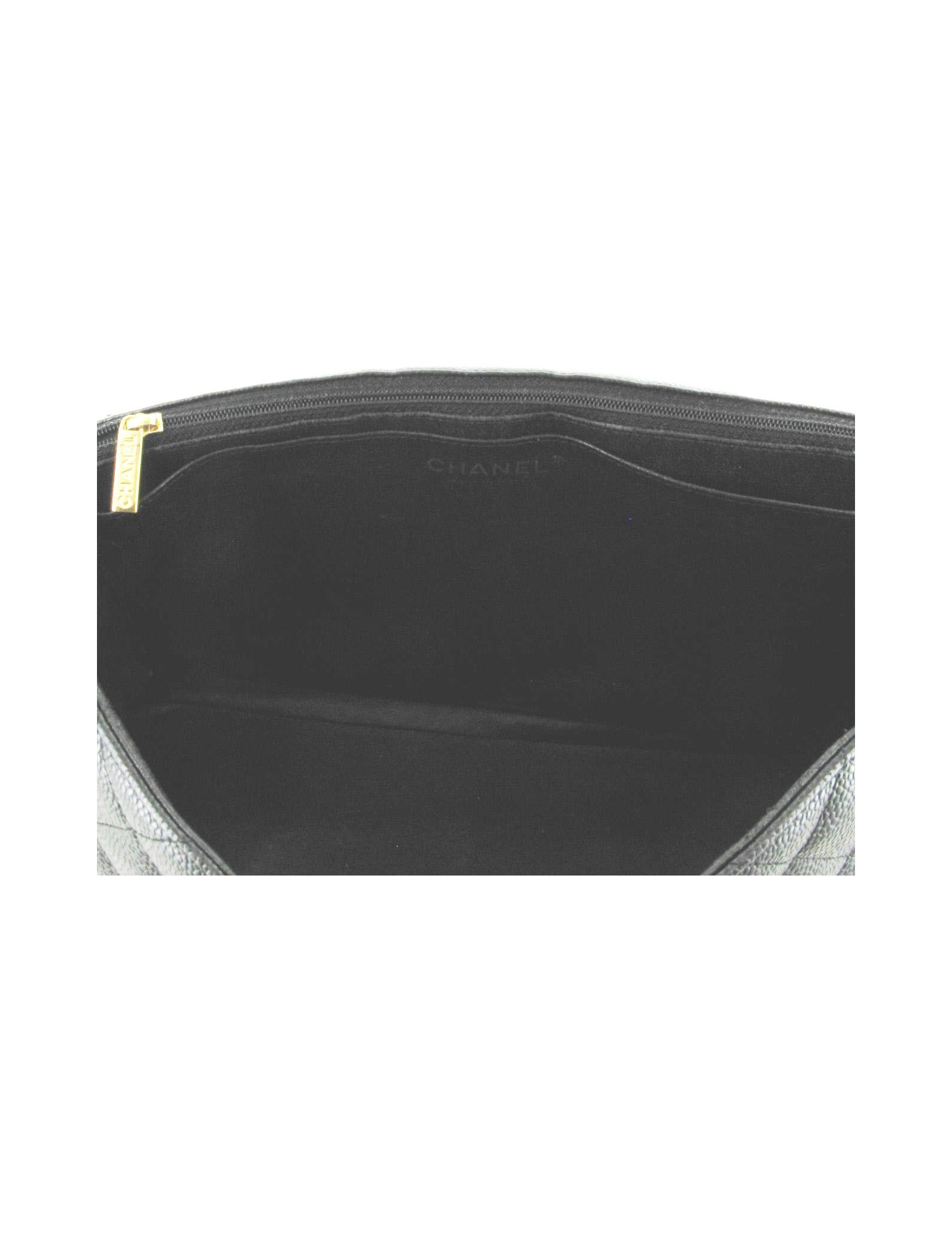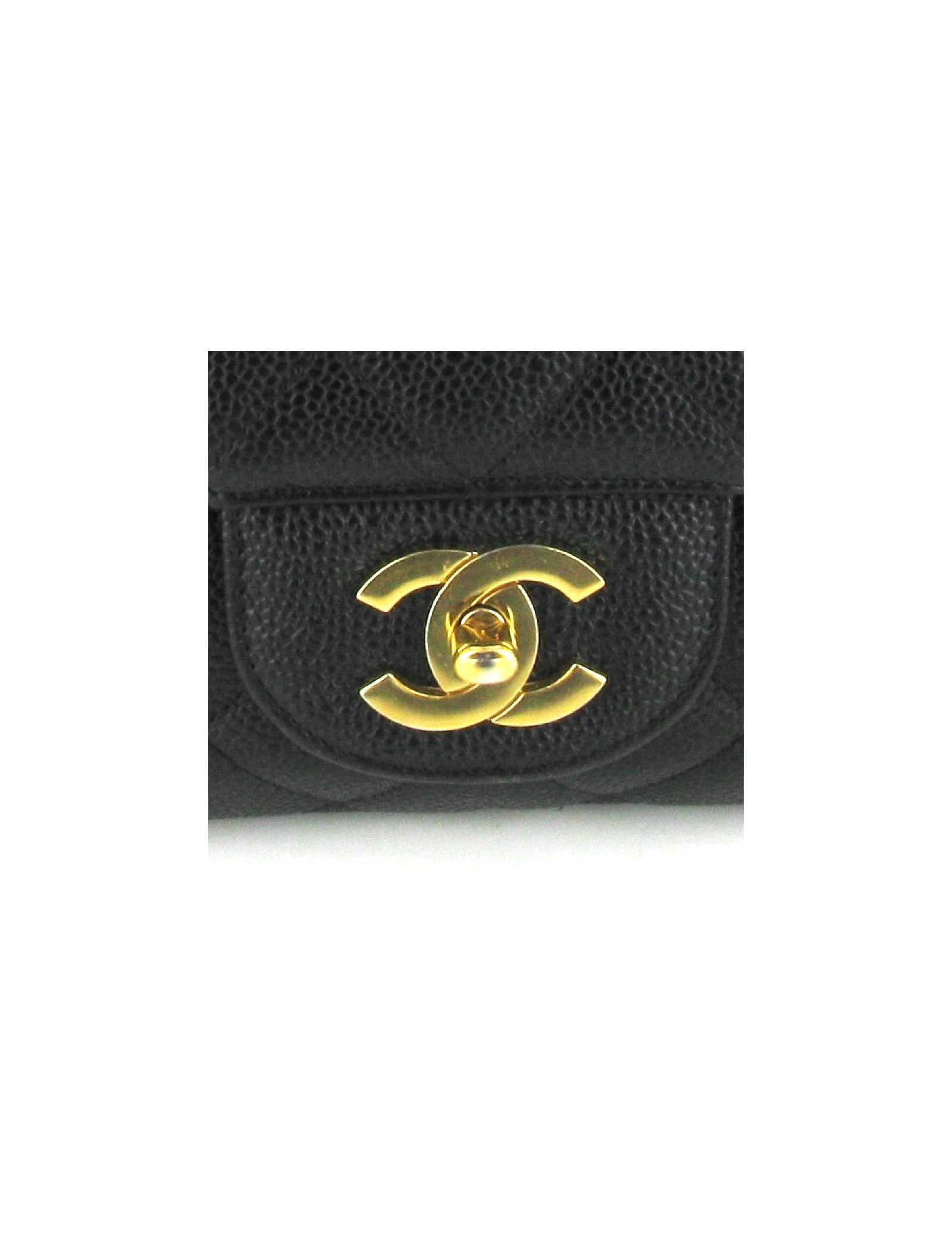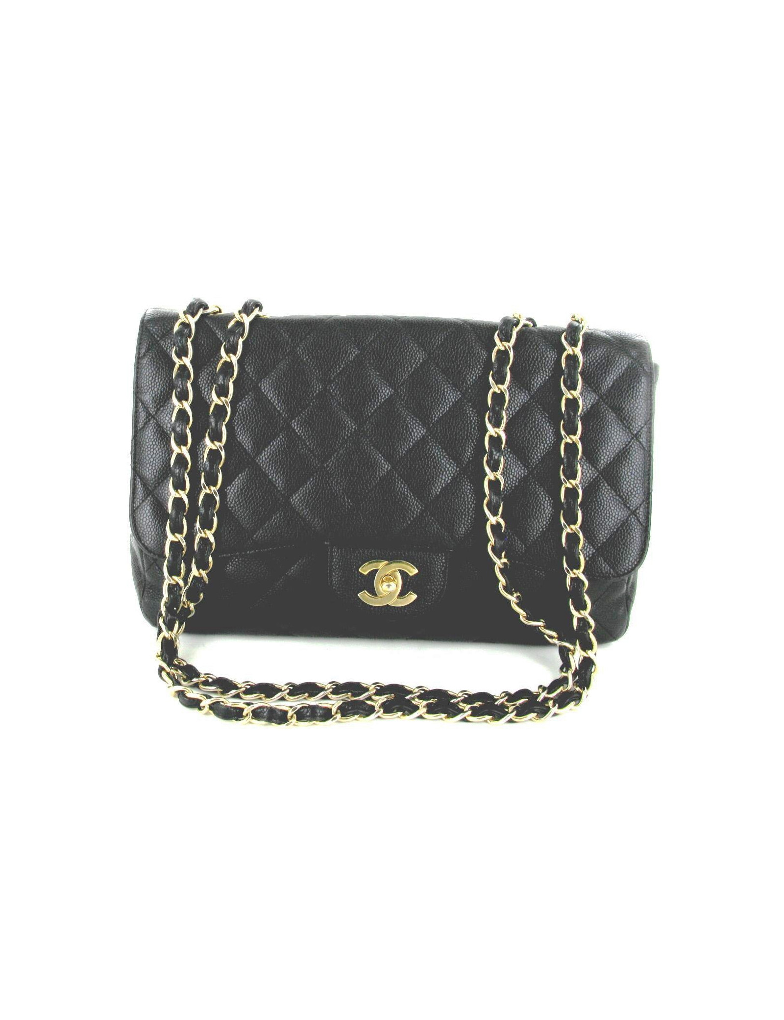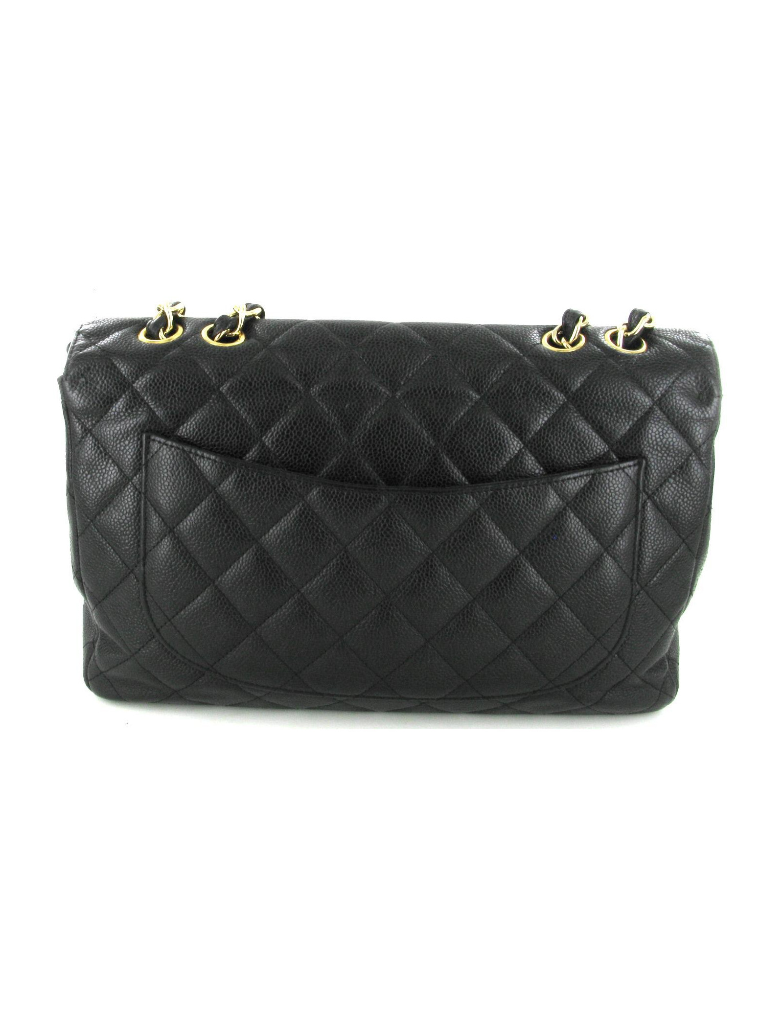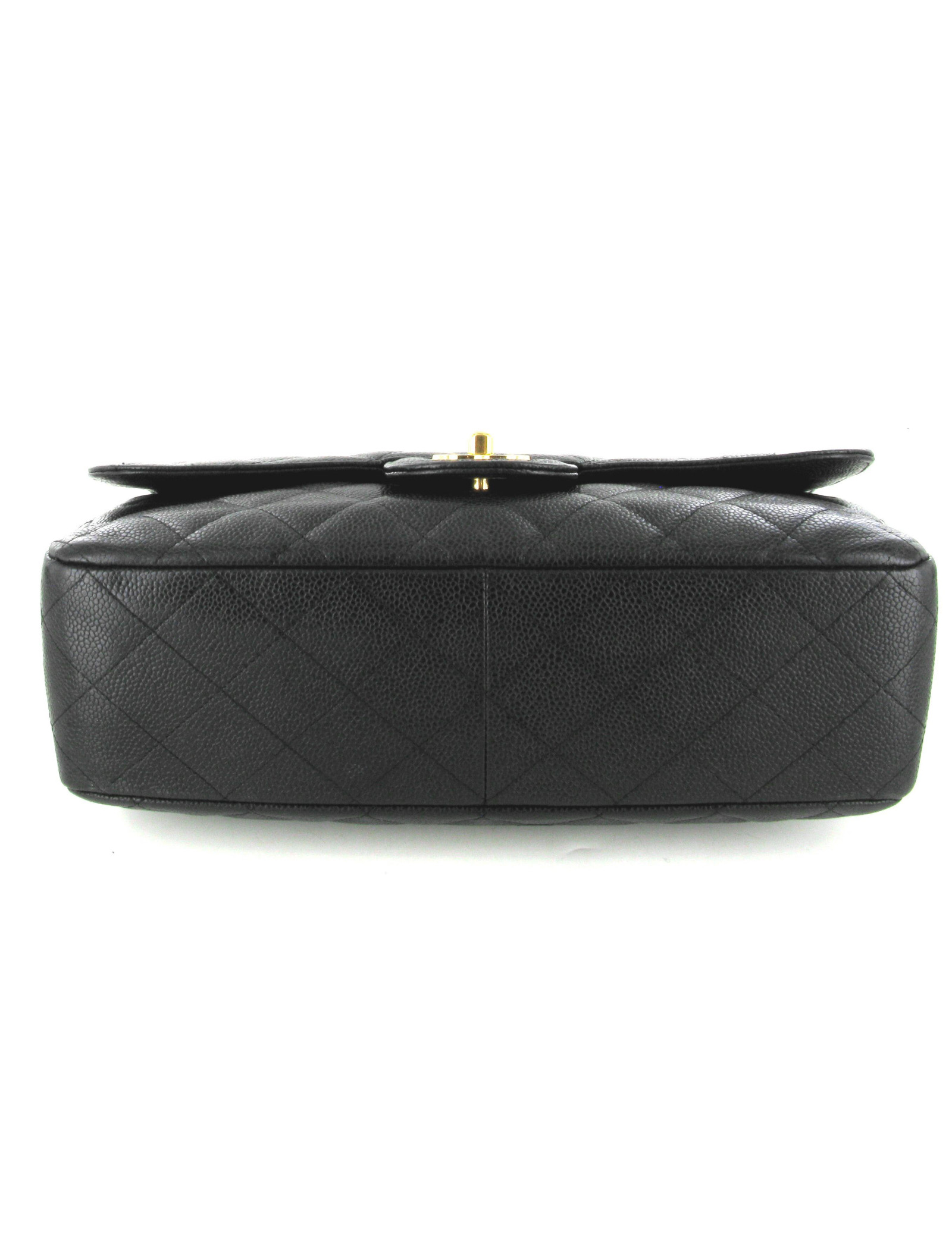 Timeless CHANEL Jumbo leather black caviar and gold jewellery.