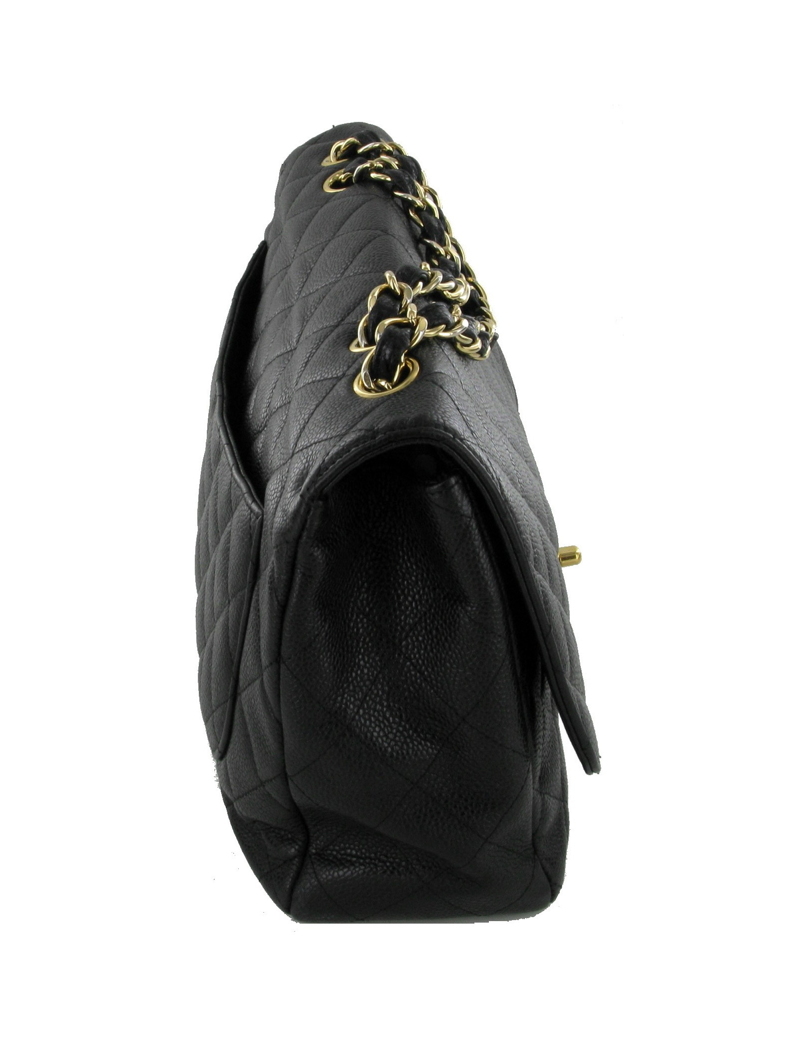 Timeless Jumbo CHANEL quilted black caviar leather and gold jewellery