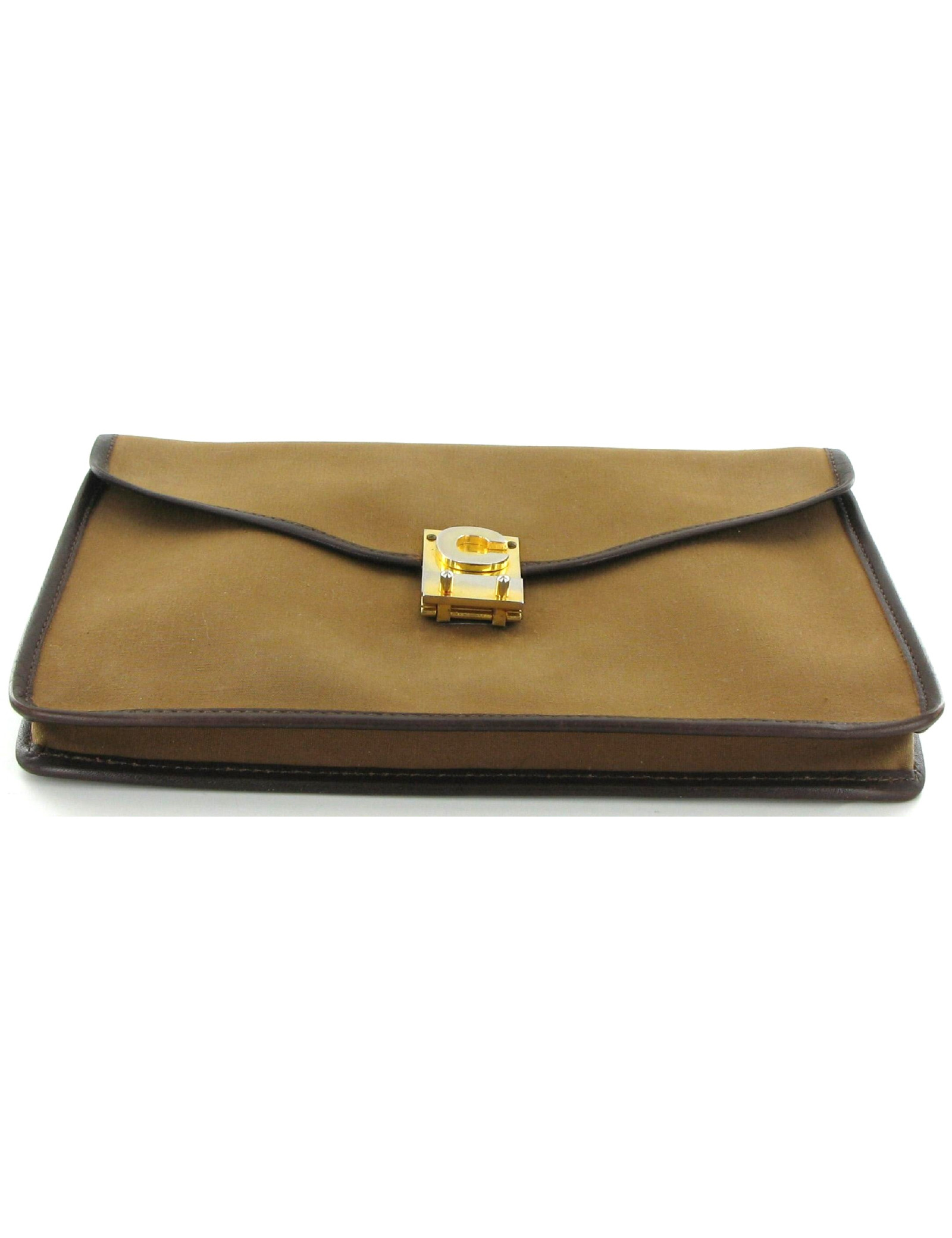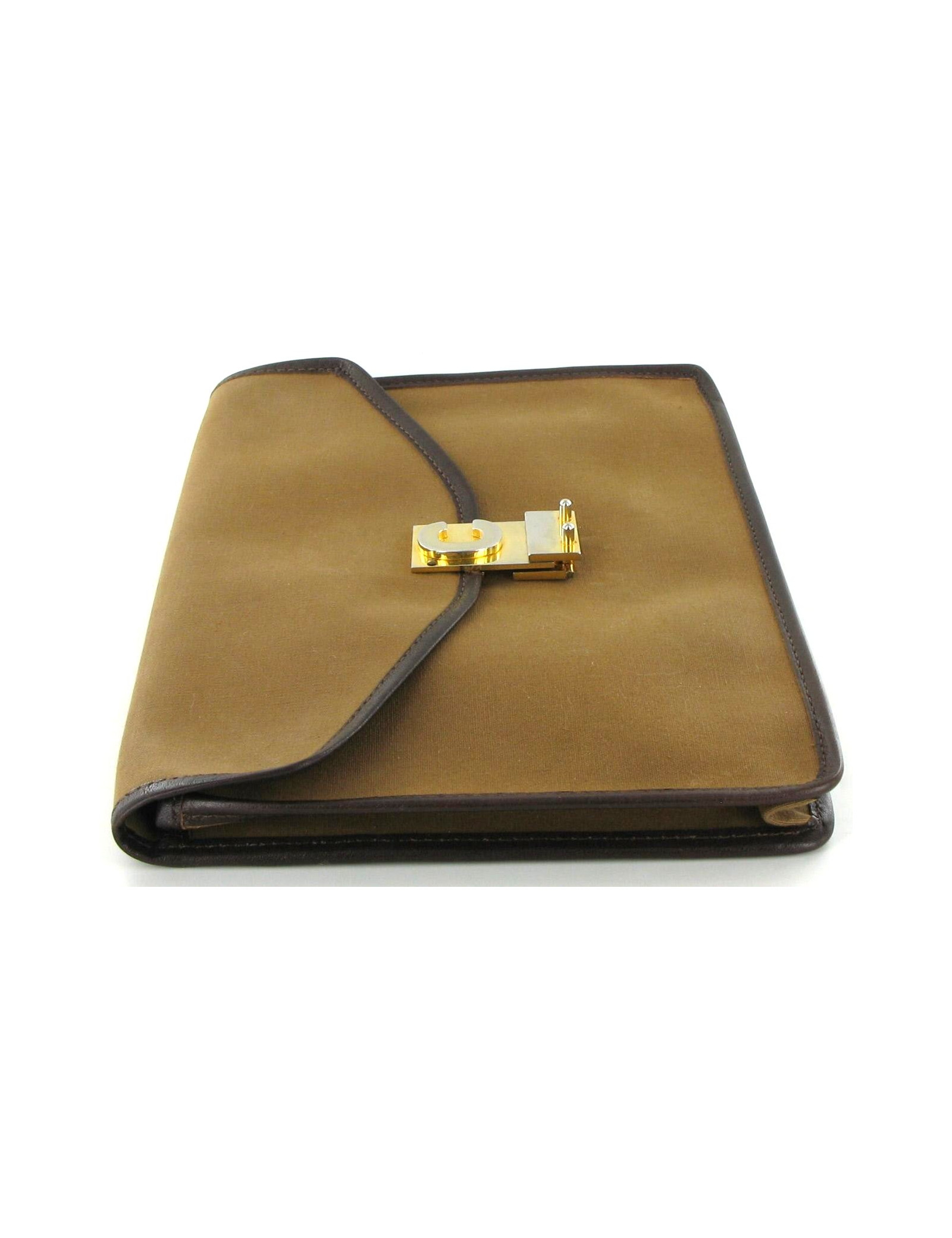 CELINE Brown mustard canvas vintage wallet. This sublime piece vintage of the Céline Couture House is in very good condition. Its pretty dark brown leather edging brings refinement and elegance to this very functional package. (A little past time) Golden metal buckle has a signature C embossed. Inside, a flat zipped pocket. Made in France. 'CELINE Paris' signature inside.