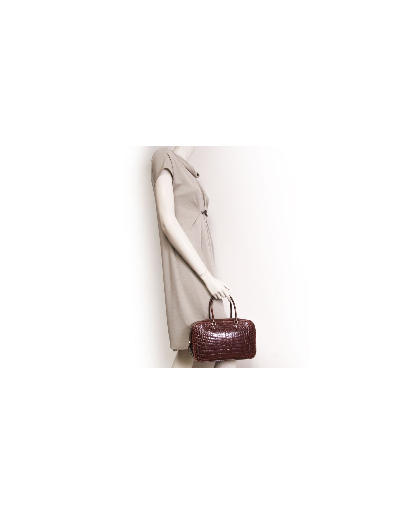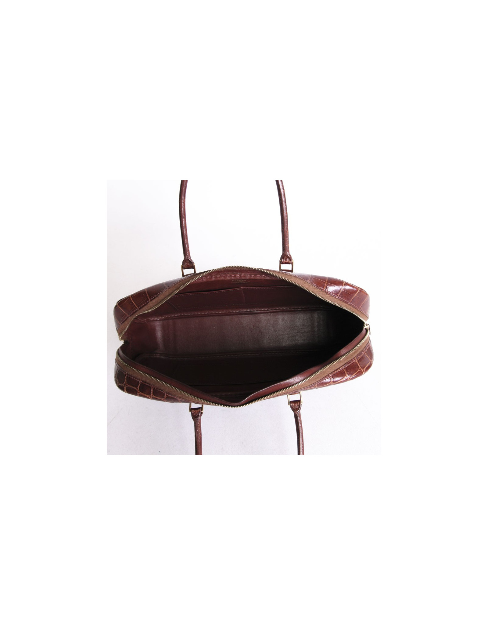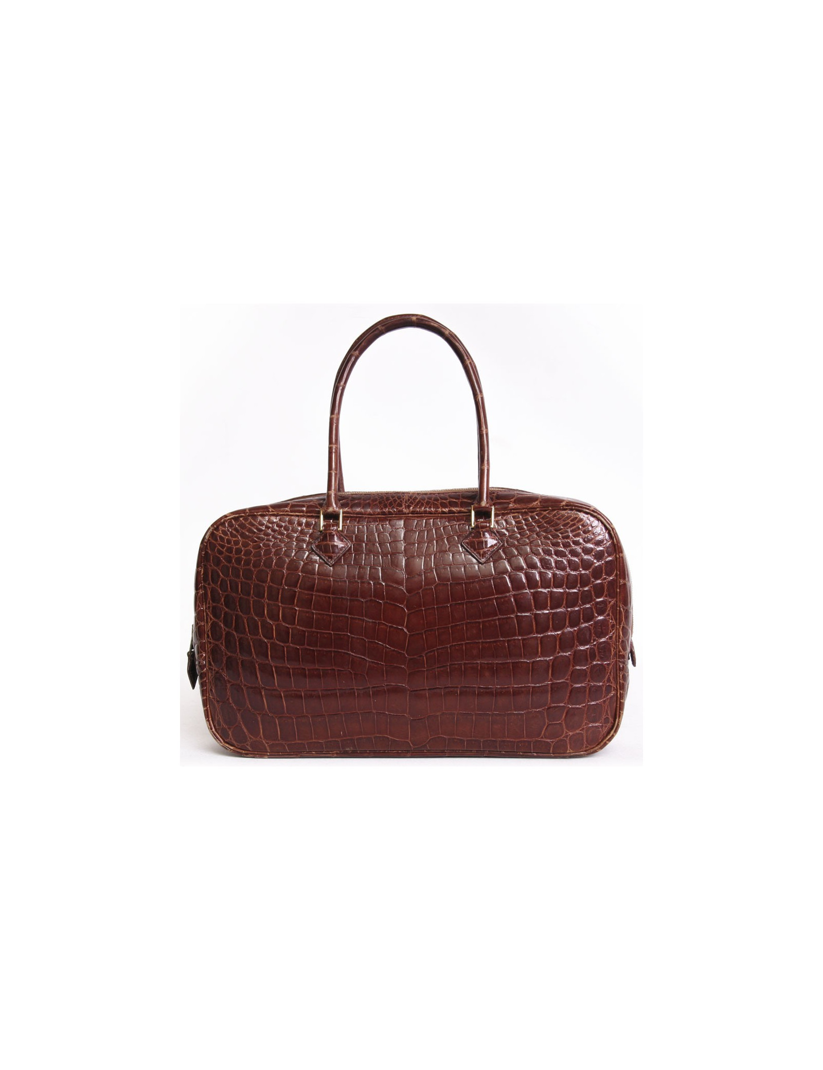Bag Hermes, model feather, small model, vintage, crocodile porosus brick color leather. Extremely rare model. The jewelry is gold metal. A few marks and wear on the bag. Zipper gold metal. Inside, the bag has a large flat pocket and two flat pockets. Made in France. Comes from the balances.