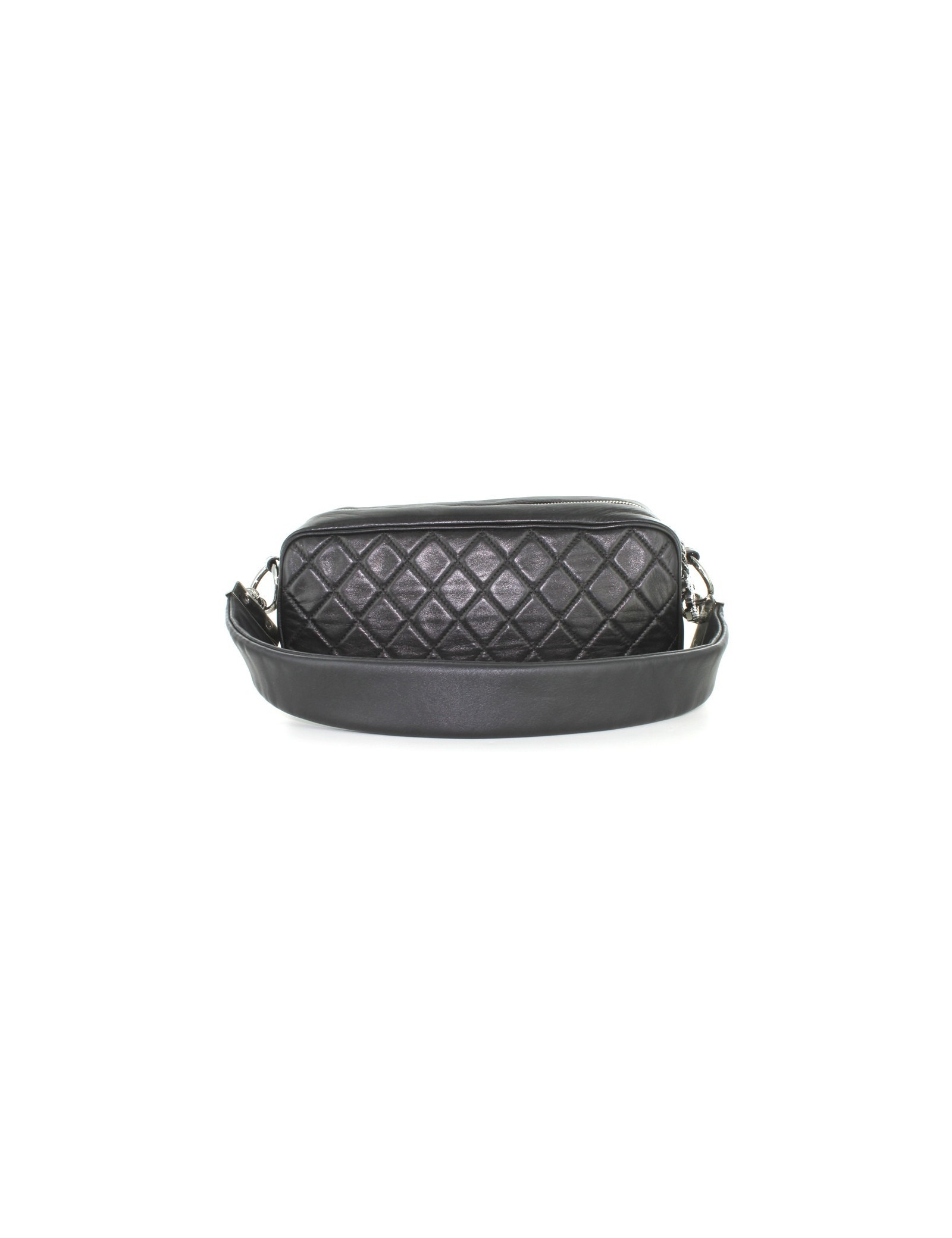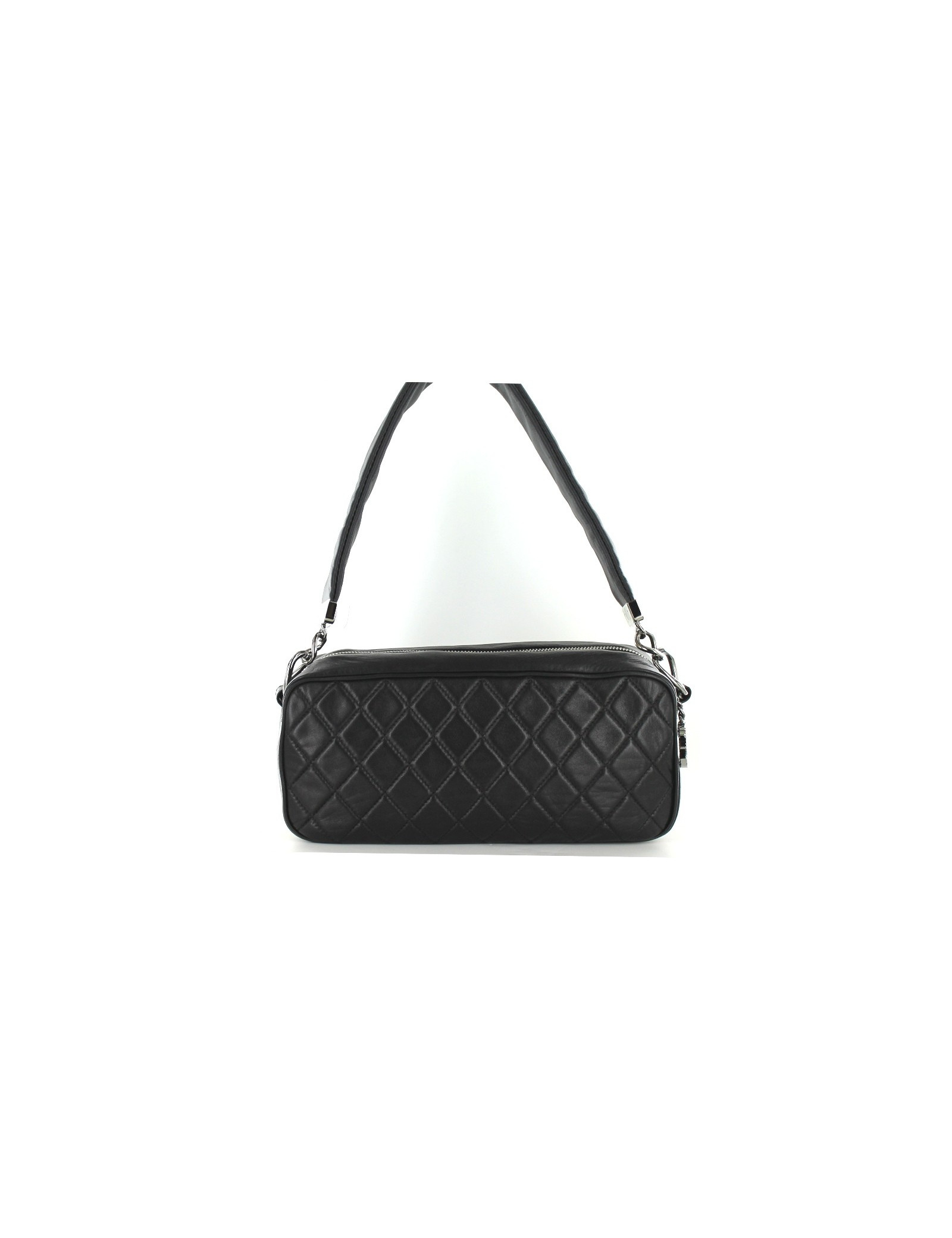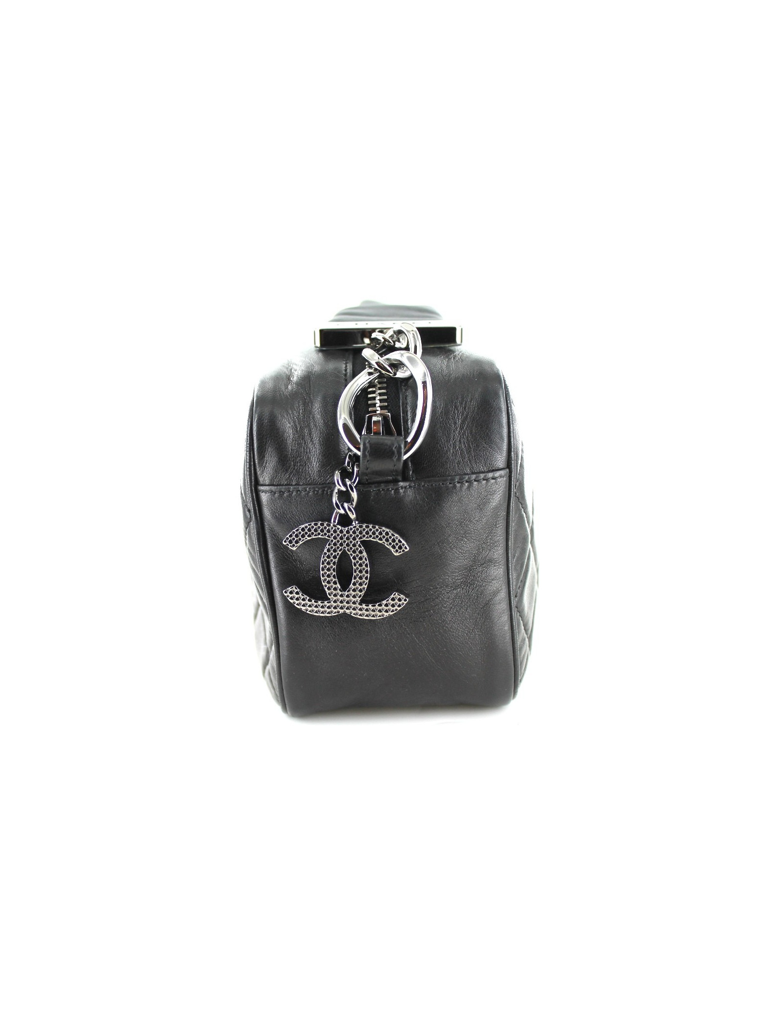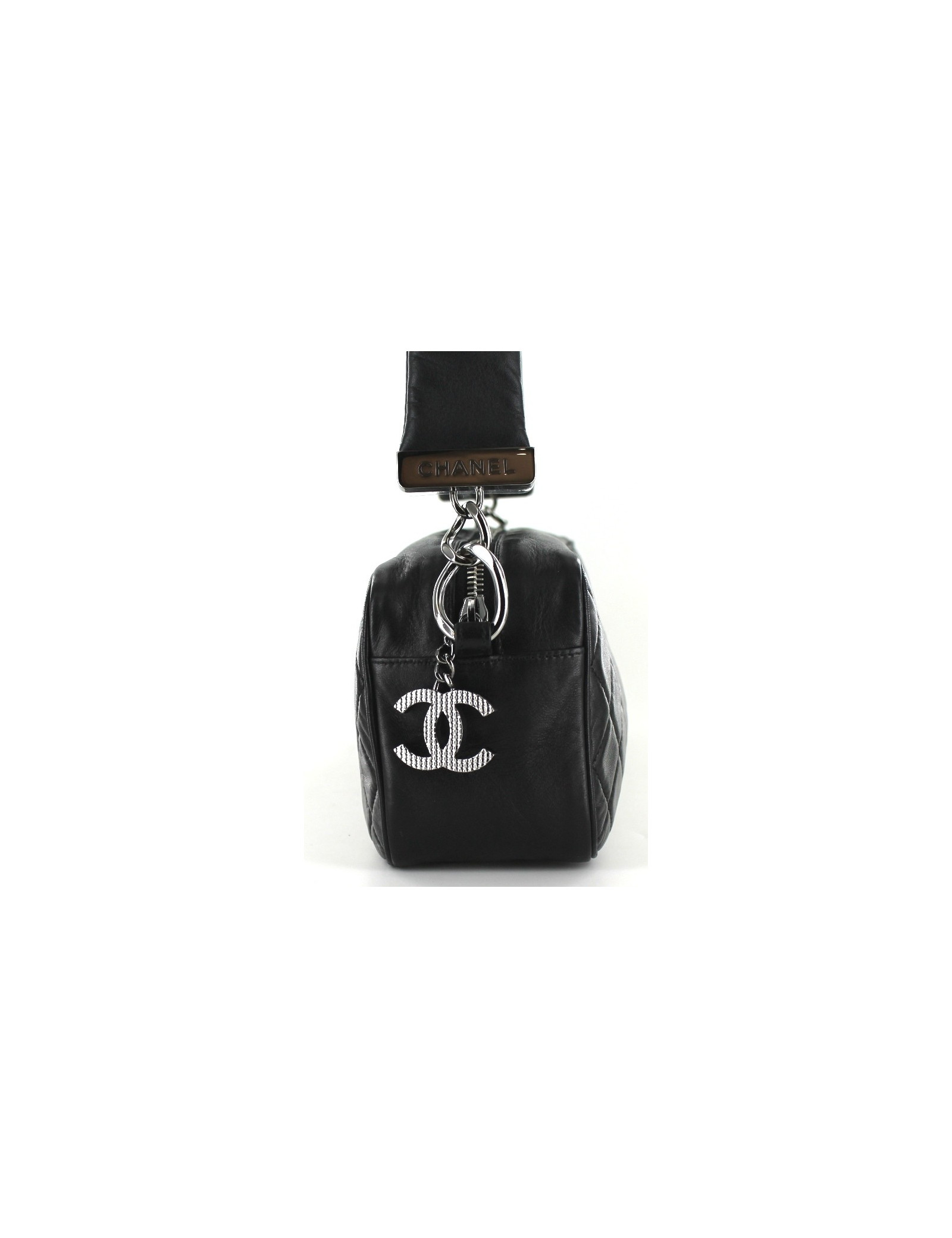Bag CHANEL quilted lambskin leather black and accessories black silver metal. Very nice links Bangle on each side of the handles. Pendant of zipper form CC. Sold with its original dustbag. Inside, the bag has a large flat pocket. Silk inner lining grey. Hologram 12... Made in Italy.