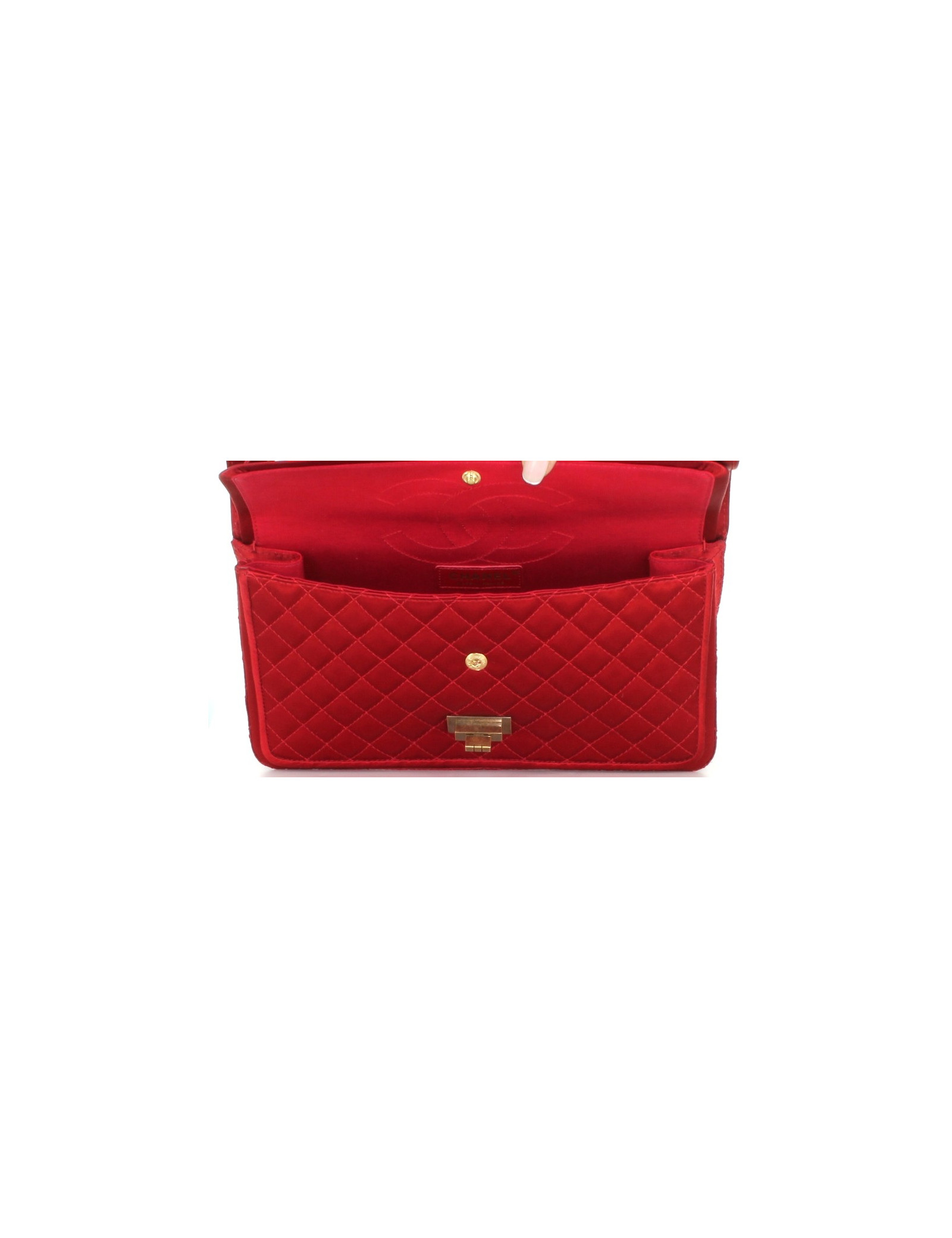 Bag CHANEL 2.55 quilted Red satin and chain bronze