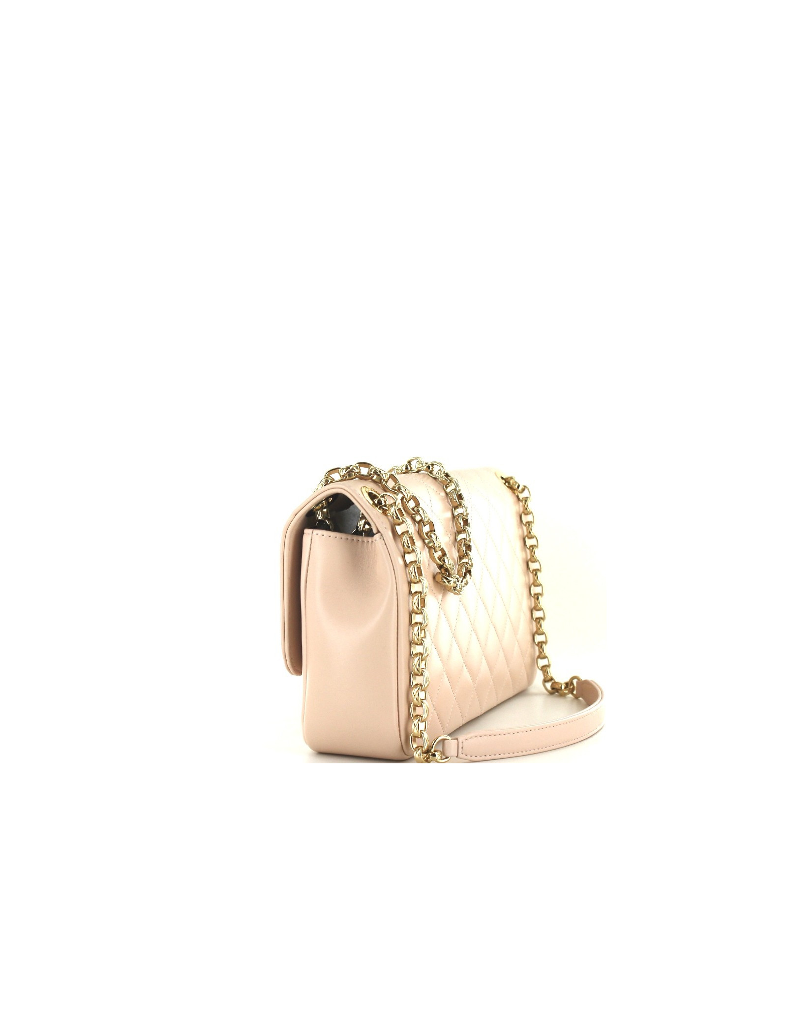 Bag CHANEL quilted lambskin pink powder and retro clasp CHANEL gold metal. Never worn, this new bag is sold with its dustbag of origin as well as the plastic protection on the eyelets of the Cove. Inside the bag has a large flat pocket and one large zippered pocket. Signed gold metal eyelets "CHANEL 31 RUE CAMBON PARIS". Golden metal accompanied by a strip of leather for comfort shoulder chain. Bordeaux lamb leather lining. Hologram 18... year 2013 and authenticity card. Made in France.