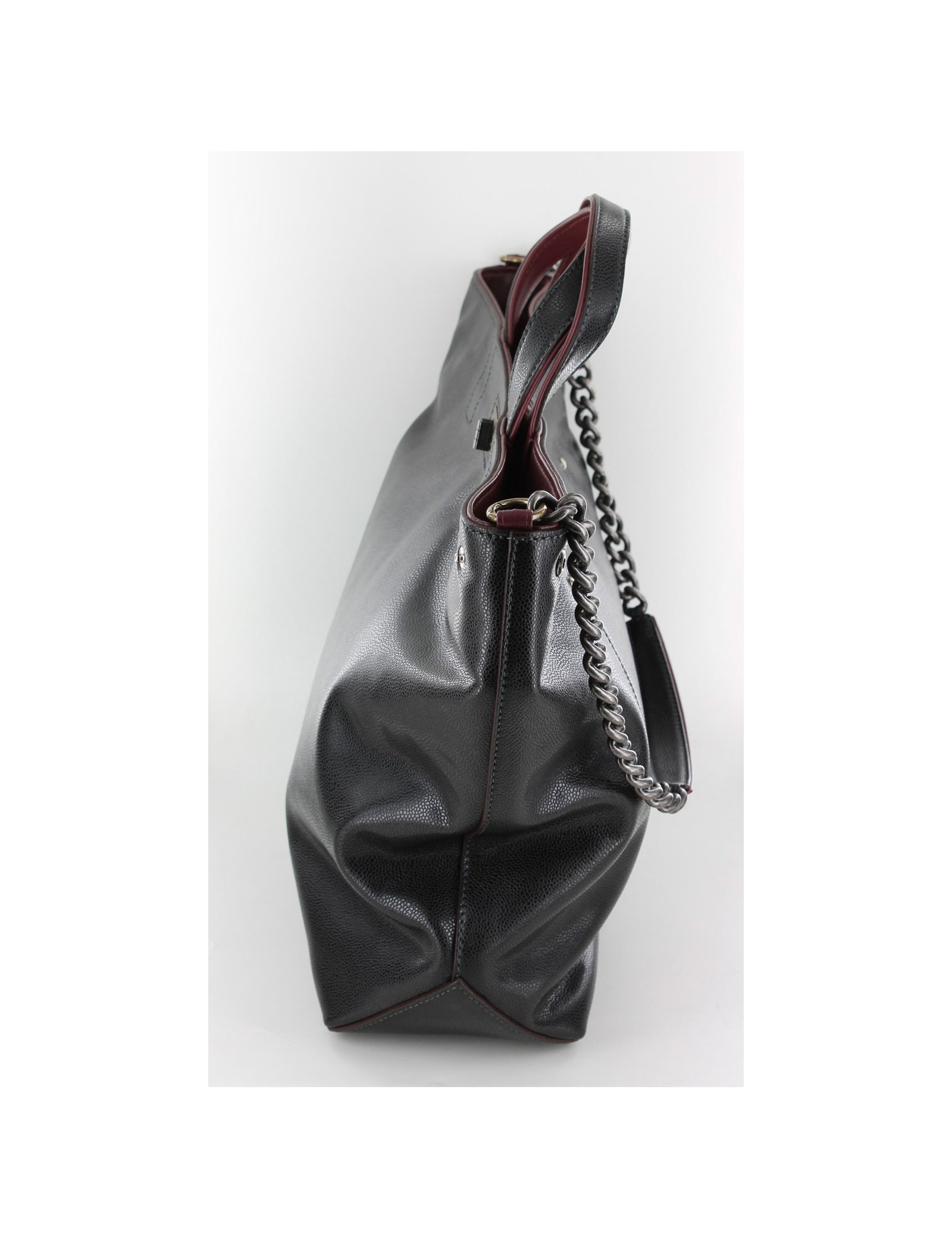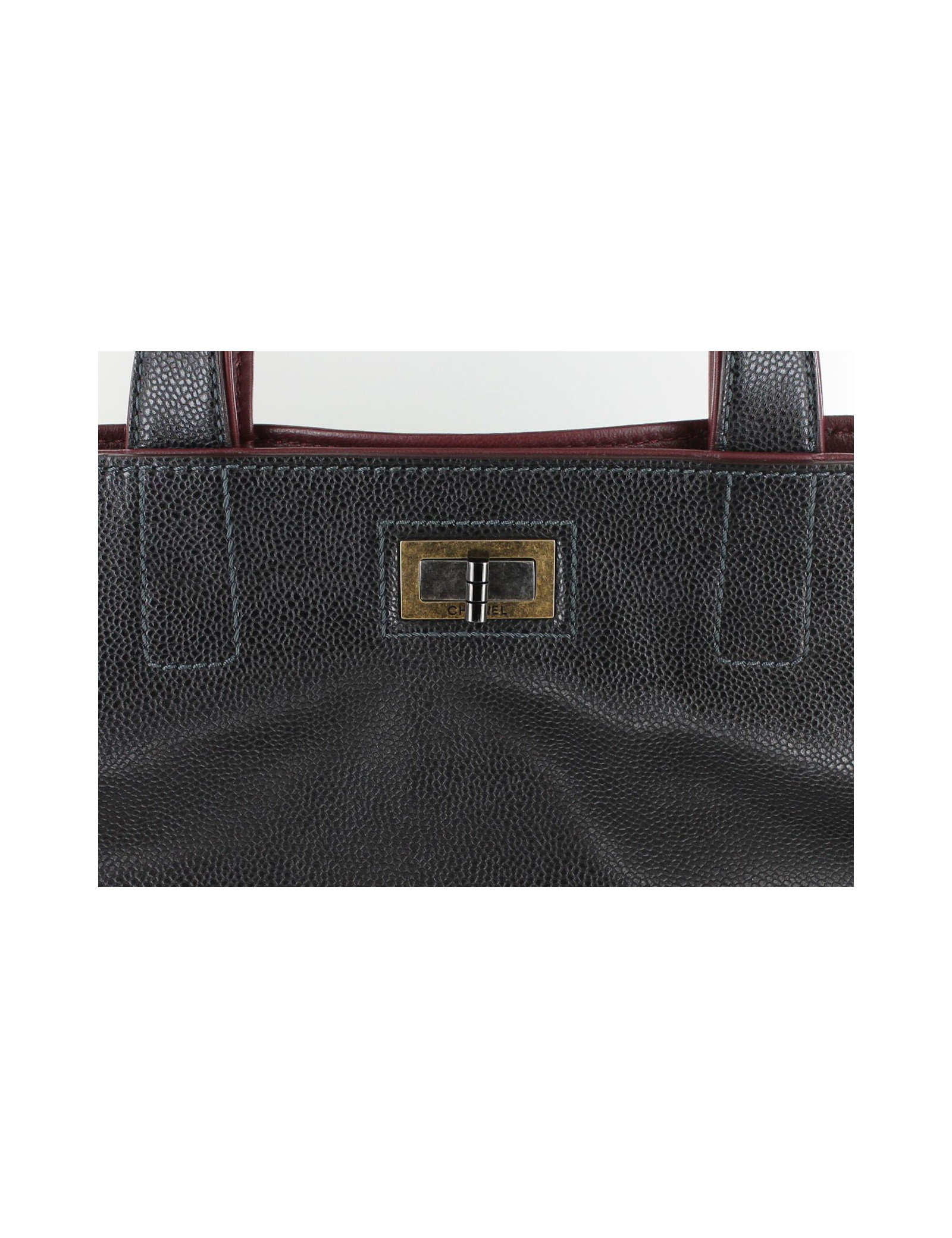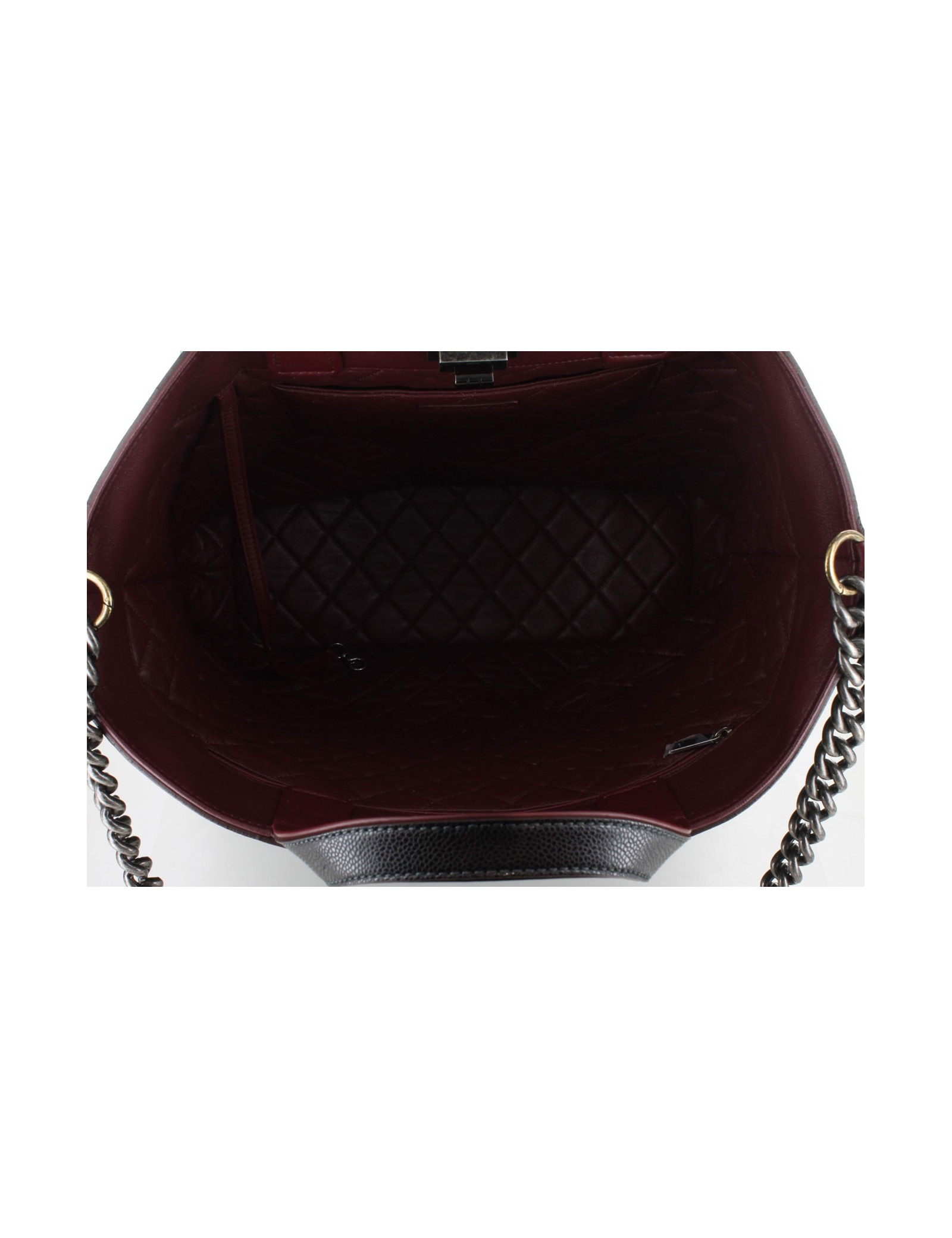 Tote Leather black caviar Chanel 2 55 silver and Golden clasp aged, Burgundy Interior. Inside the handles and the top of the bag is also bordeaux. Like new.