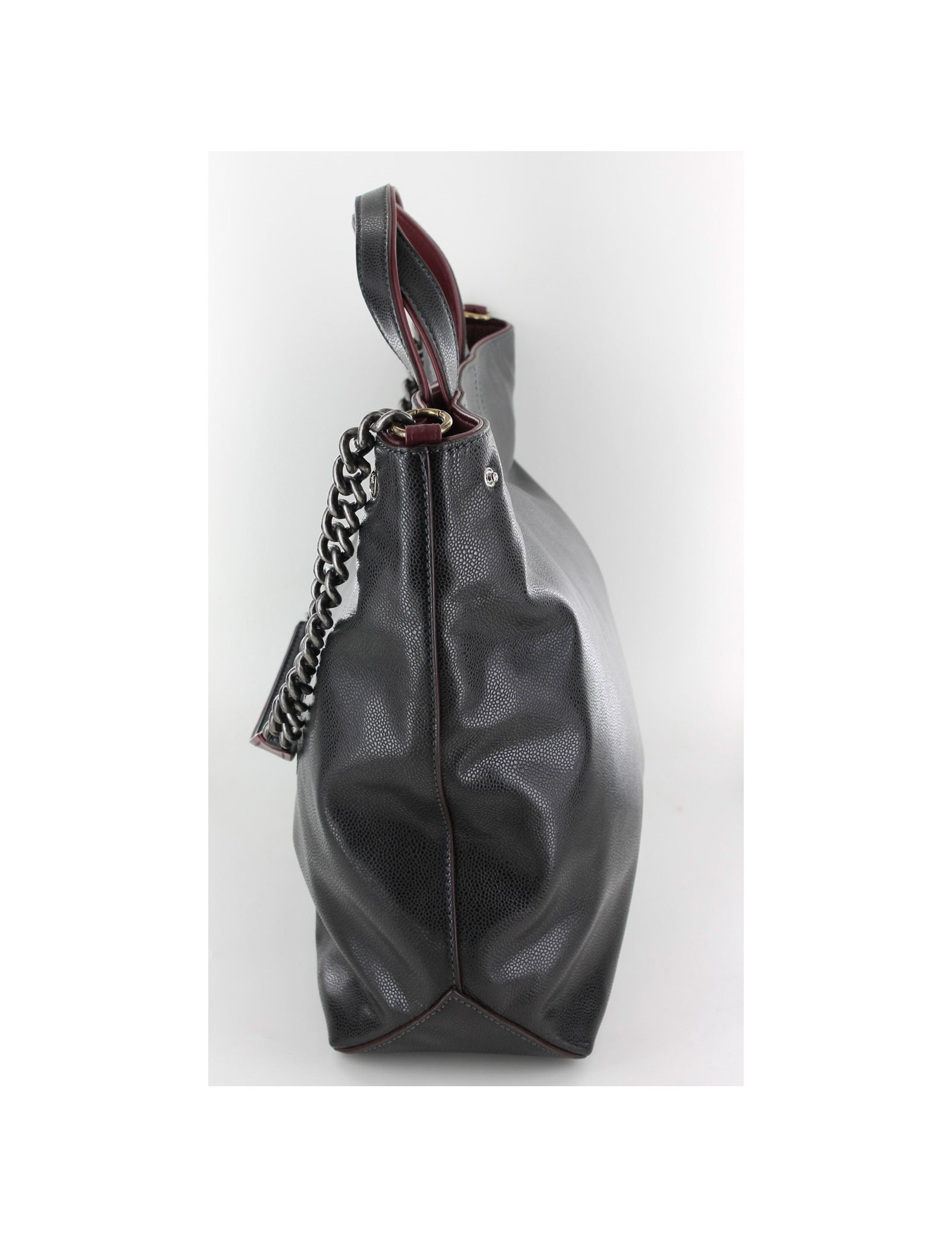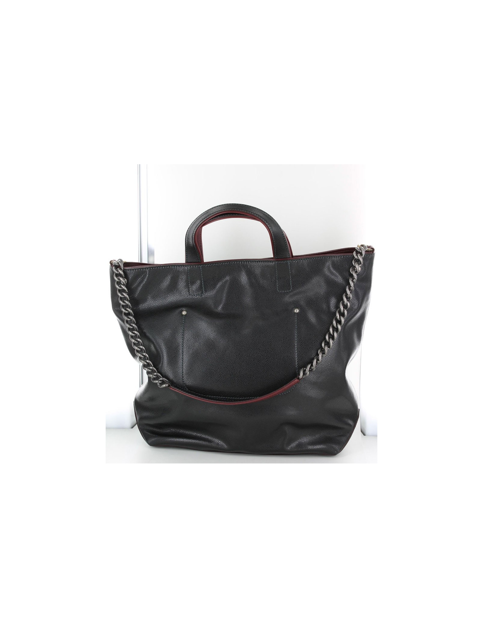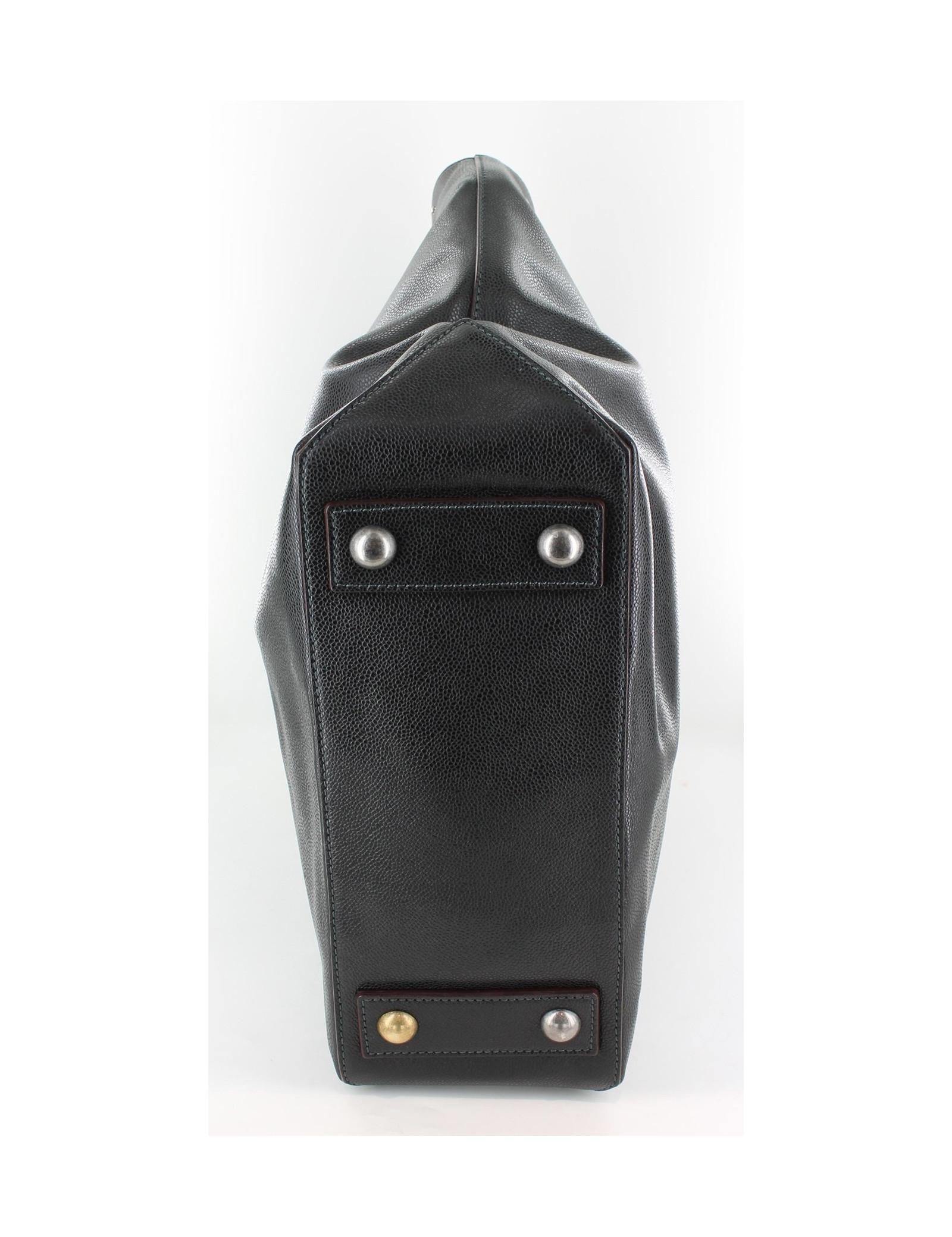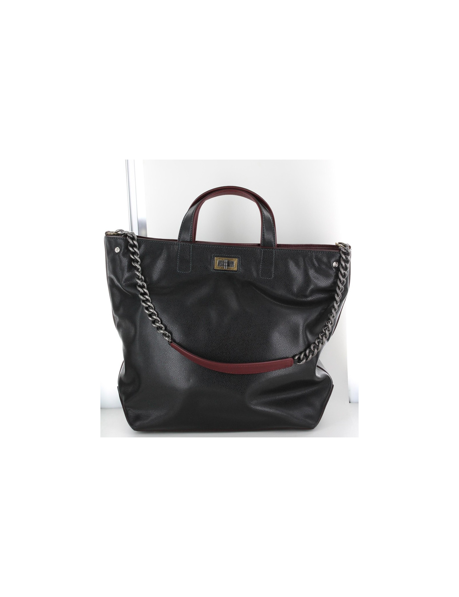 Tote Leather black caviar Chanel 2 55 silver and Golden clasp aged, Burgundy Interior. Inside the handles and the top of the bag is also bordeaux. Like new.