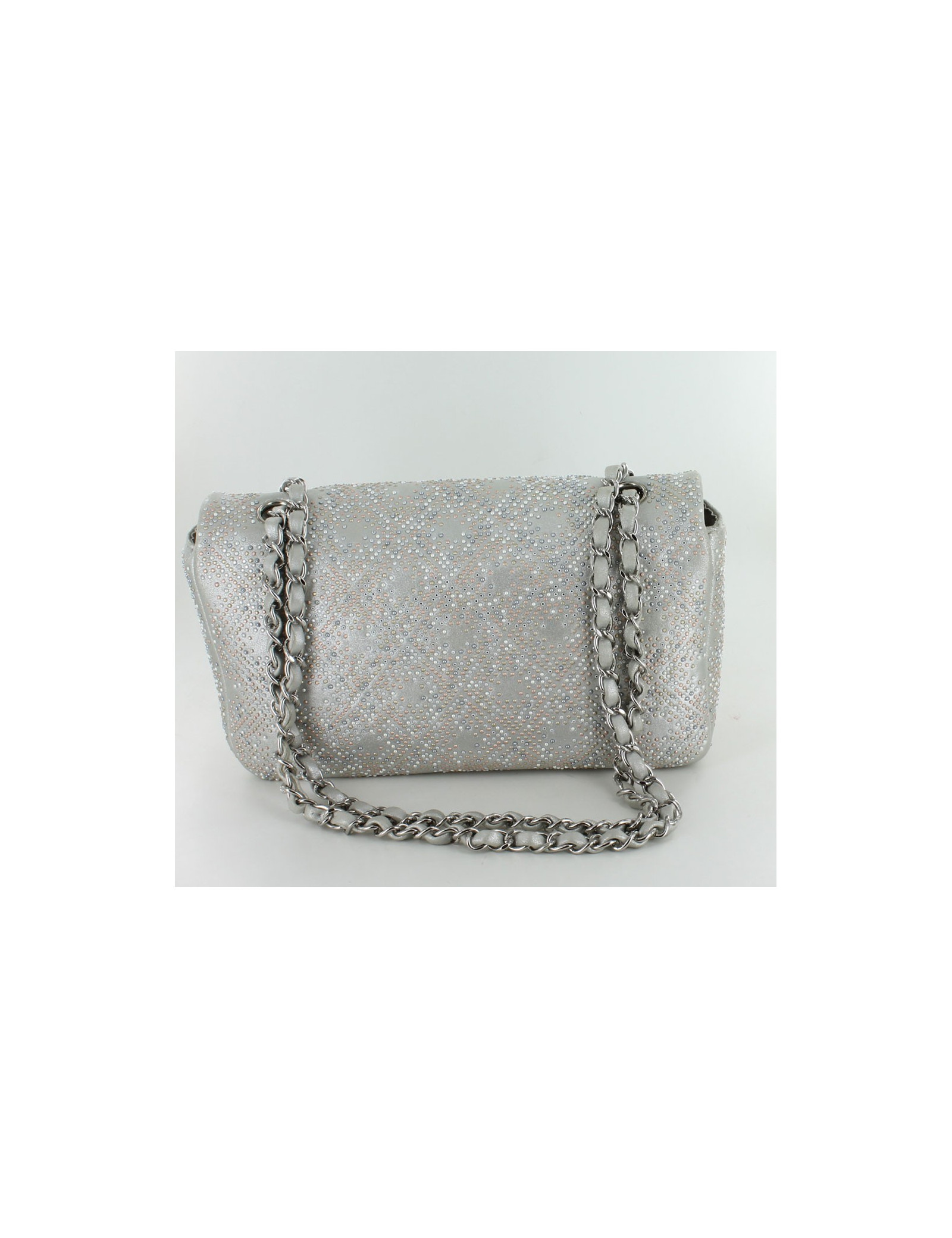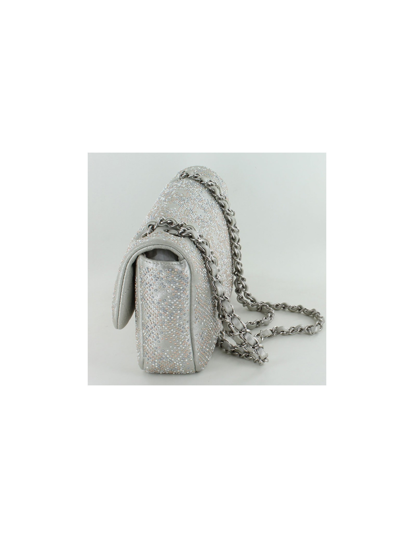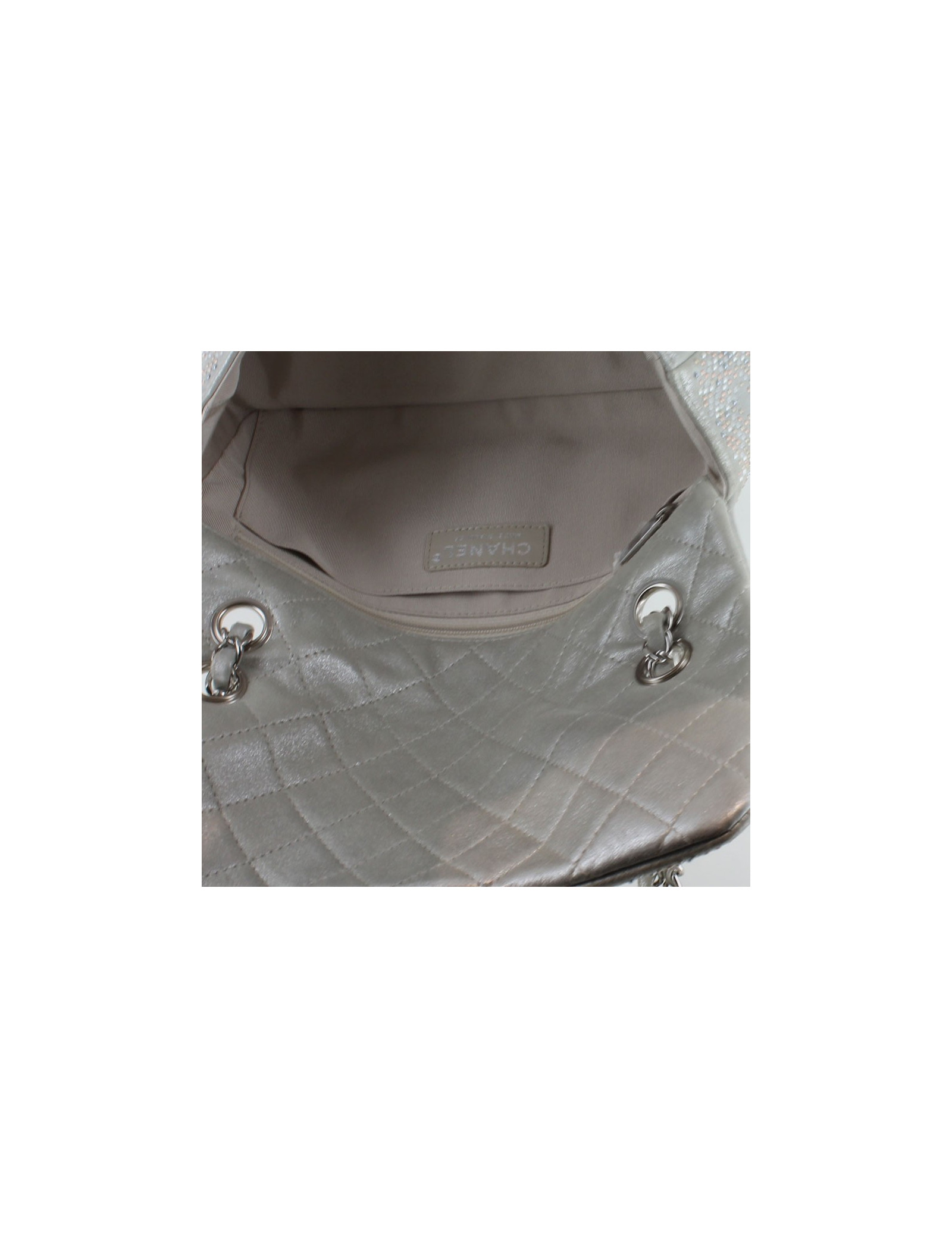 Very nice piece Chanel: bag Timeless lame grey smooth calfskin Pearl with tints. The beads are of different soft colours (grey, Pearl, pink), brackets are metal Palladium.