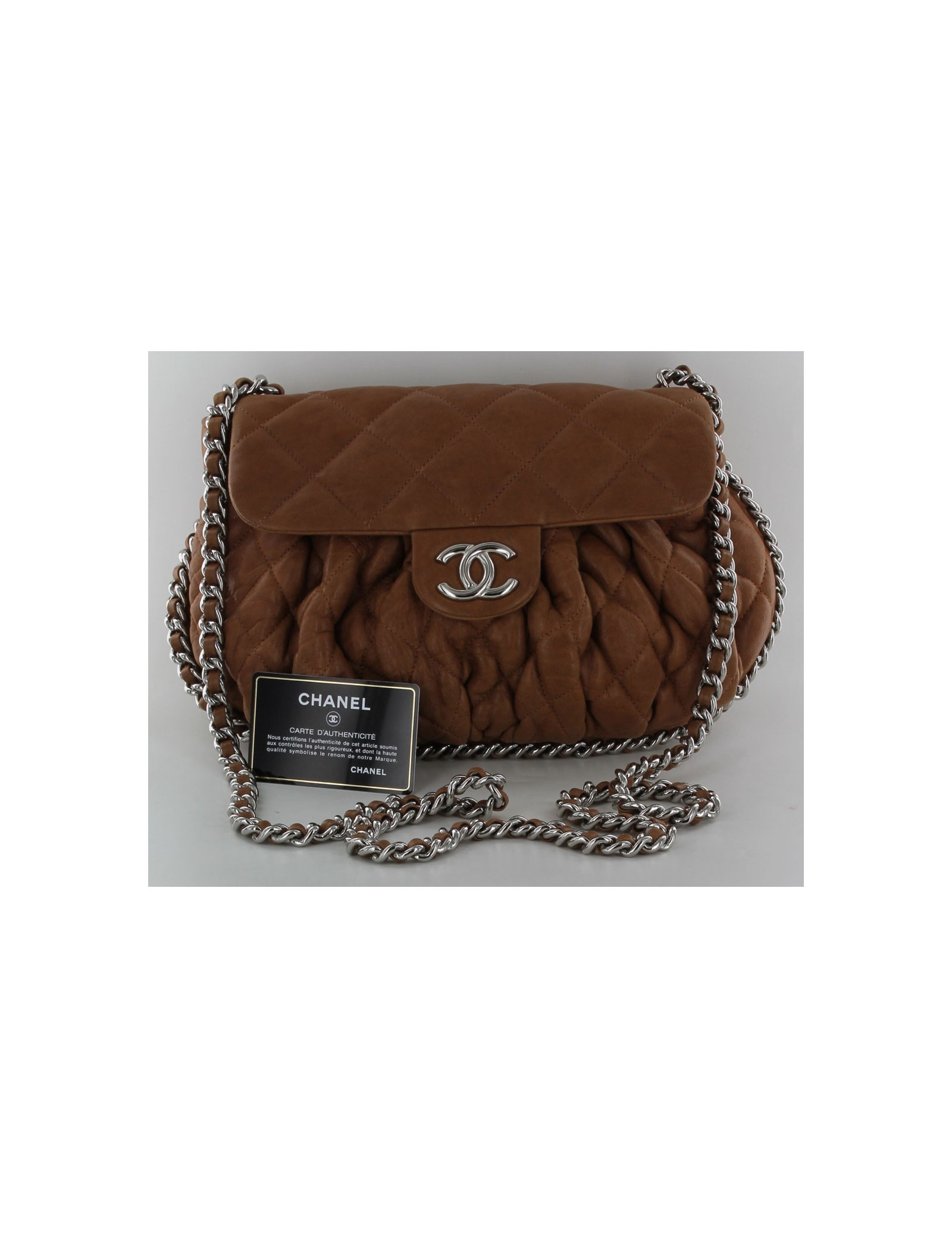Chanel bag in gold leather aged, very original chain and leather that surrounds it.
