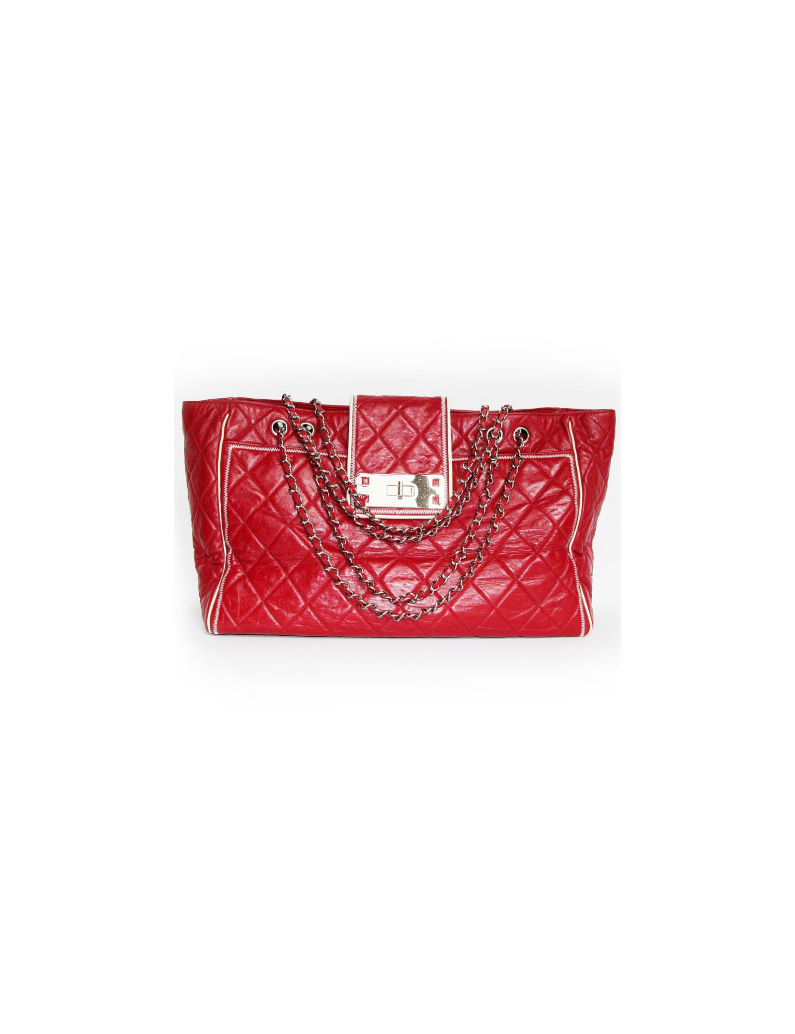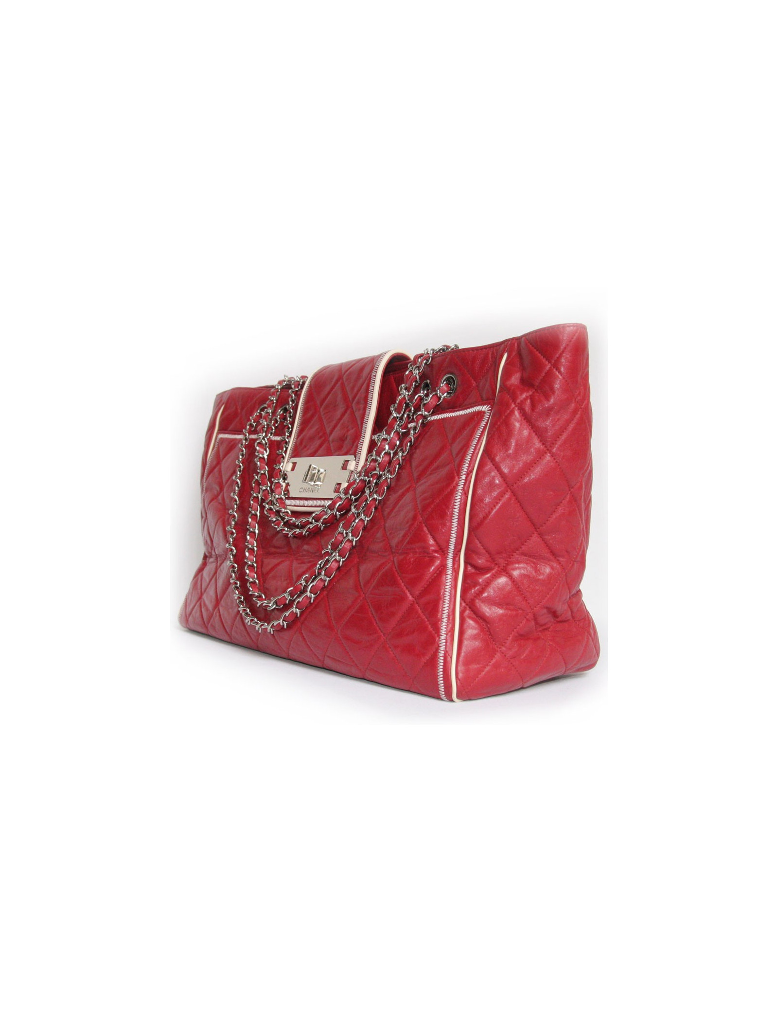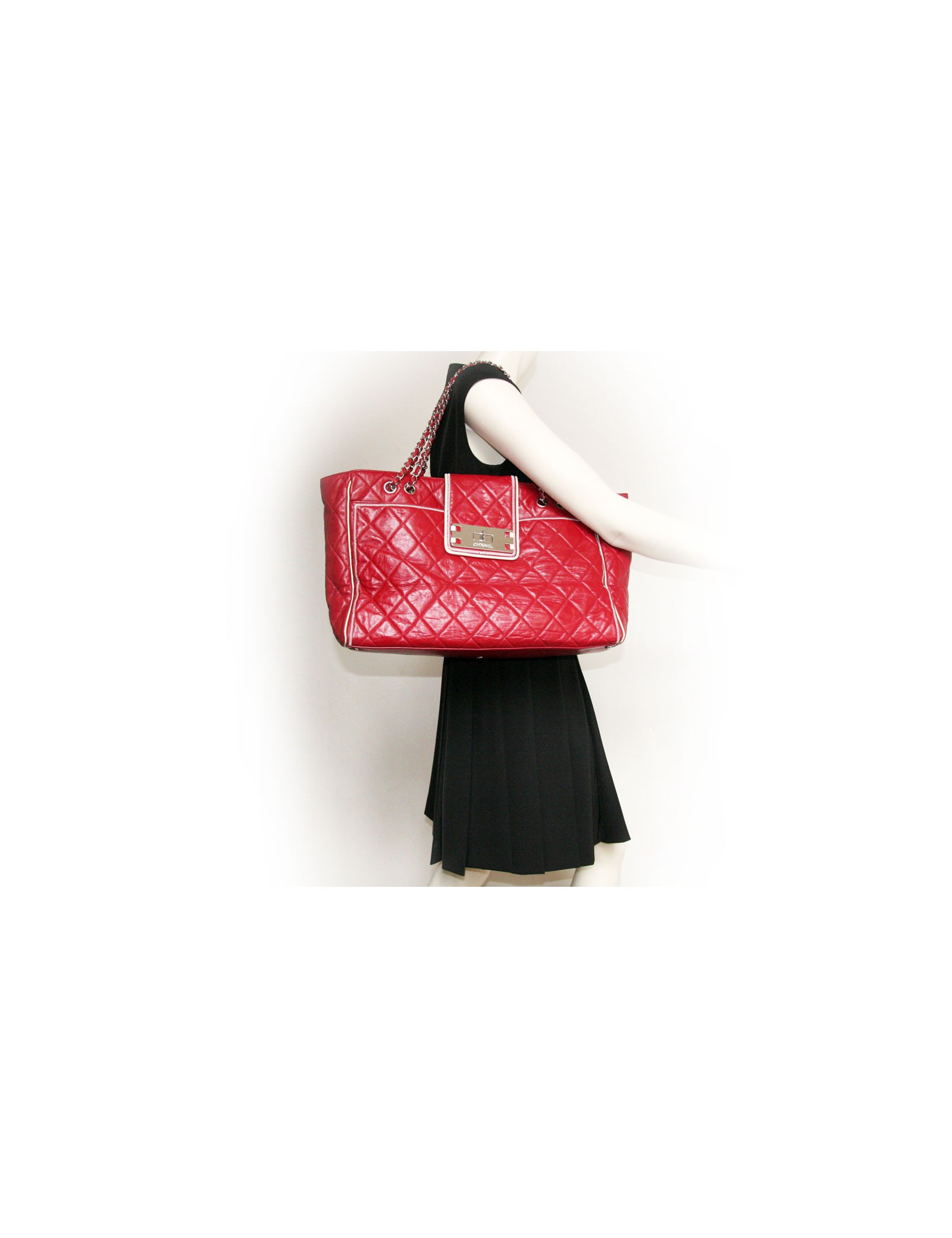 Purchase the USA 3575 dollars. The large 2.55 model clasp is silver. It is worn on the shoulder. The Interior is lined in beige satin and has 3 pockets including one zipped, and a zipper to hang keys. There are also 2 large pockets exterieures.il measurement: 42 cm wide x 28 cm in height x 17 cm of depth.