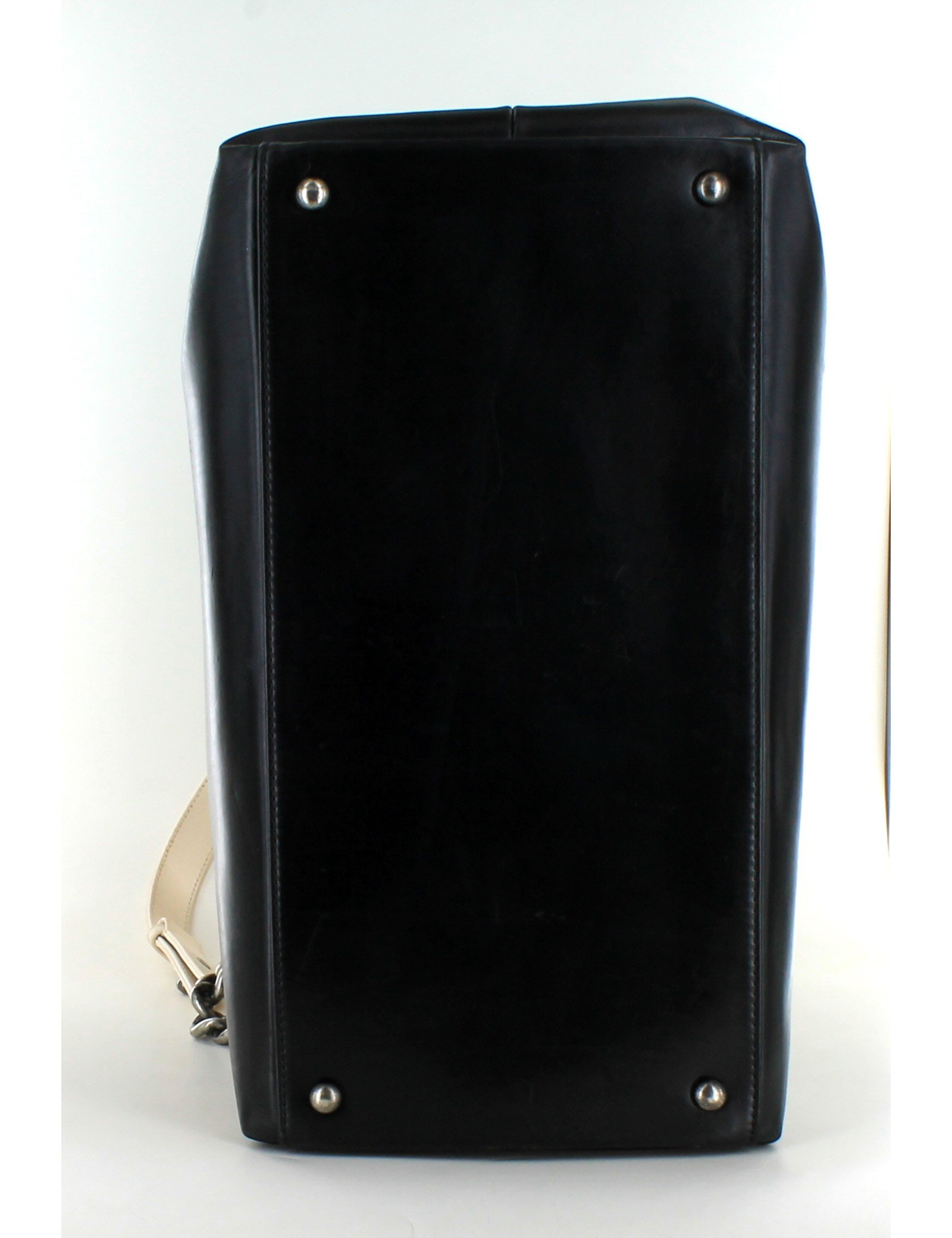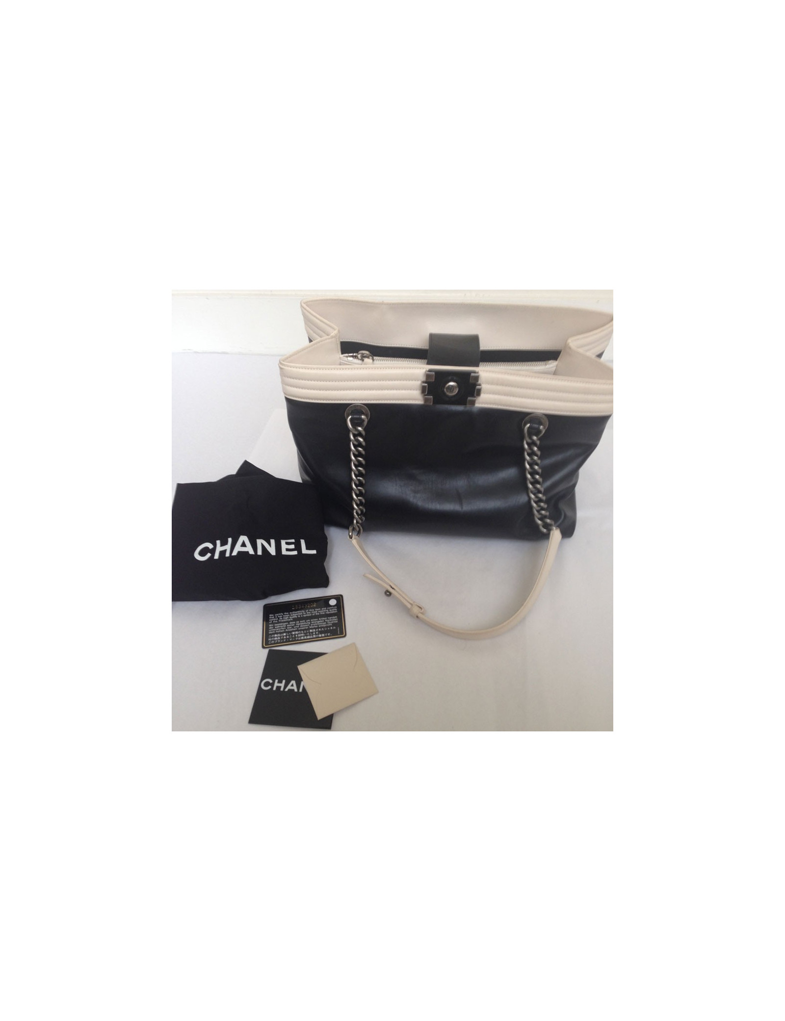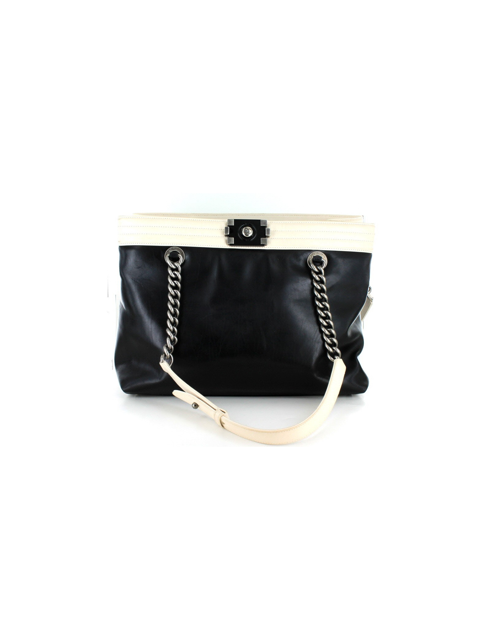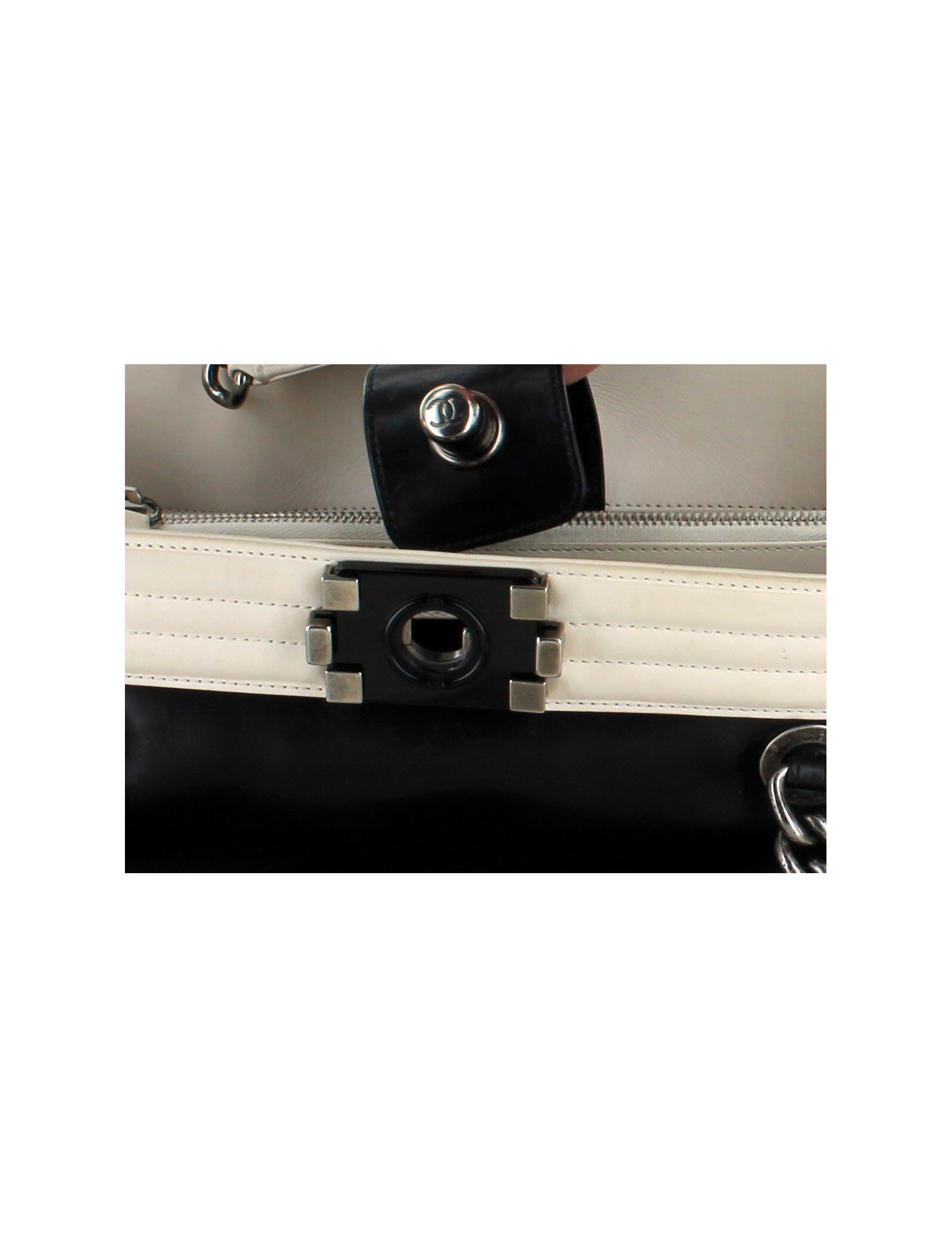 Chanel, clasp Boy, recent collection bag, black and white leather. hardware are aged silver.
