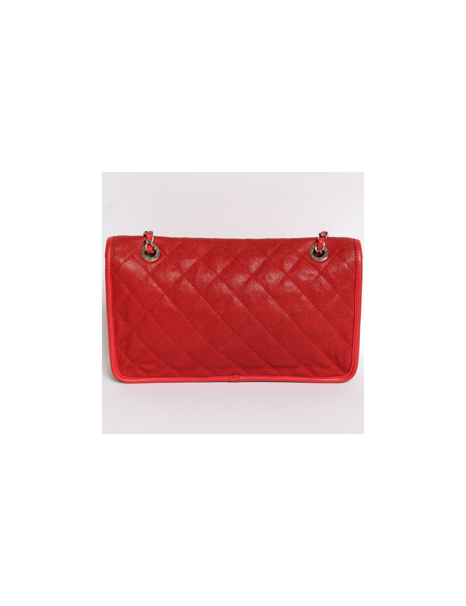 Traditional, Timeless CHANEL bag red coral grained leather.CC clasp in silver metal.