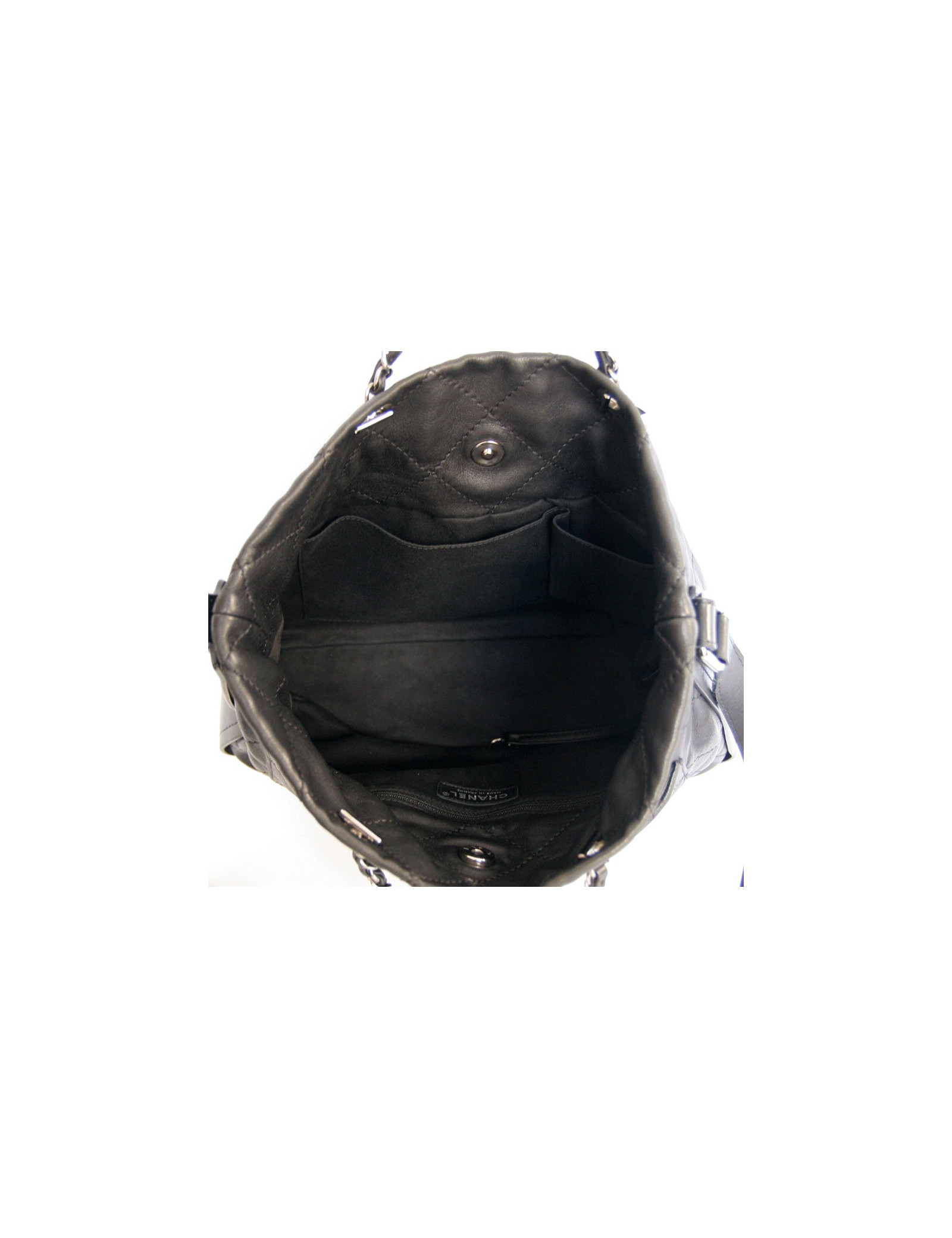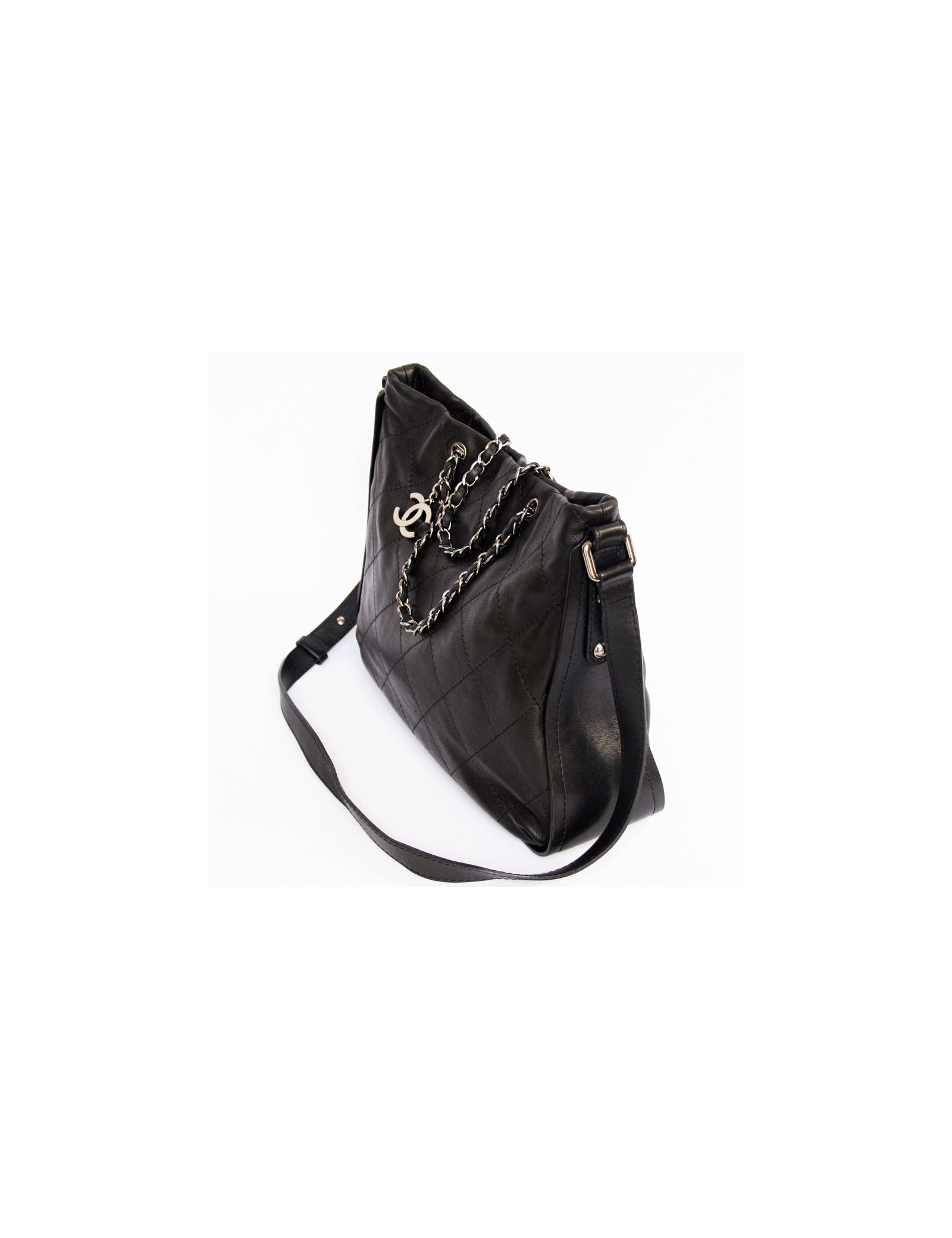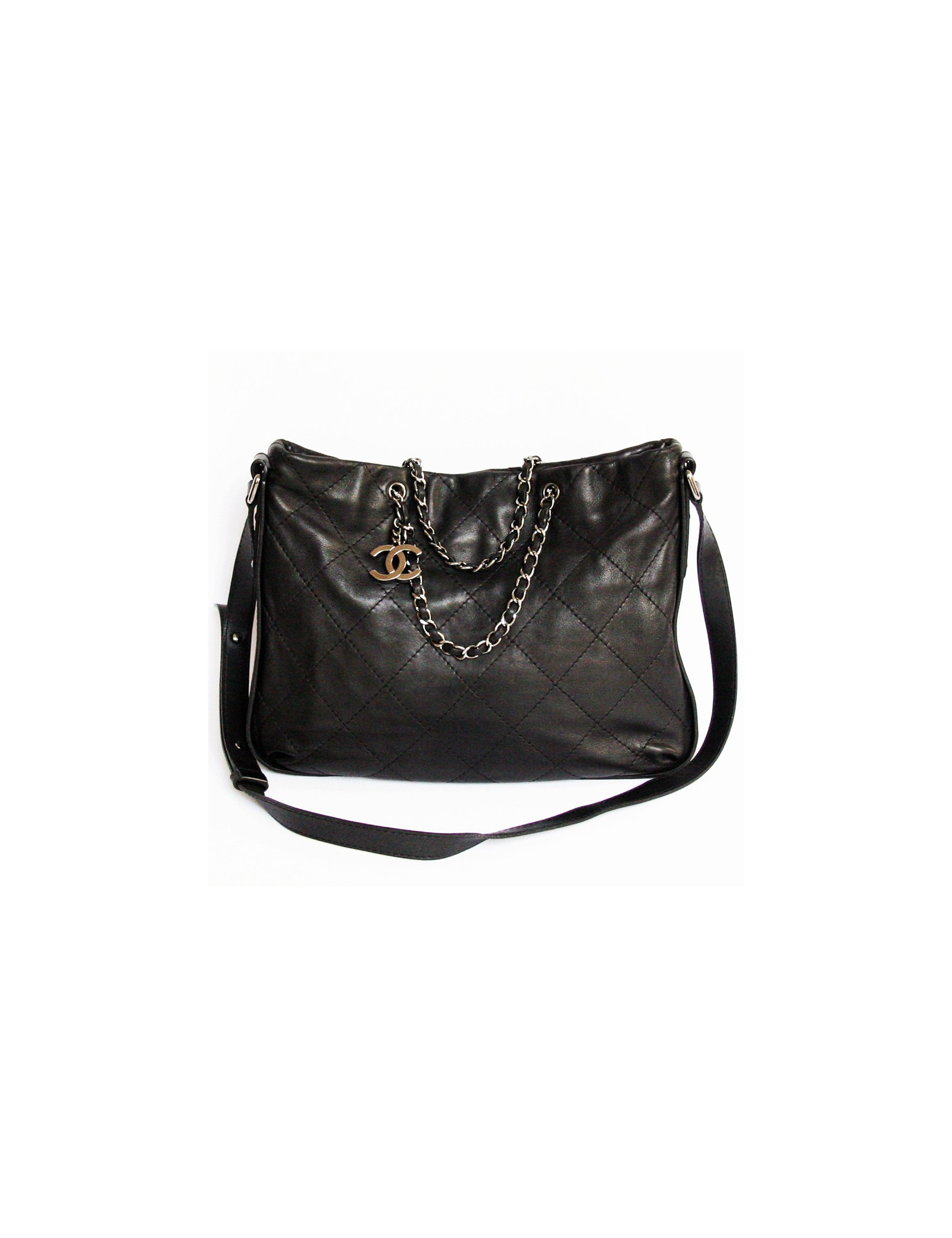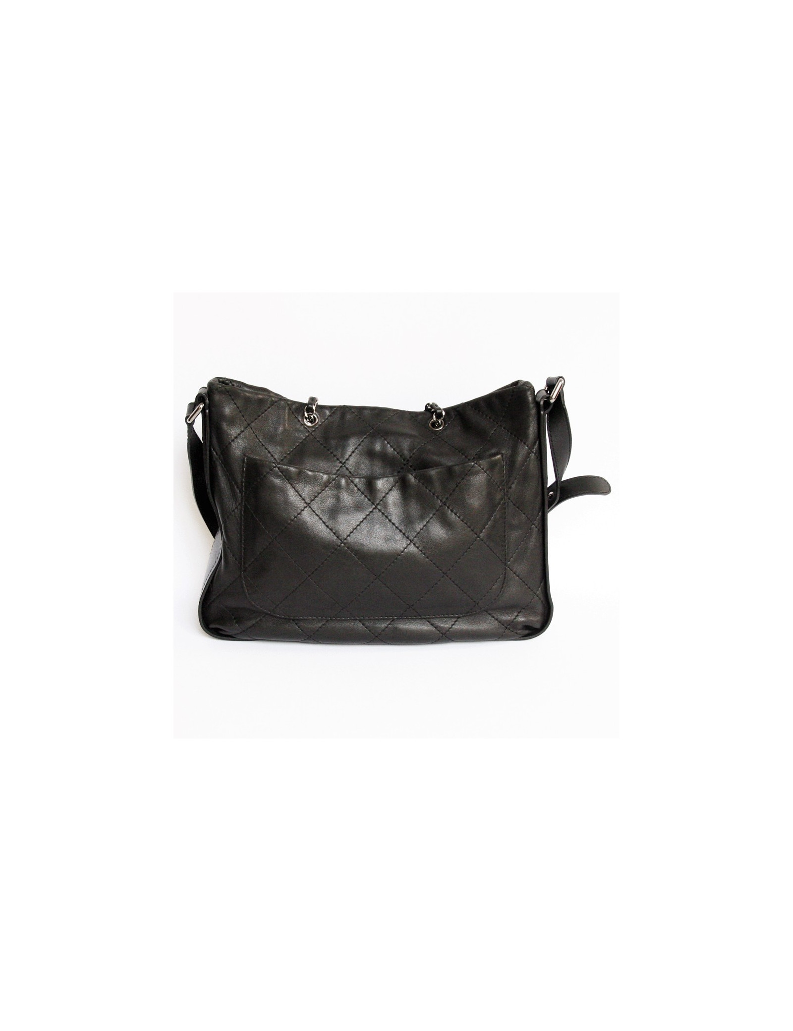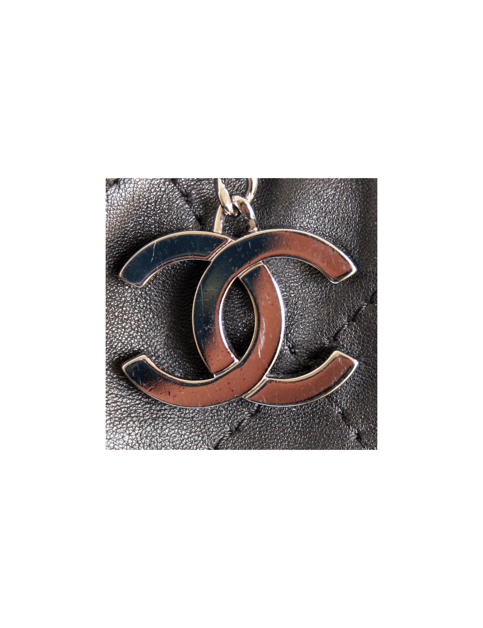 Bag CHANEL quilted black lambskin leather, black topstitching.