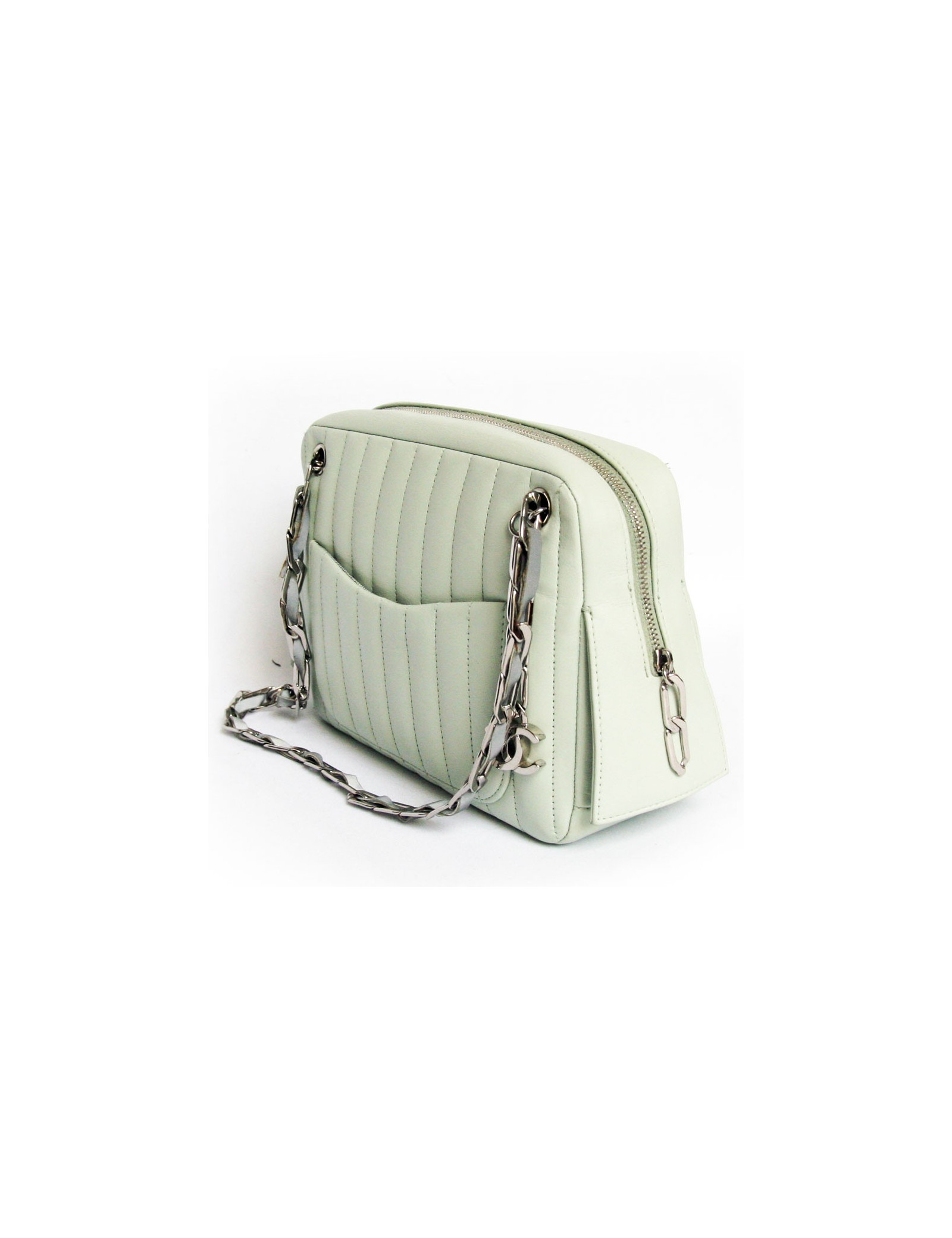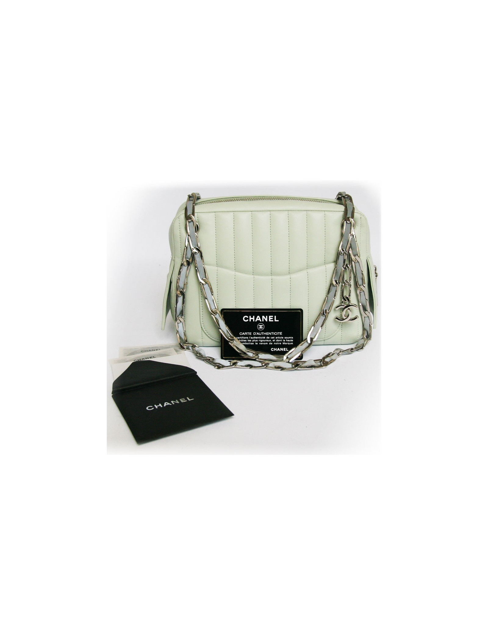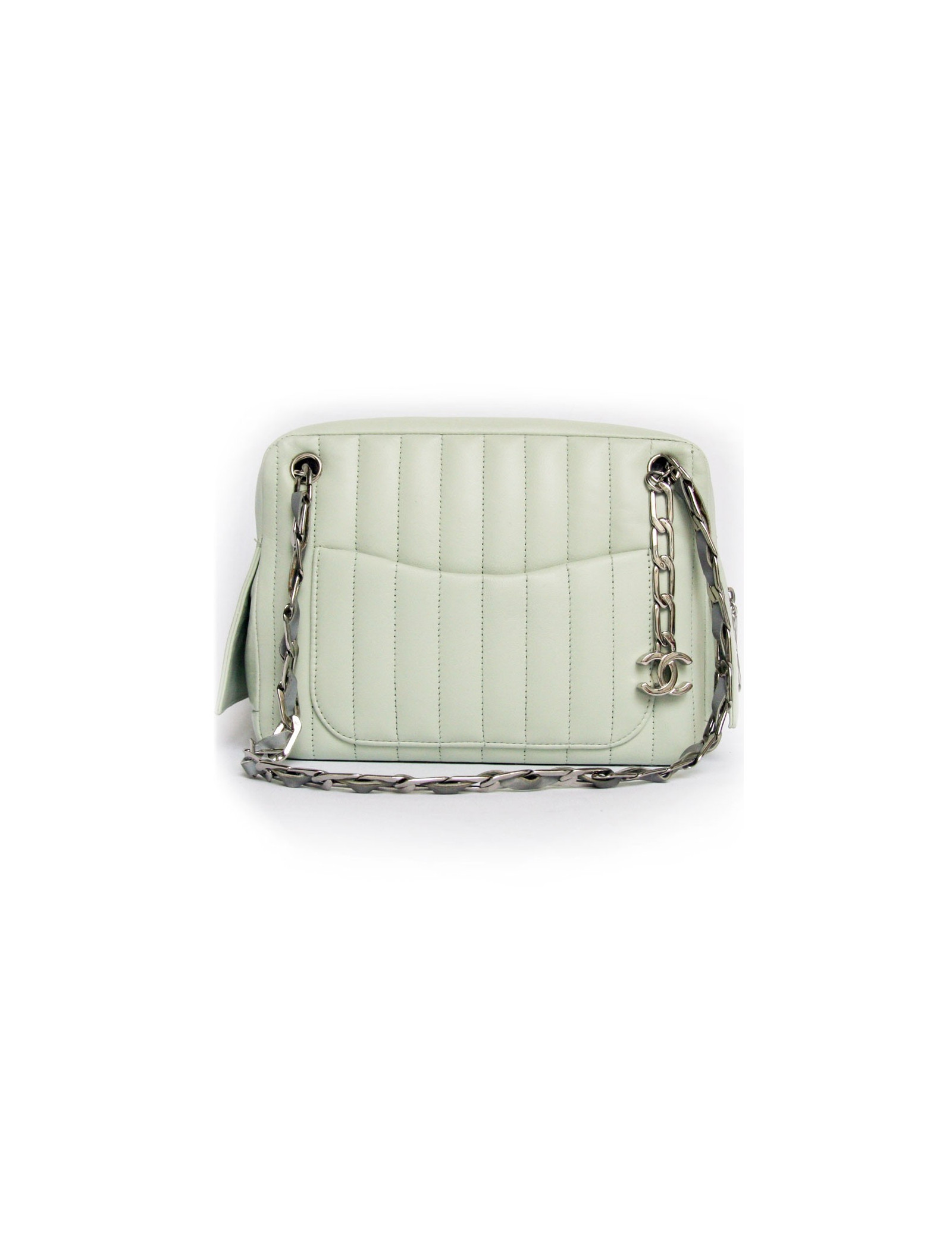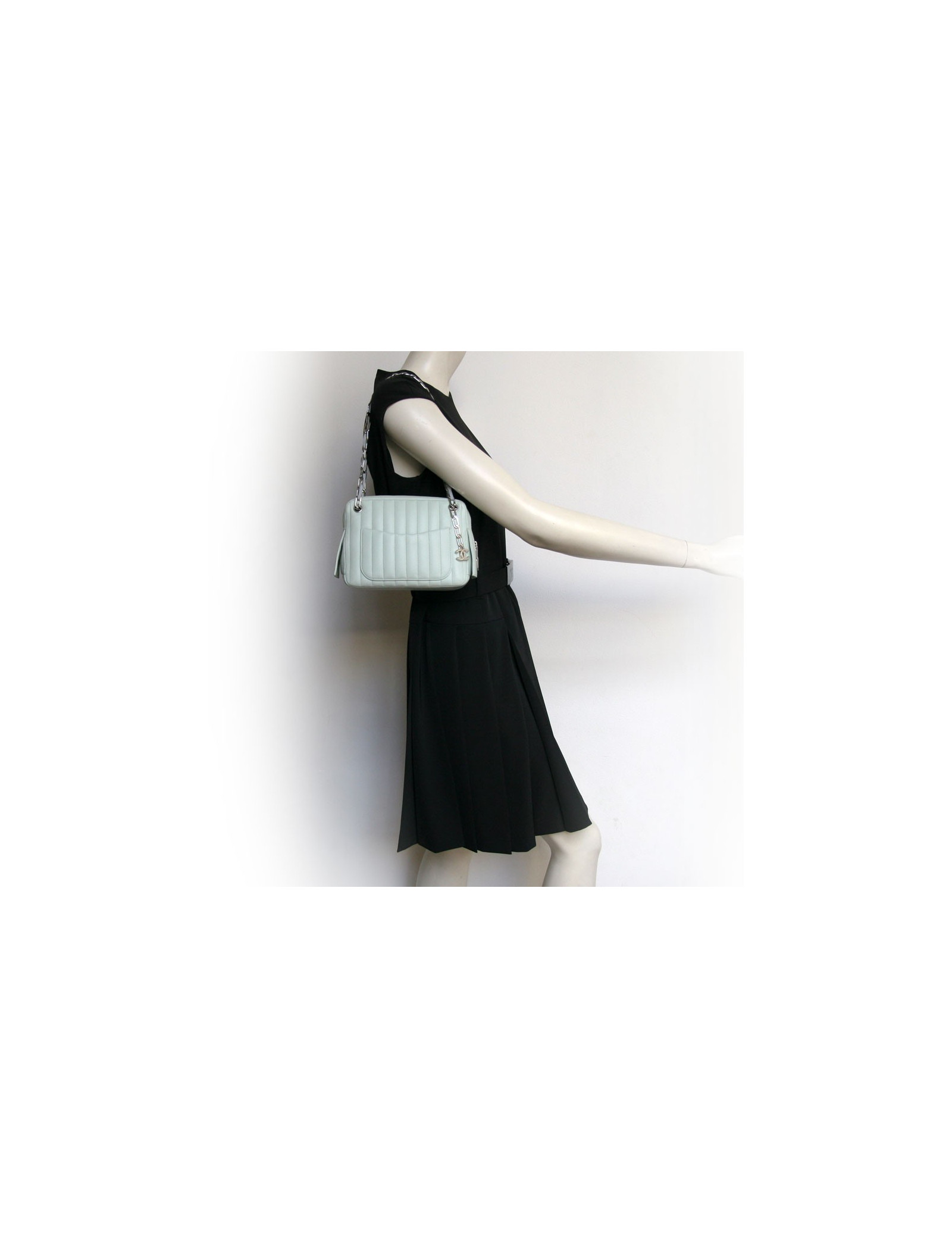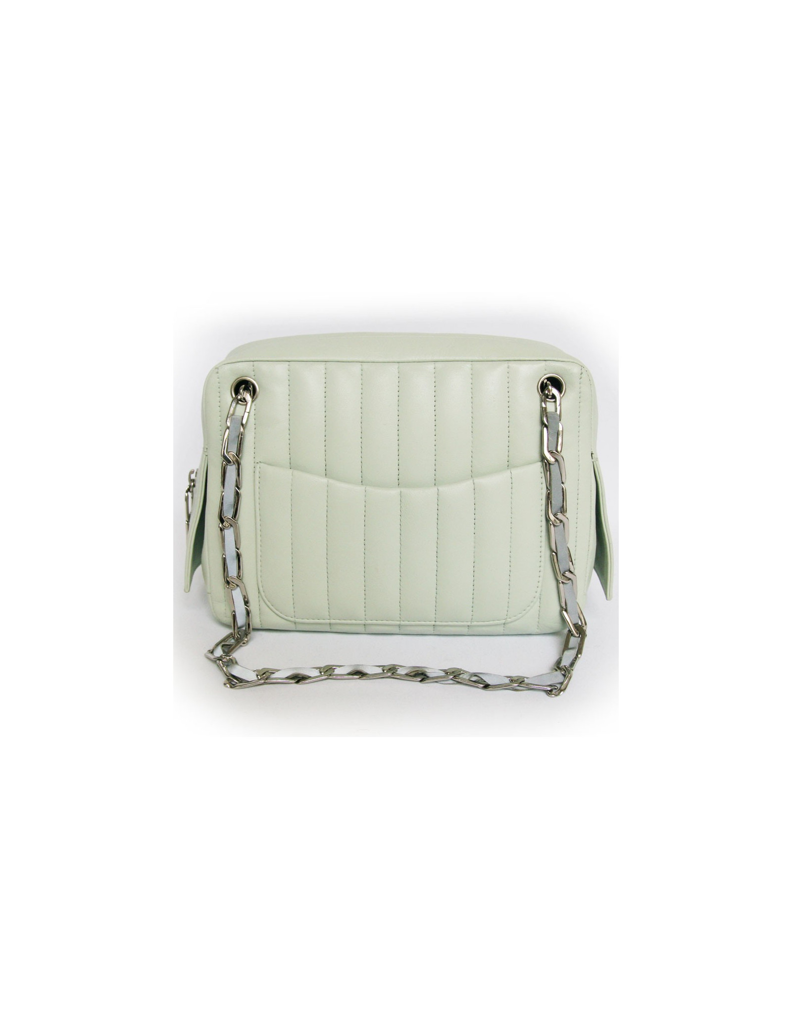 Lovely Chanel small bag in green water color leather. The fittings are in silver metal.